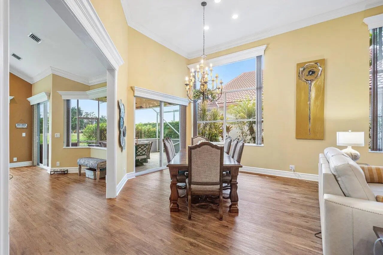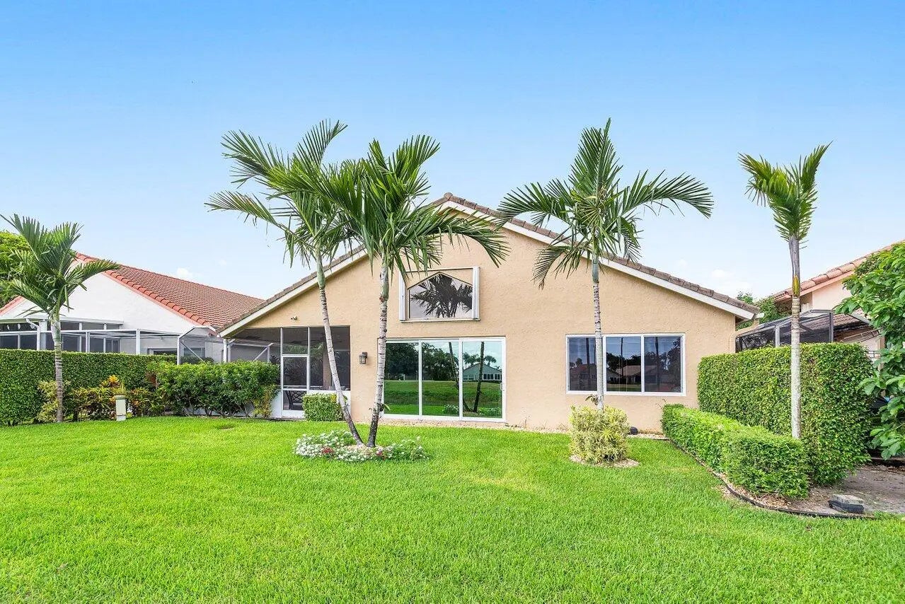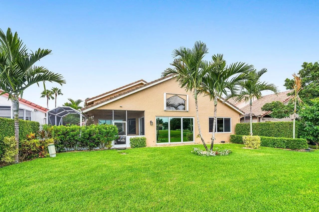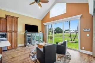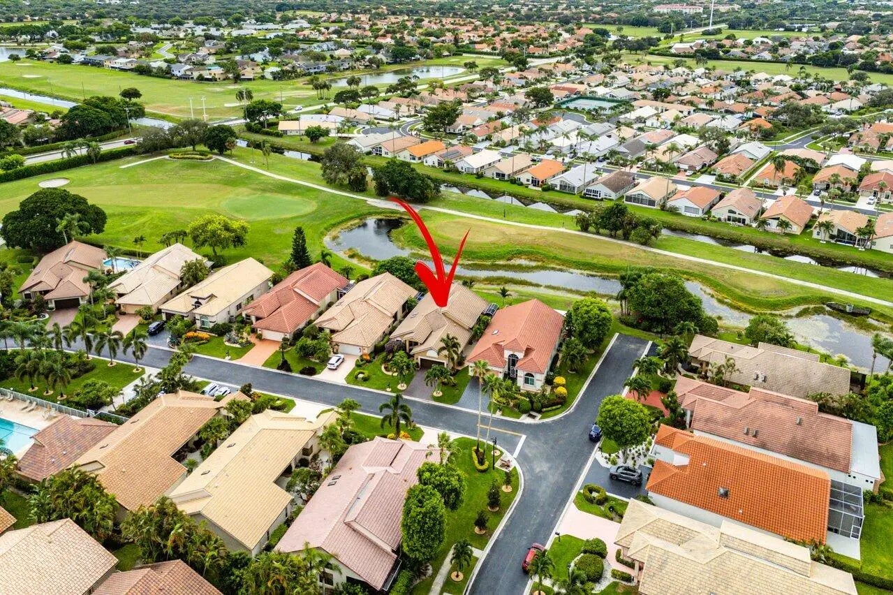 Live the lifestyle you deserve in this beautifully appointed 2-bedroom + den/office, 2.5-bath single-family home, nestled within the highly desirable gated 55+ community of Indian Spring in Boynton Beach. Offered in turnkey condition (furnishings negotiable). This light-filled residence features soaring 14-foot ceilings, wood-style flooring, hurricane-impact windows and doors, bathing the home in natural light while offering peace of mind. The spacious, open-concept layout is ideal for both everyday living and entertaining, with sweeping golf course and lake views that create a tranquil and vibrant backdrop. The oversized kitchen is a chef's dream, showcasing sleek quartz countertops, stainless steel appliances, ample cabinetry, and generous workspace.