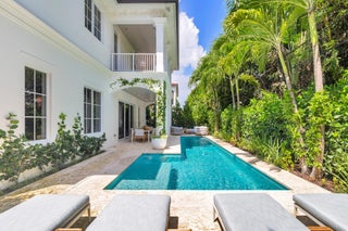 Every detail of this home has been thoughtfully reimagined and transformed through a full-scale renovation led by renowned New York interior designer Jeff Lincoln. What was once builder-grade has been elevated to the highest standards of craftsmanship and design. From the moment you arrive, the stunning new exterior and professionally curated landscaping set the stage for what feels like brand-new construction. Inside the 4 bed 4.1 bath home, no surface was left untouched. Each room showcases bespoke, high-end finishes, custom millwork, and designer fixtures that reflect timeless sophistication and modern luxury. The kitchen, bathrooms, flooring, lighting, and hardware have all been meticulously selected and executed to create a seamless, elevated living experience.Highlights include an expansive open floor plan, beautiful wide plank oak floors, brand-new gourmet kitchen with Wolf gas range, Sub-Zero fridge, and a hidden walk-in pantry offering ample storage. The main floor consists of 1 bedroom with an ensuite, 2 car garage, laundry room, and a cabana bath, leading to a backyard oasis with a 40' heated, saltwater pool, brand new lush landscaping and hardscape, and covered patio. Upstairs features 3 bedrooms with ensuites, 2 oversized covered balconies, and a loft with a custom wet bar. The primary suite includes 2 large walk-in closets and an expansive bath with 2 toilet rooms, a free-standing tub, and an oversized glass enclosure with dual shower heads. Additional highlights include impact windows and doors throughout, concrete block construction, whole house generator, 2 Trane HVAC systems, Lutron lighting, security system, and much more. Located steps to the Intracoastal and minutes from pristine beaches, Palm Beach, Worth Ave, and world-class shopping and dining, this is the pinnacle of coastal living in West Palm Beach.