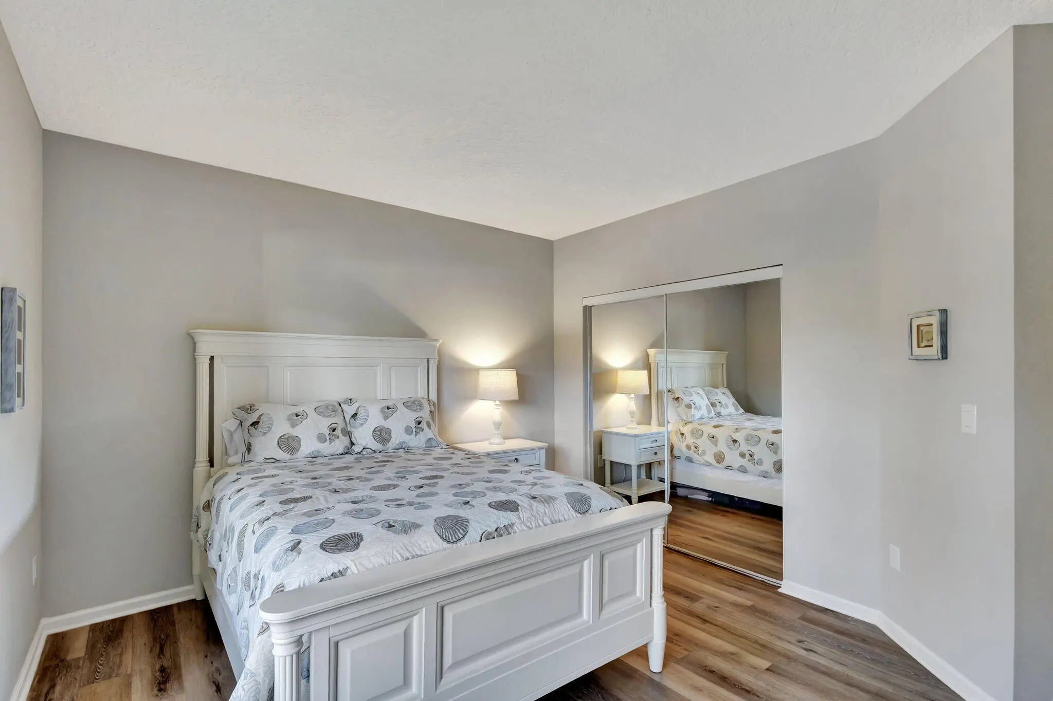 Beautifully renovated 3-bed, 2-bath first-floor end unit! Filled with natural light, this condo features extra windows, a brand-new kitchen with custom cabinetry, quartz countertops, designer glass backsplash, and stainless steel appliances. Both bathrooms include modern vanities and stylish mirrors. Tile flooring in main living areas and laminate in bedrooms. ! King bed in primary, queen in 2nd and twin in 3rd. Enjoy a private patio with serene lagoon views. Located in a gated community offering two pools with Jacuzzi tubs, a fitness center, and BBQ area. Just minutes from beaches, boating, golf, shopping, and dining!