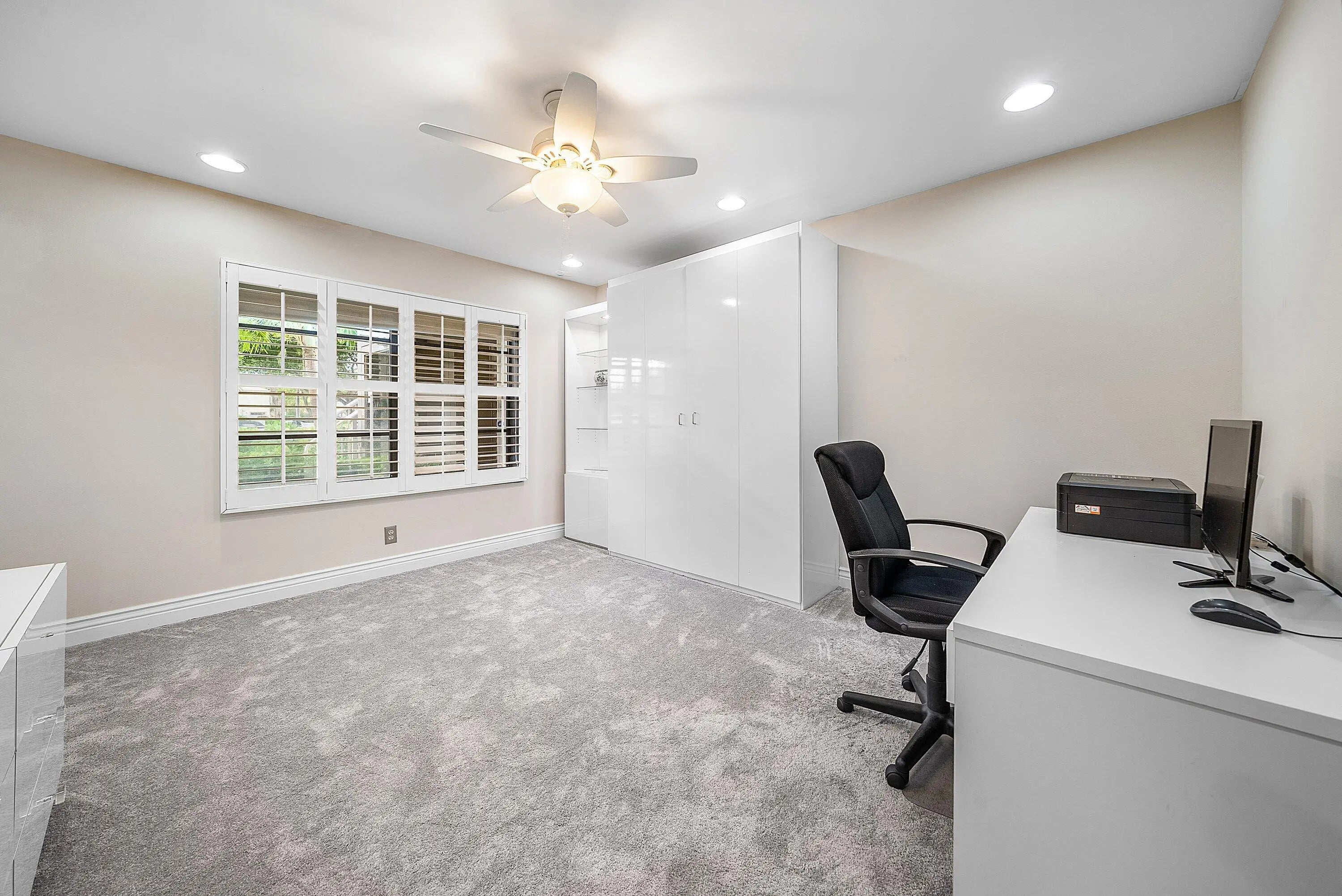 Fully furnished, first-floor, true 3-bedroom condo with ultra-premium views in Eastgate at Hunters Run Country Club. This updated residence spans 2,106 square feet, offering an extended living room and stunning panoramic views of the water and East golf course. The interior is thoughtfully designed, featuring recessed lighting, crown molding, porcelain tile flooring, and plush carpeted bedrooms. The eat-in kitchen includes stainless steel appliances, an updated washer & dryer, and easy access to the open patio, perfect for outdoor dining and golf cart parking! The oversized primary suite impresses with a huge walk-in closet and an ensuite bathroom. The guest bedroom and den/3rd bedroom provide generous accommodations for all of your guests. Make this your home at Hunters Run today!