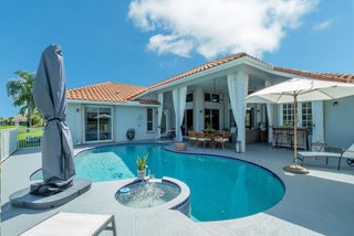 Paradise at Lakefield West! This luxurious 4 bedroom plus den is located in the High End Lakefield West community, only minutes away from all horse venues. The stunning views from almost every angle of the house are breathtaking! Decorated to perfection, every detail was carefully selected and quality crafted. The home is perfect for entertaining, with a family room that opens to a large pool area overlooking a pond and a fairway view of the Wanderers Golf Course! With its warm sense of community, and only moments to shops, eateries, and transport, this home provides all the elements for relaxing, comfortable and easy-care living. A king bed in the master bedroom, and a newly renovated bathroom. Two kings size beds in the other two bedrooms, and a queen size bed in bedroom four