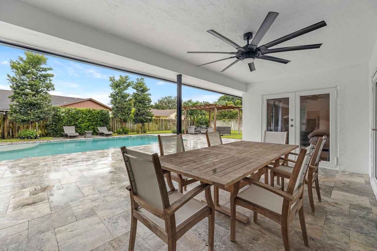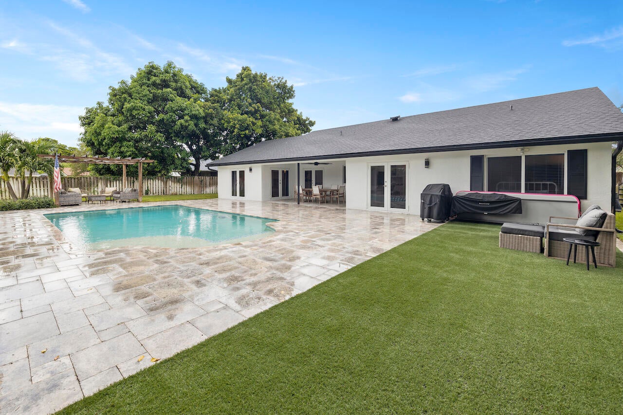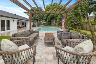 Seasonal Rental: Beautifully updated 4 bedroom home with spacious, fenced yard and heated pool. Tastefully decorated, this split bedroom home is perfect for guests. Kitchen boost all stainless appliances, gorgeous marble countertops, upgraded cabinets and fine fixtures. It has a breakfast counter and is open to the family room. Designer furniture and furnishings at every turn. Cozy fireplace insert in the living room with vaulted ceilings which opens to the formal dining room. Wood look vinyl flooring throughout the home..perfect for pets. Spacious Master bedroom has impact french doors to the pool/patio/backyard, gorgeous remodeled bathroom and large walk in closet with organizer. Great outdoor patio/heated pool/gazebo space.-great for entertaining... The perfect home to spend your winter season. Quiet cul de sac home close to WEF/Global, shopping, downtown and the beaches. Home is available for season at $8500/mo
