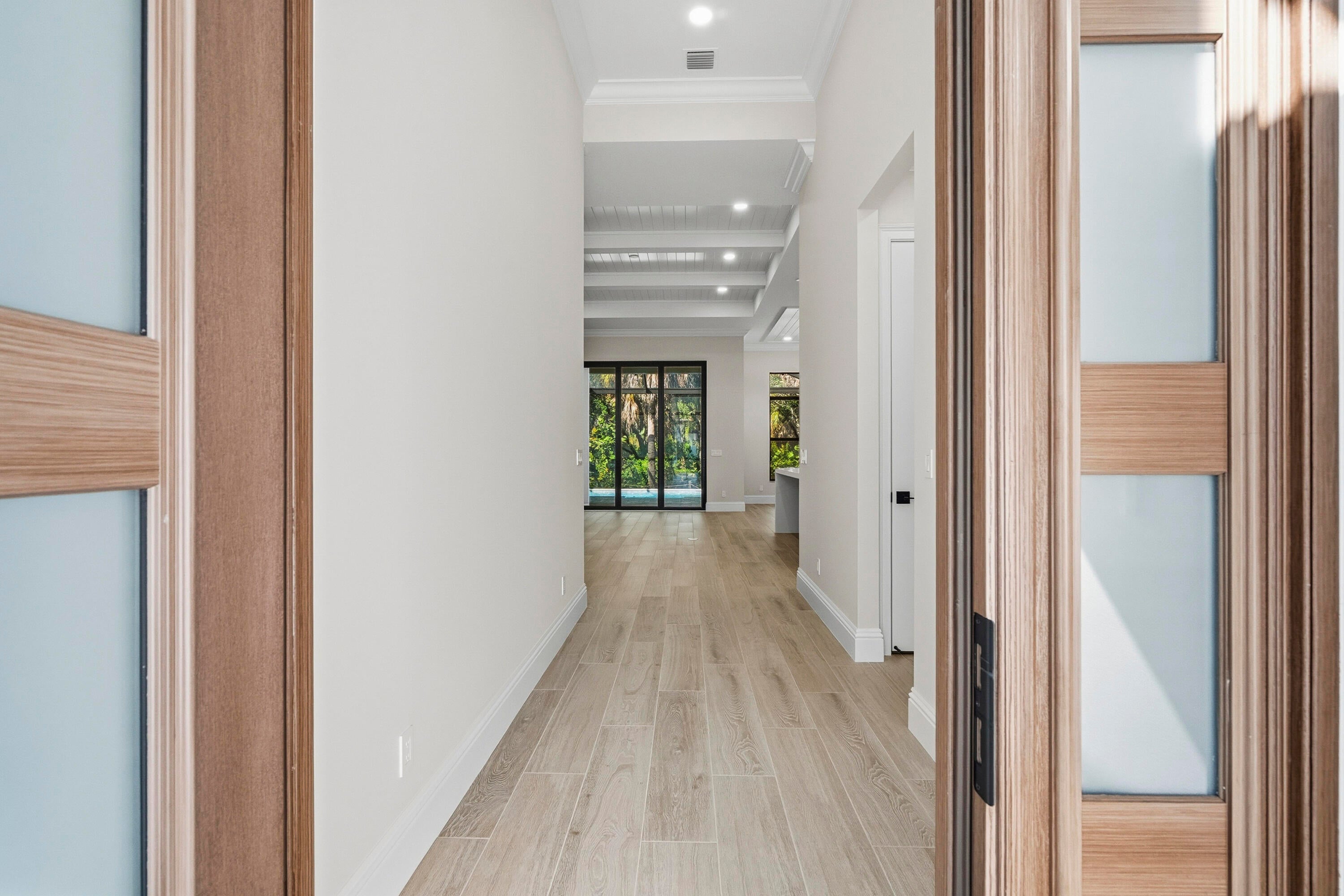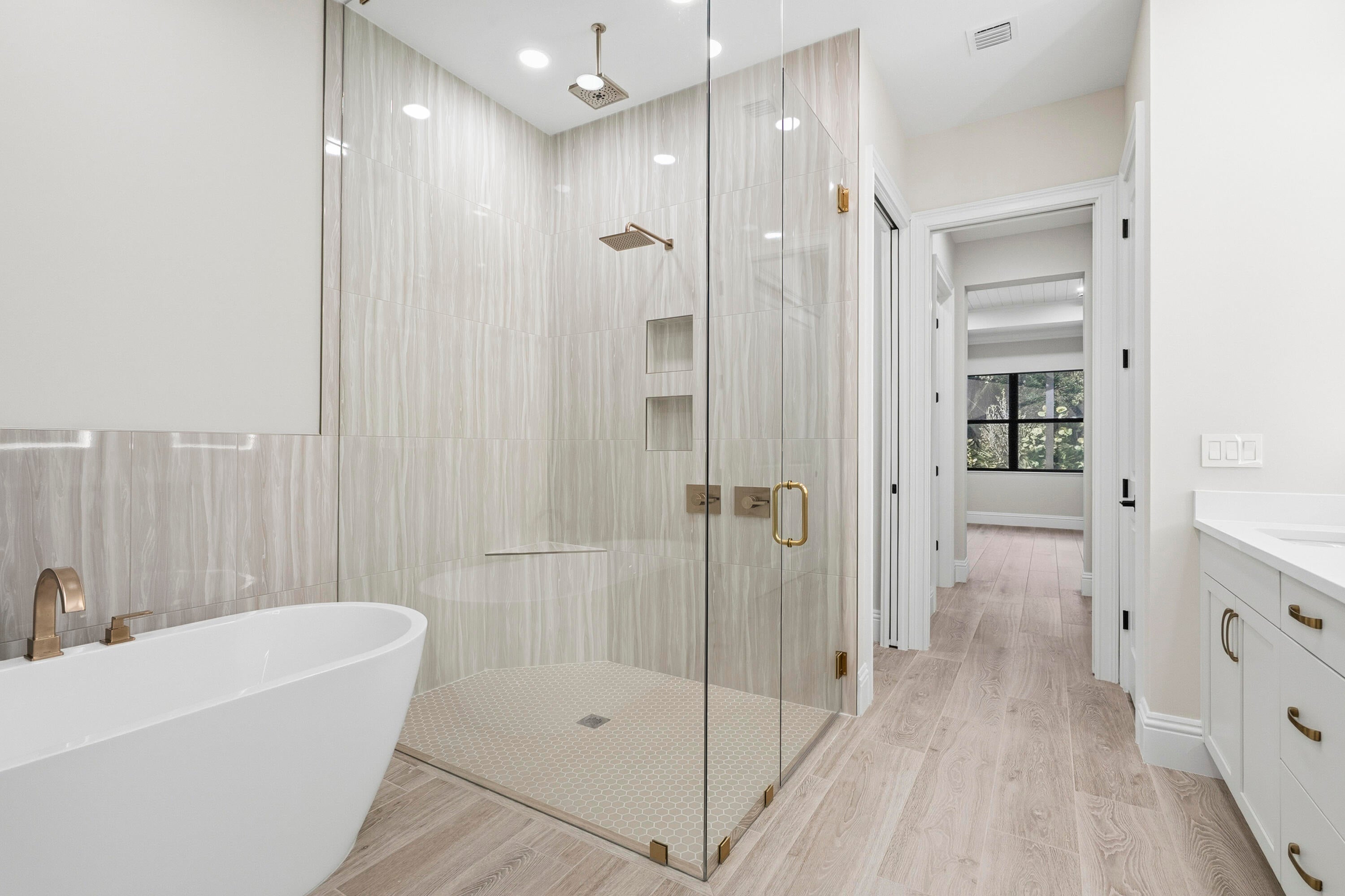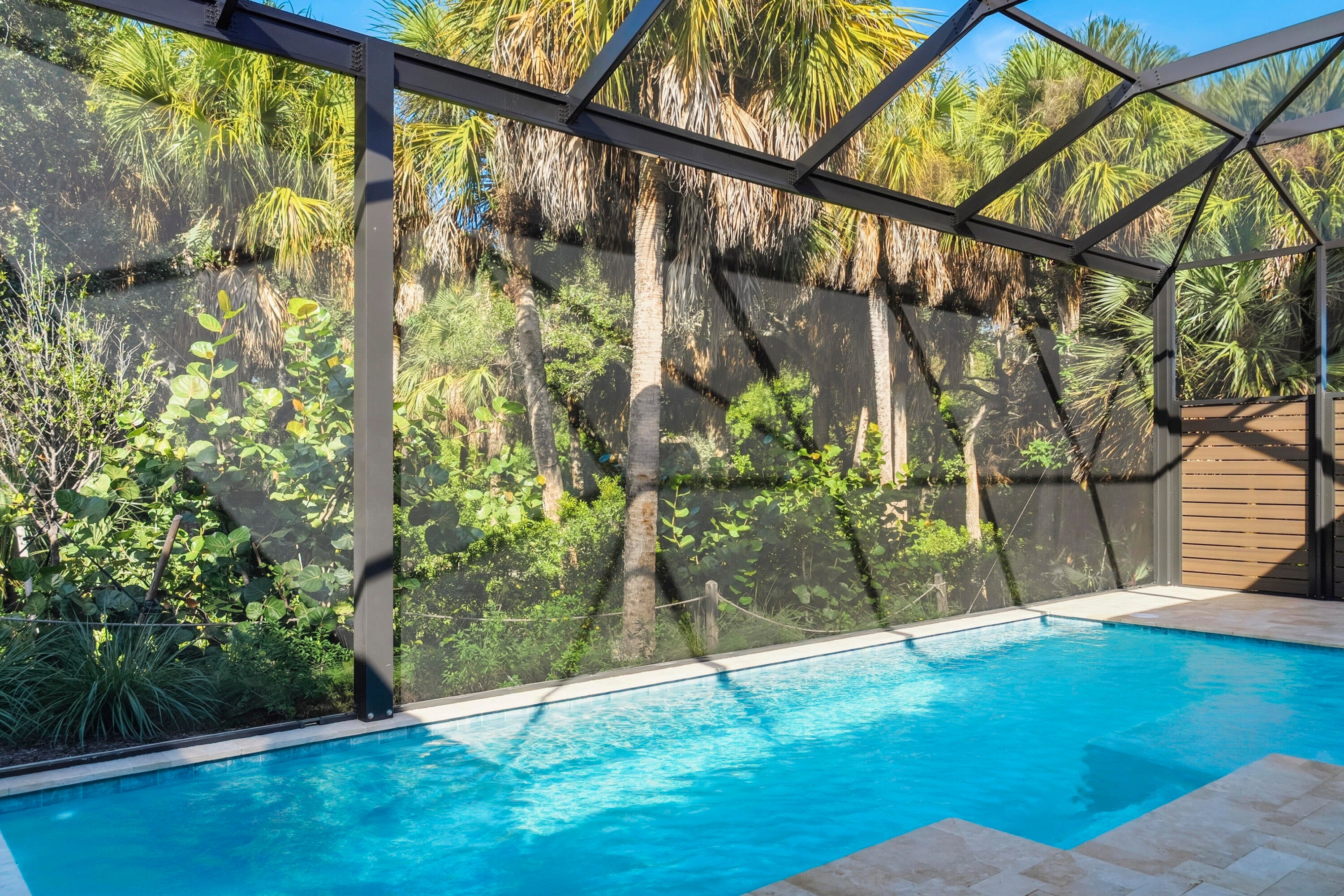 The Seabreeze Grande is currently under construction and is situated in a charming Old Florida setting at Seaglass, which is surrounded by lush landscaping, making it a picturesque place to call home. This villa-home features exceptional finishes, including 9''x 47'' porcelain wood plank tile flooring, volume ceilings, crown molding, and tongue-and-groove wood detail coffer ceilings. The reconfigured master bath boasts a free-standing tub, a glass-enclosed shower, and quartz countertops. Also included - Cafe appliances and a bar area with a beverage center. This home is designed for outdoor entertaining, featuring a pool, a travertine paver pool deck and a screen enclosure.
