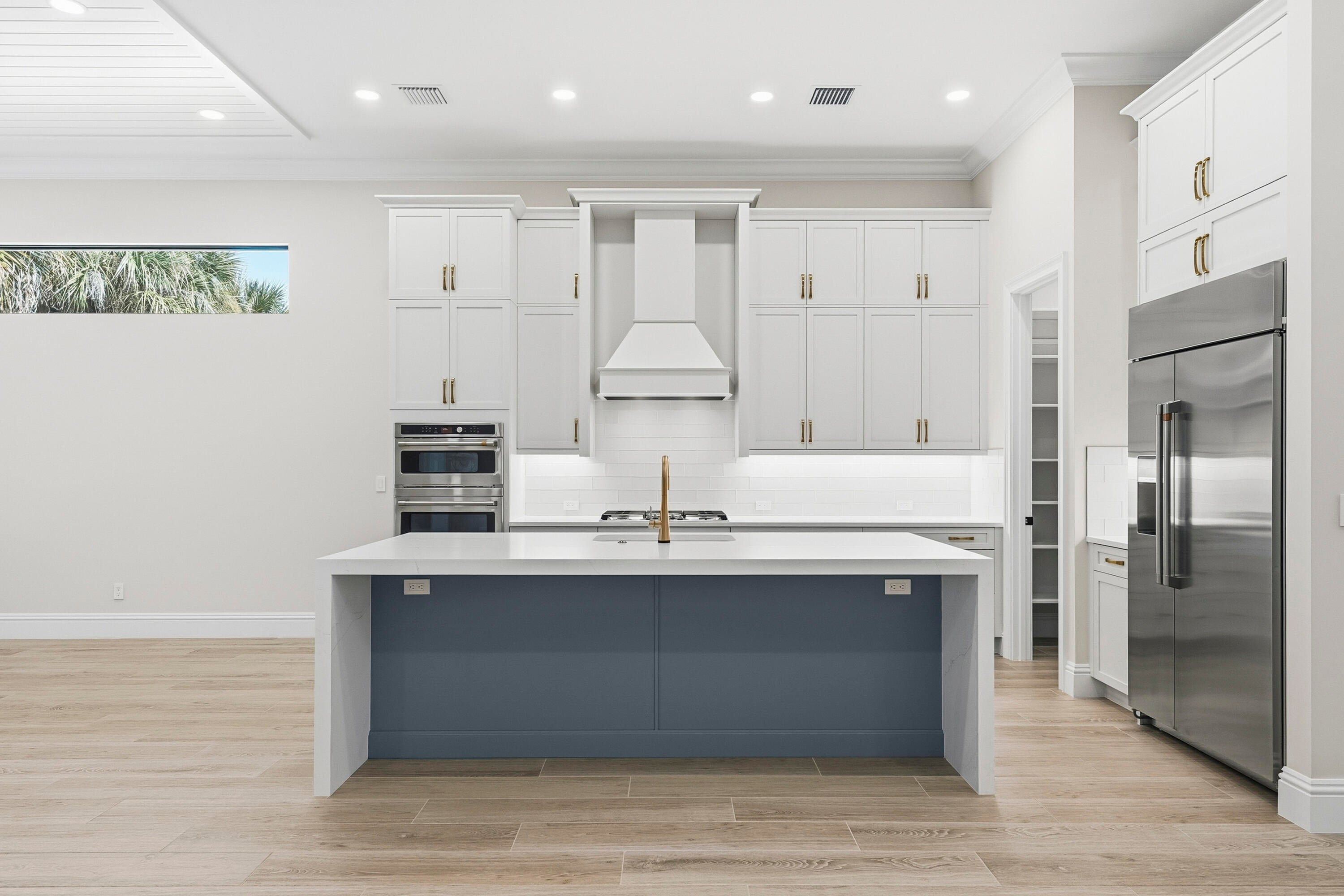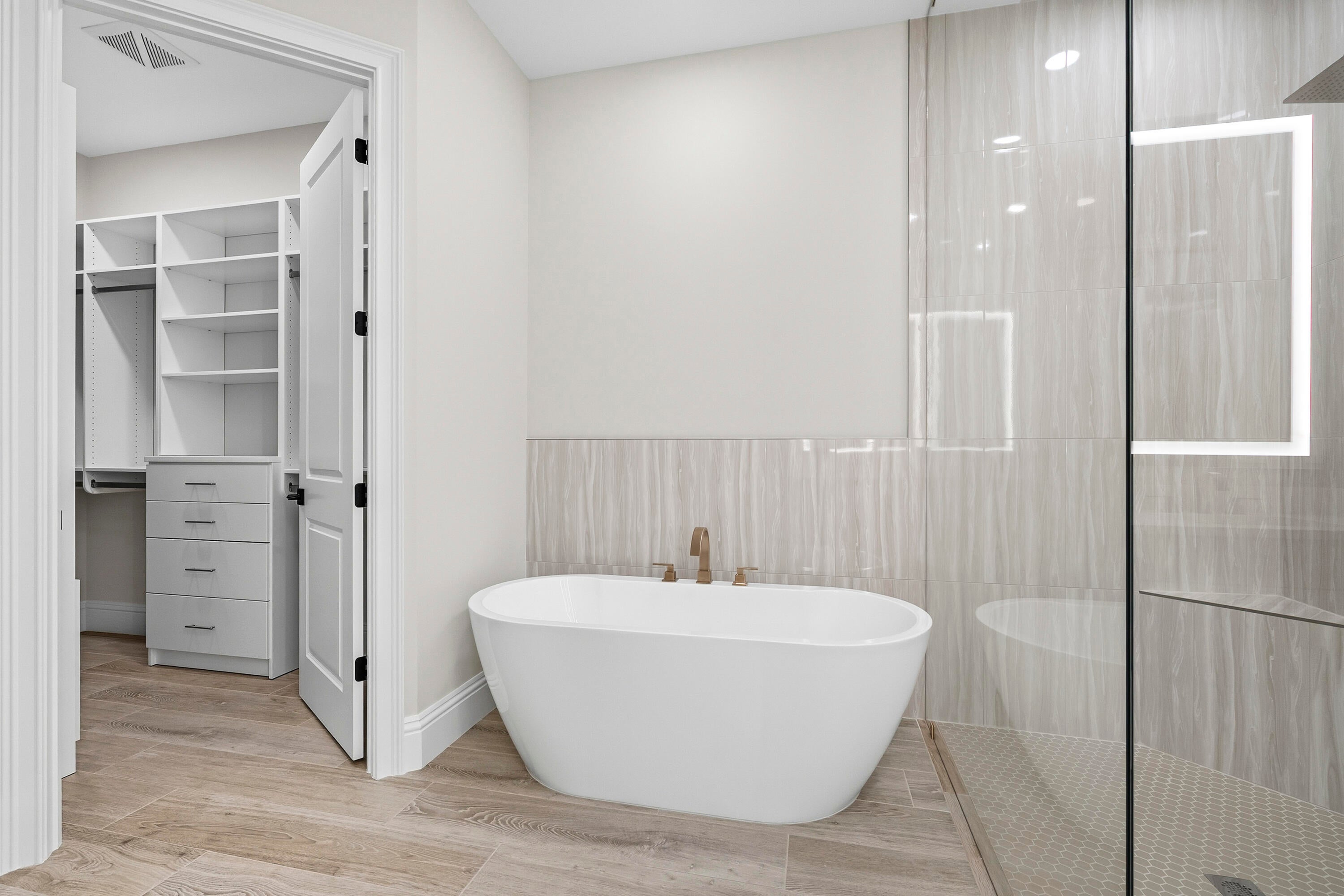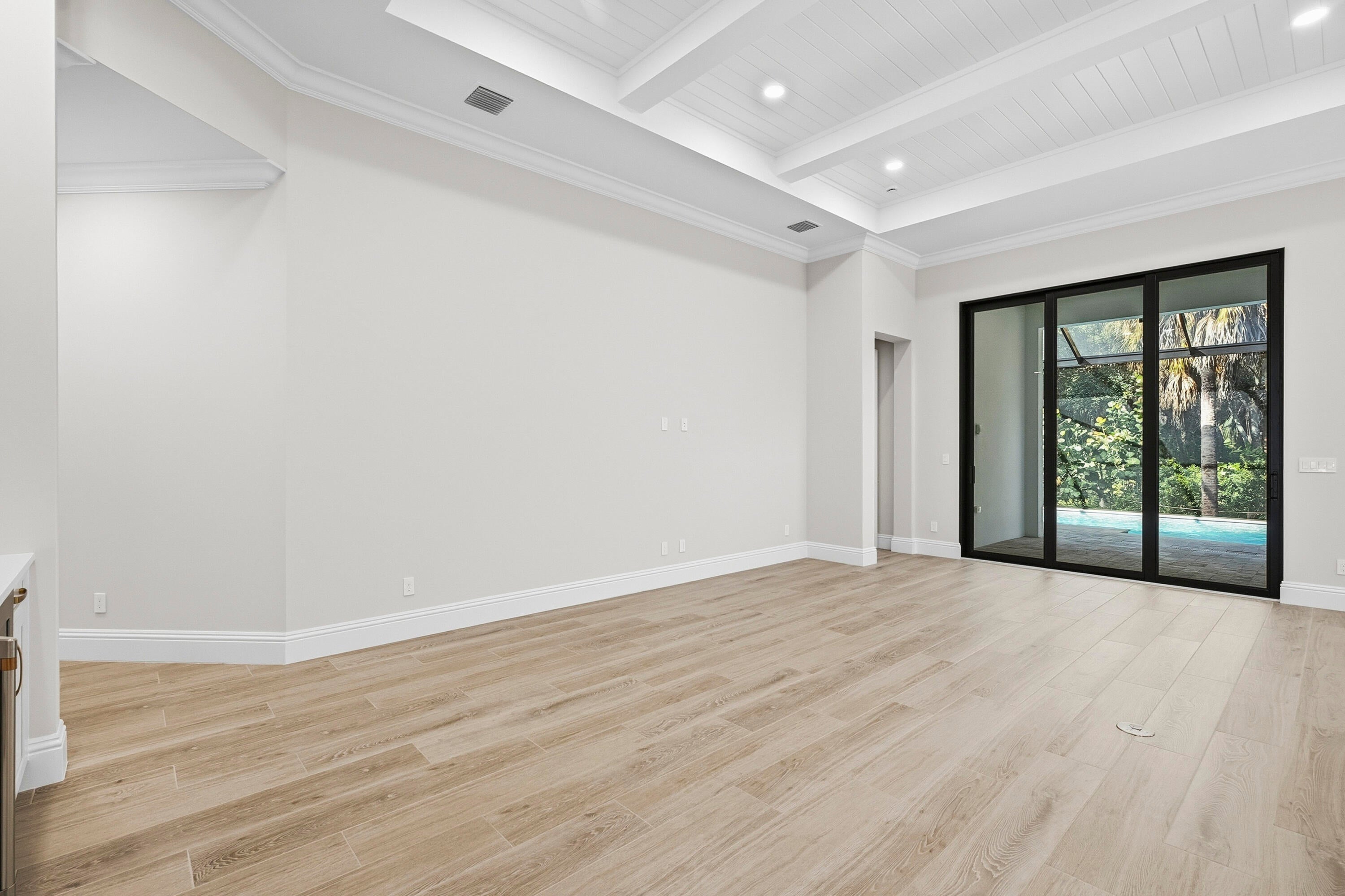 The Seabreeze Grande is currently under construction and is situated in a charming Old Florida setting at Seaglass, which is surrounded by lush landscaping, making it a picturesque place to call home. This villa-home features exceptional finishes, including 9''x 47'' porcelain wood plank tile flooring, volume ceilings, crown molding, and tongue-and-groove wood detail coffer ceilings. The reconfigured master bath boasts a free-standing tub, a glass-enclosed shower, and quartz countertops. Also included - Cafe appliances and a bar area with a beverage center. This home is designed for outdoor entertaining, featuring a pool, a travertine paver pool deck and a screen enclosure.