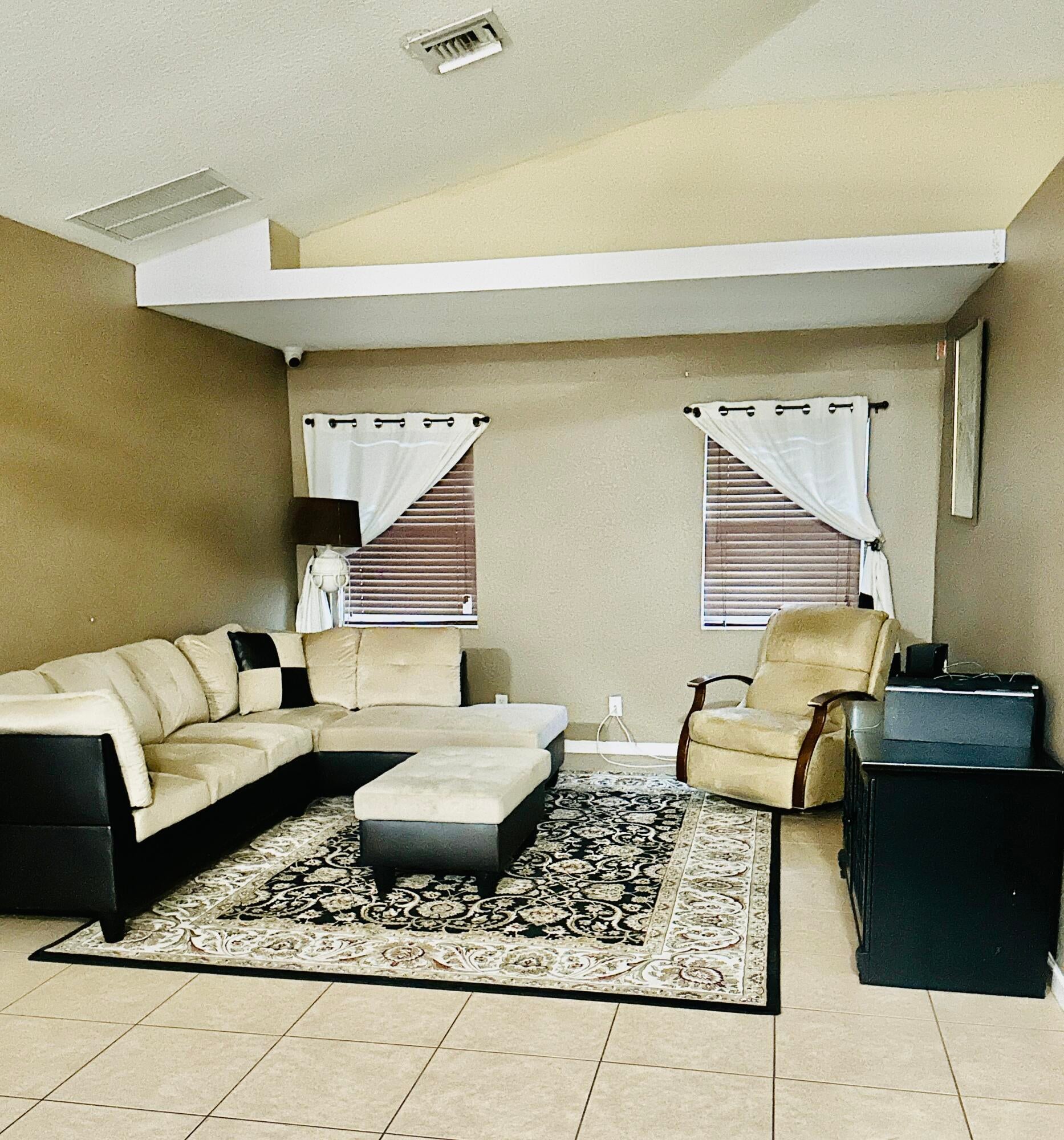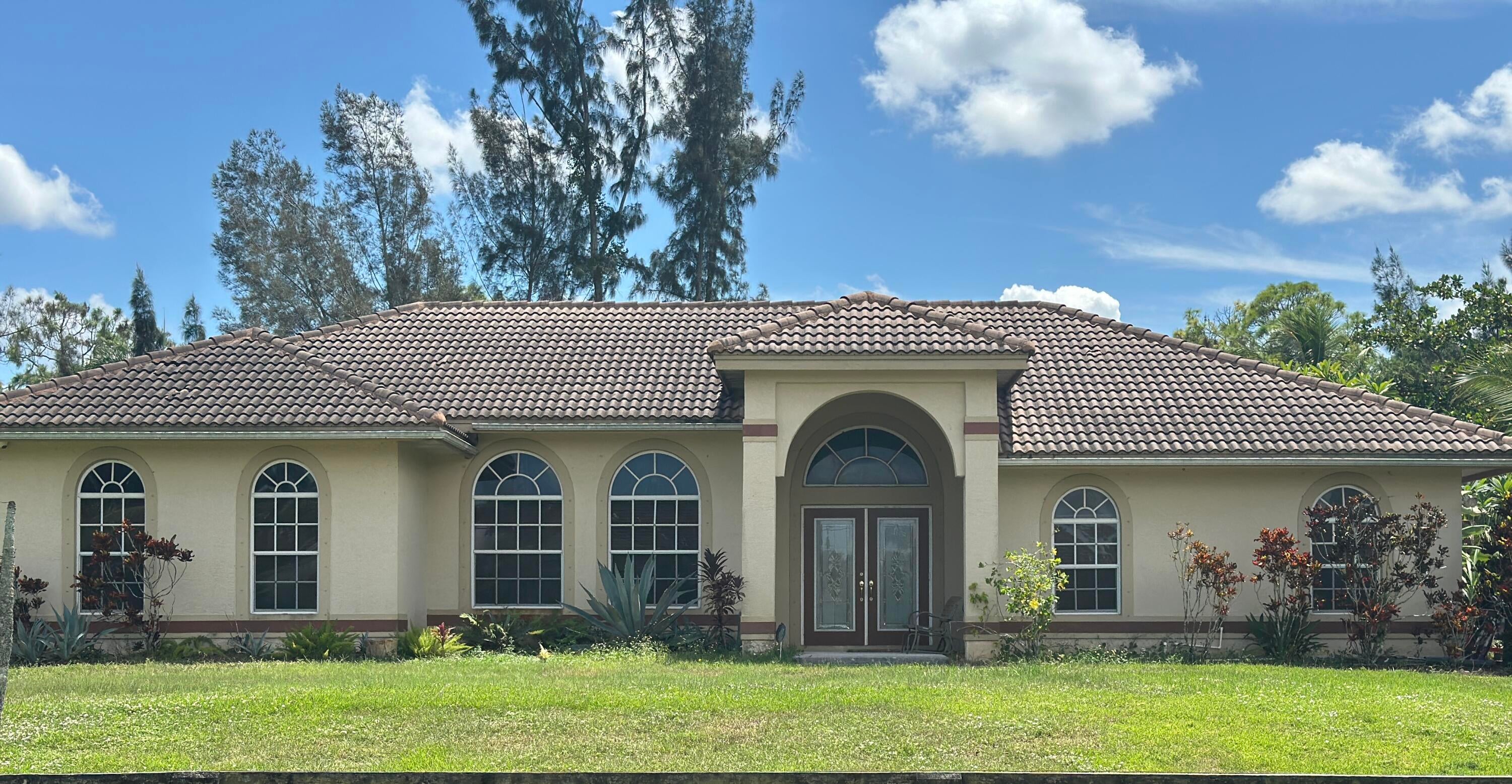 FULLY FURNISHED, SHORT TERM RENTAL -Spacious 5-bedroom, 3-bath pool home on 1.29 acres in The Acreage! This home features a split floor plan, carefully planned living areas, and an updated kitchen. The private primary suite offers a double shower and jacuzzi tub. Extended laundry room and bedrooms!Enjoy the screened-in pool and extended patio, perfect for relaxing or entertaining. NO HOA!!! Bring your Pets, Trucks, Boats, RV!Conveniently located near the new Avenir Town Center, shopping, dining, parks, and top-rated schools. Water and lawn care are included for stress-free living.