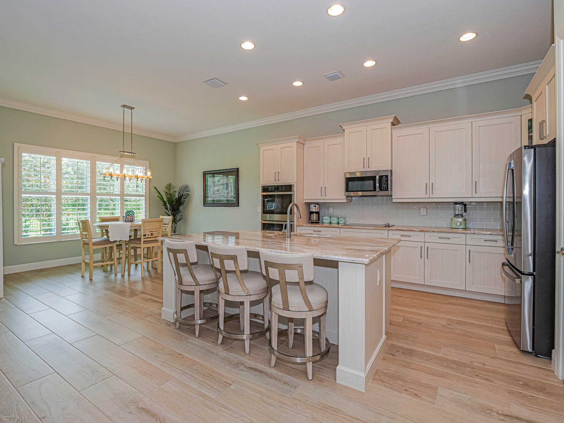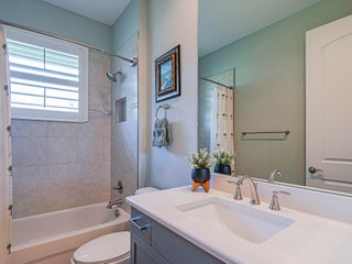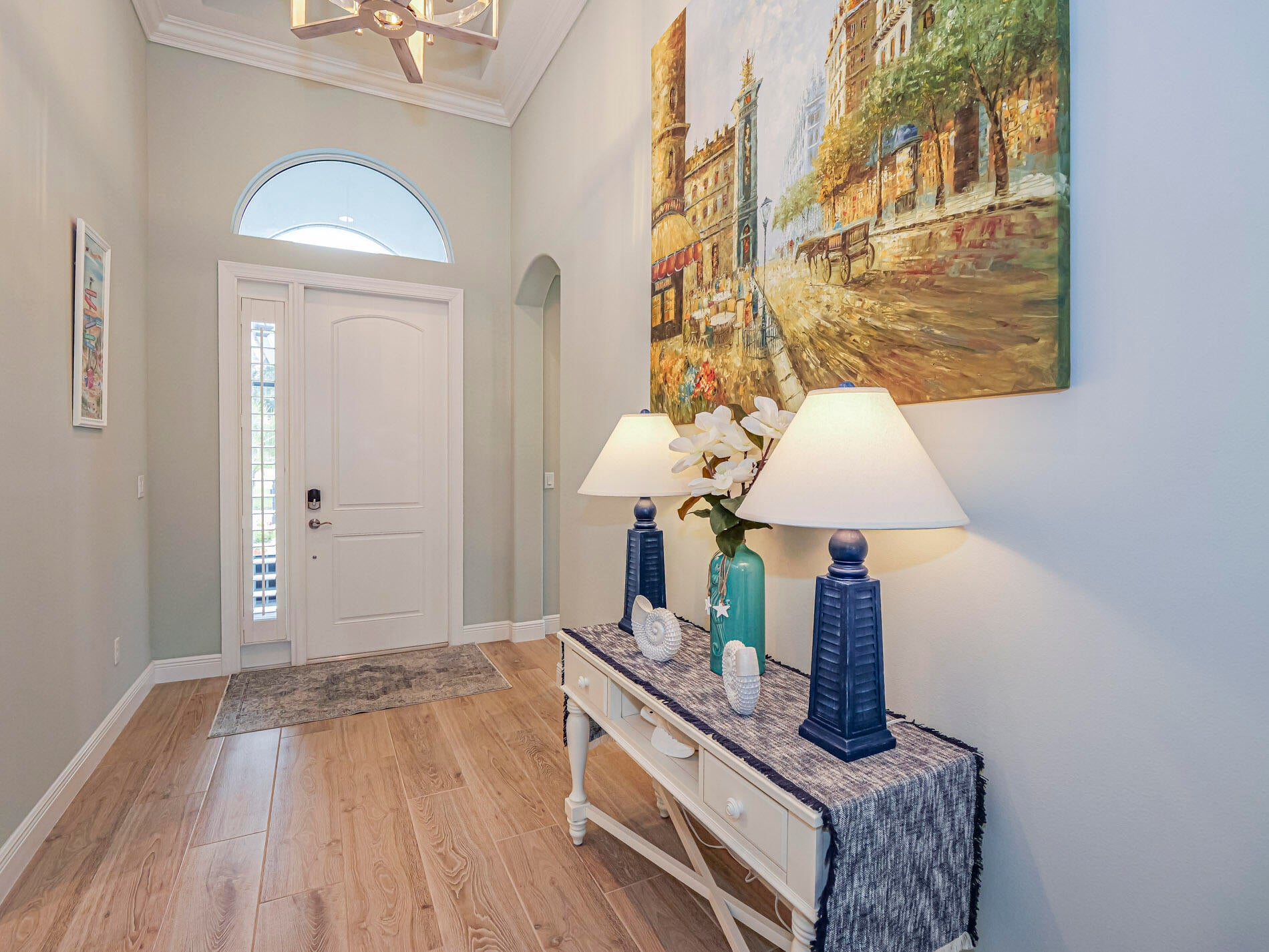 Immaculate GHO home on a serene lakefront lot. Beautifully landscaped w/ premium touches, river rock accent, concrete curbing, & fully fenced yard. Impact windows, plantation shutters, & level 4 porcelain tile flow seamlessly throughout, upscale lighting & designer ceiling fans. The gourmet kitchen boasts a striking granite island, custom backsplash, & a durable granite sink that resists scratches. Spacious walk-in closets, large laundry room, 3-car garage w/ epoxy flooring provide ample storage & convenience. Enjoy the upgraded back patio w/ privacy wall, perfect for relaxing or entertaining.