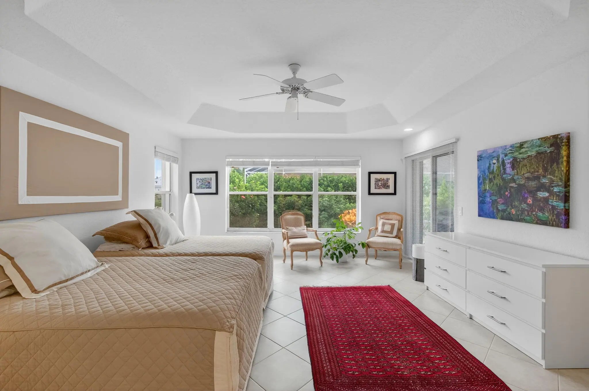 Immaculate 2300+sf contemporary Granada model on oversized, landscaped premium lot in lush Valencia Lakes. Stunning all-white home w/ 2022 Roof designed for creature comfort and great flow. Beautifully landscaped curved corner lot, private rear garden backing lanai. Impressive leaded-glass front entry French doors set the tone for this quality home. White tile floors, LED high hats throughout. LR, DR, Family Room, white eat-in kitchen, Custom double pantry, newer SS appliances, updated guest BA, Primary BR ensuite. Accordion shutters,'19 HWH. NEW Resort Clubhouse, state-of-the-art Gym, New Pickleball courts, USTA Tennis, League play, New Bocce courts, Tourny Billiards, Social Hall/Theater, Lap & Resort Pools, Patio Cafe, Clubs, Shows, Events at ''THE FRIENDLIEST VALENCIA'' !!