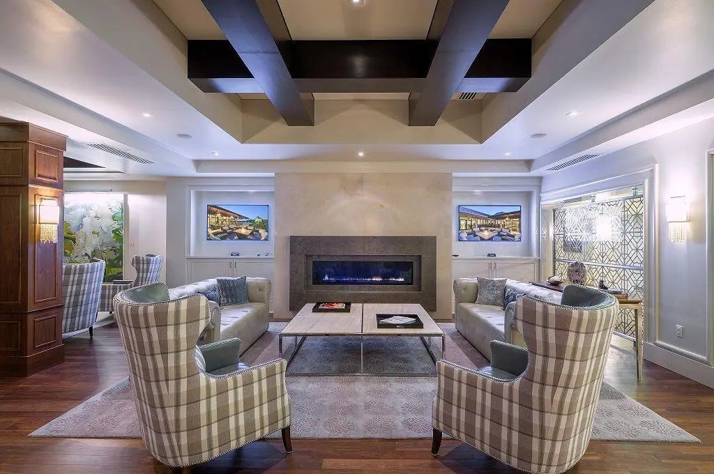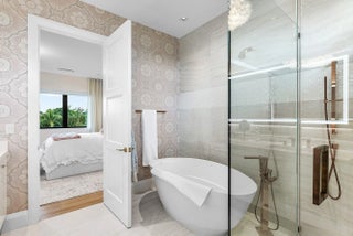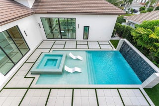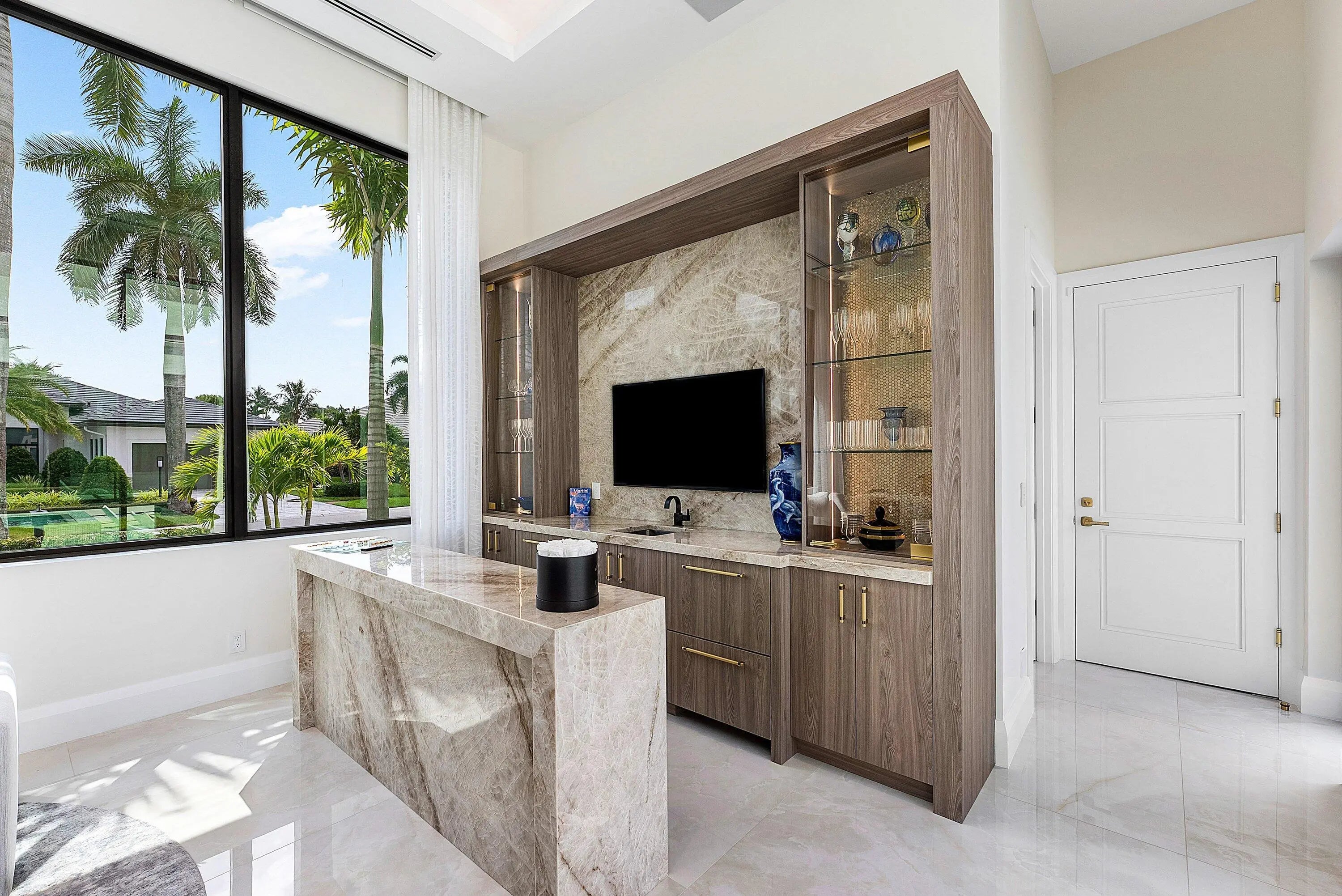 An architectural gem newly constructed in 2024, this custom-built courtyard home showcases expanses of glass that seamlessly integrate the indoor and outdoor environments. 12' glass windows and doors which frame eastern and western views illuminate the home with natural light. Modern design elements, coupled with hardscape accents in geometric form, create a stunning effect.The interiors have a refined, sophisticated aesthetic with soft tones and exquisite finishes. The home offers 5714 living sq ft, 4 ensuite bedrooms, 5.5 baths, office, entertainment room (which can be converted to a 5th bedroom with a full bath), temperature-controlled 200 bottle wine room, glass-railed floating staircase, music gallery, and 3 air-conditioned garage spaces (constructed to accommodate 6 cars using