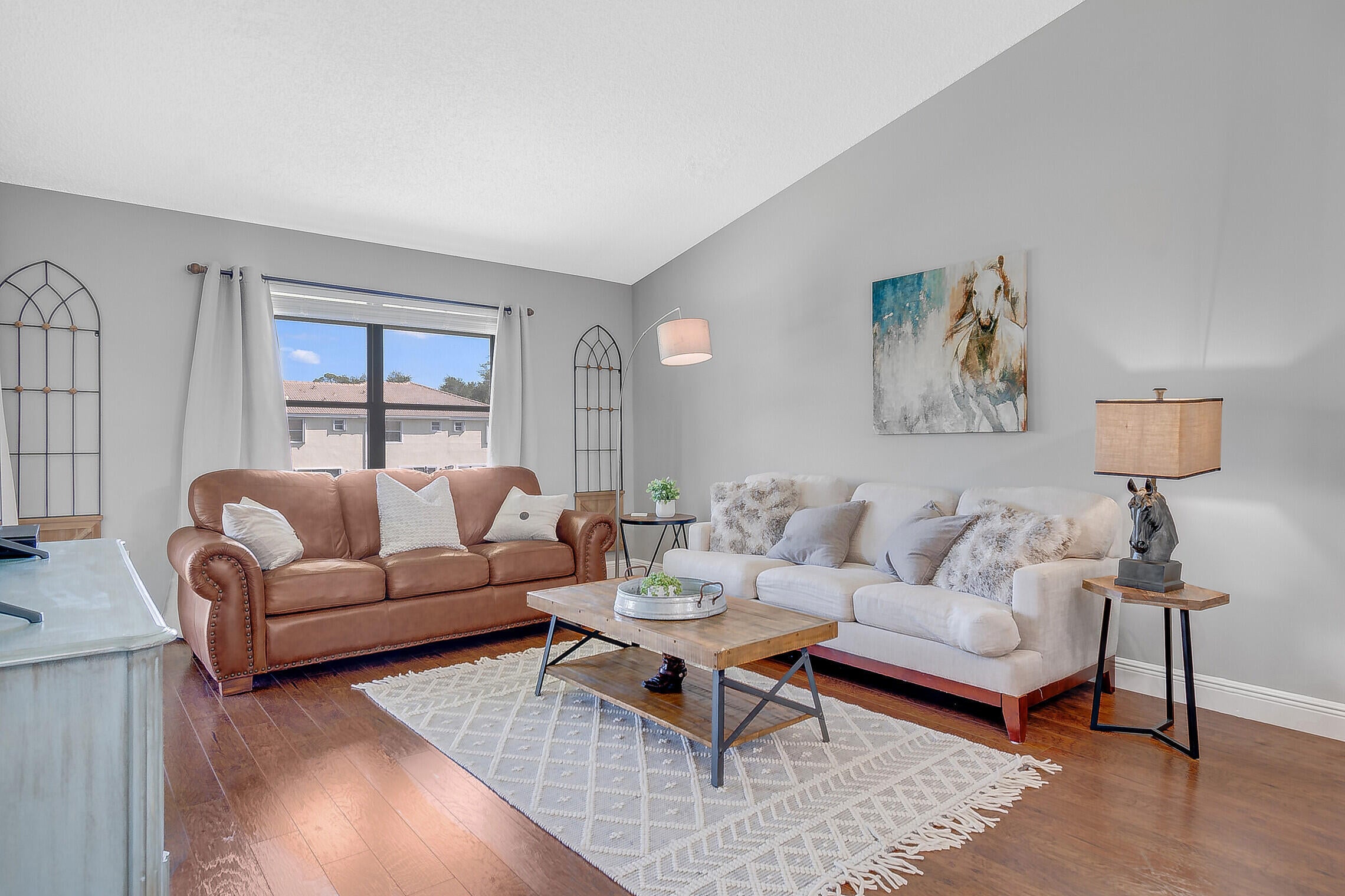 Experience the epitome of luxury in this stunning, turnkey second-floor condo featuring an expansive open-concept living space. Soaring vaulted ceilings bathe the home in natural light, creating a bright and airy ambiance. Perfectly located just minutes from WEF, Global Dressage, NPC, and the best of Wellington's world-class amenities. This exceptional seasonal rental won't last long--secure your perfect retreat today! Also available furnished Annual rental.