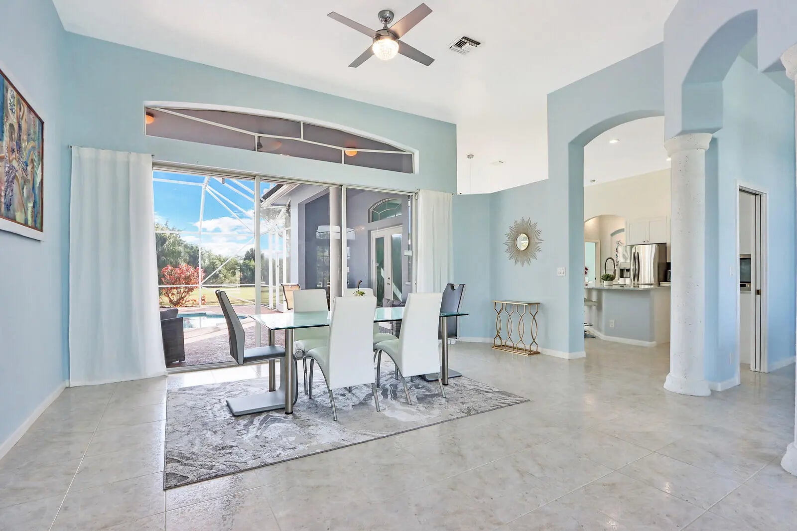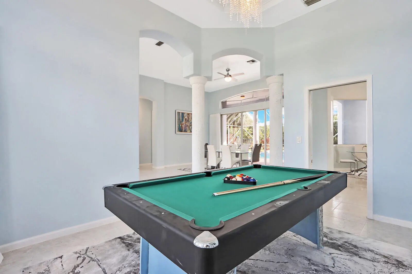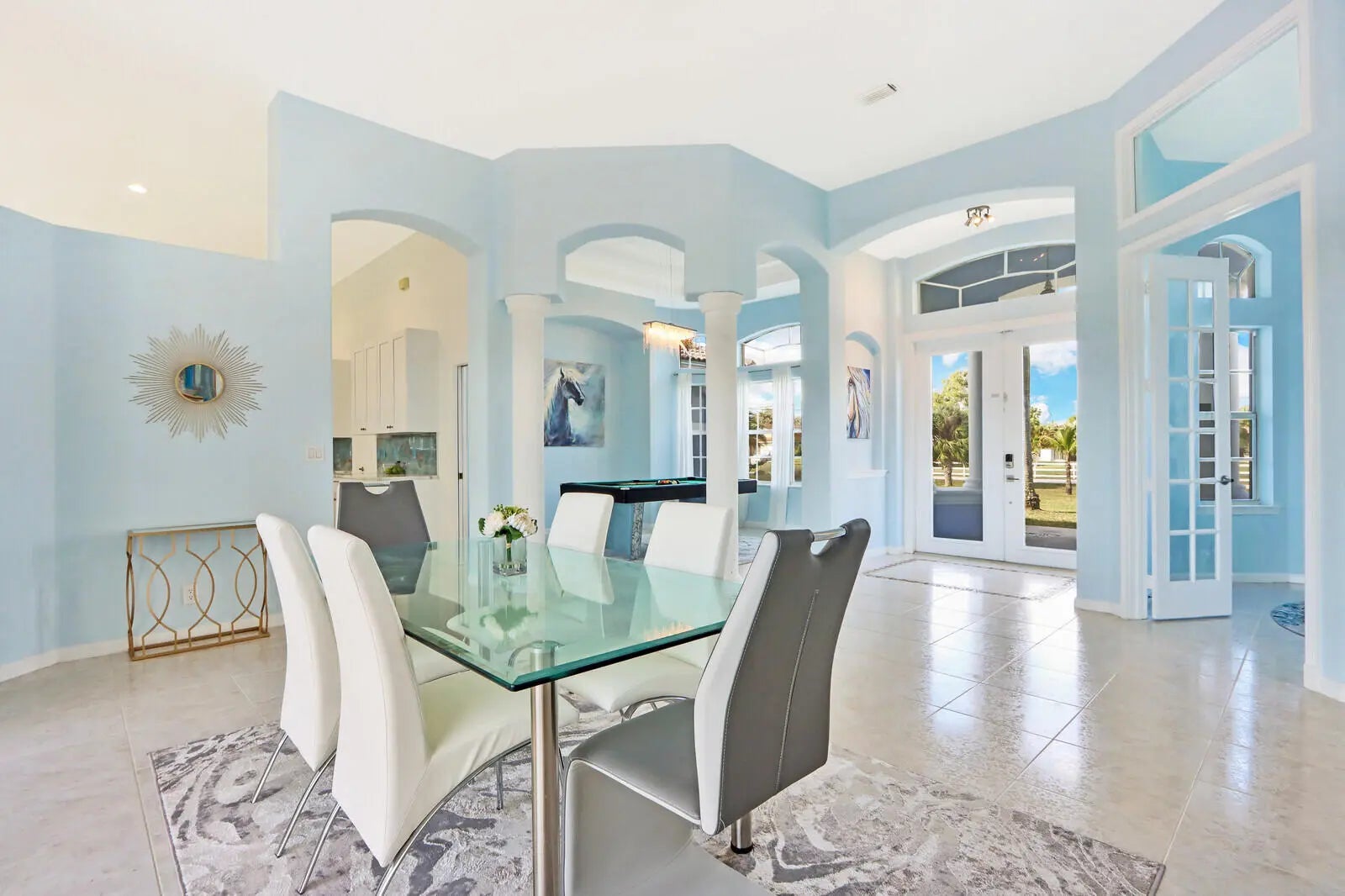 Gorgeous Florida retreat! This 4 bedroom, 3 full bath pool home has been beautifully remodeled and very tastefully decorated to make your dream vacation a reality. King master suite, 2 Queen suites, & twin w/trundle will sleep 8 comfortably. The huge master suite has French doors leading to the private, screened in pool and spa. The spacious master bath features double floating vanities, soaking tub and a dual head doorless walk in shower. Spacious and well-appointed kitchen opens to the enormous living room for entertaining with ease and comfort. The home even has a billiards table, ping pong and an office! Located on 2 acres in a quiet country setting yet close to beach. No annual leases. Available 2025-2026 season. NO PETS AT ALL.