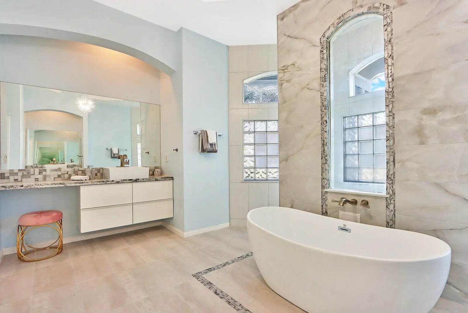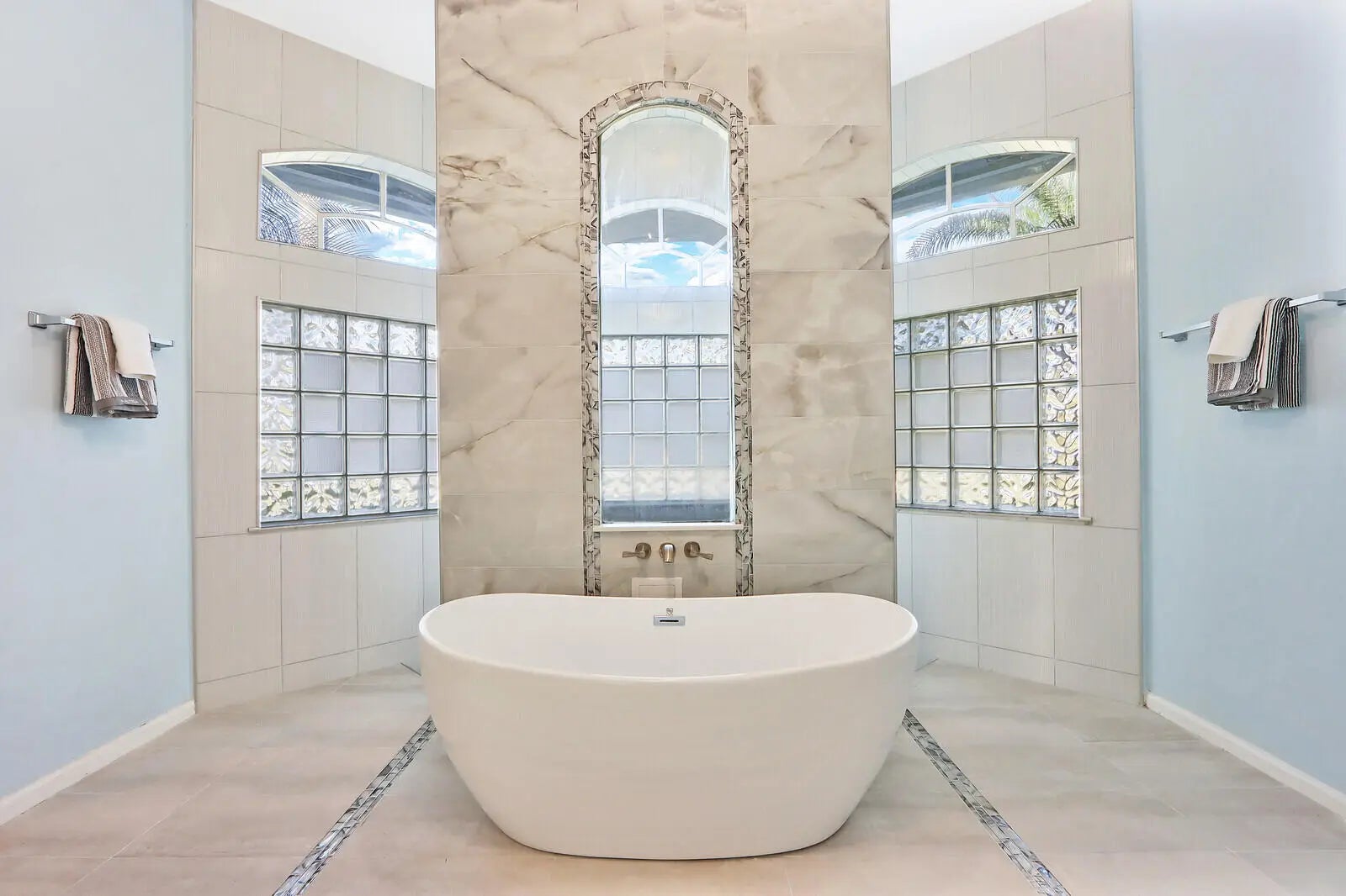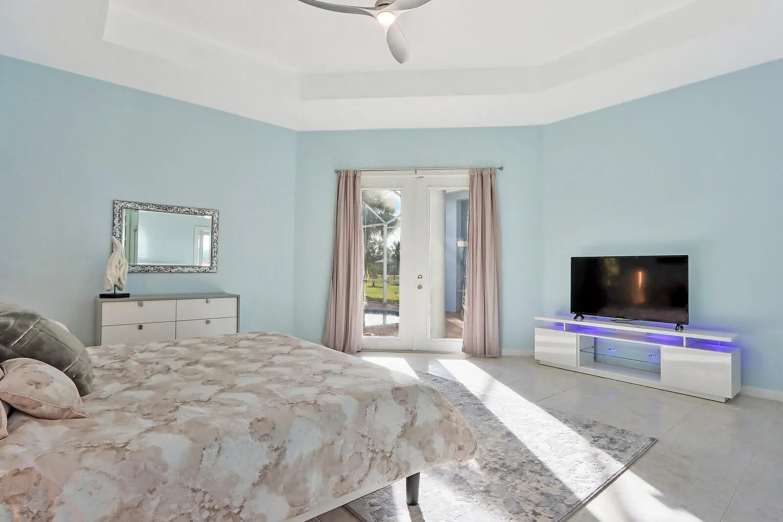 Gorgeous Florida retreat! This 4 bedroom, 3 full bath pool home has been beautifully remodeled and very tastefully decorated to make your dream vacation a reality. King master suite, 2 Queen suites, & twin w/trundle will sleep 8 comfortably. The huge master suite has French doors leading to the private, screened in pool and spa. The spacious master bath features double floating vanities, soaking tub and a dual head doorless walk in shower. Spacious and well-appointed kitchen opens to the enormous living room for entertaining with ease and comfort. The home even has a billiards table, ping pong and an office! Located on 2 acres in a quiet country setting yet close to beach. No annual leases. Available 2025-2026 season. NO PETS AT ALL.