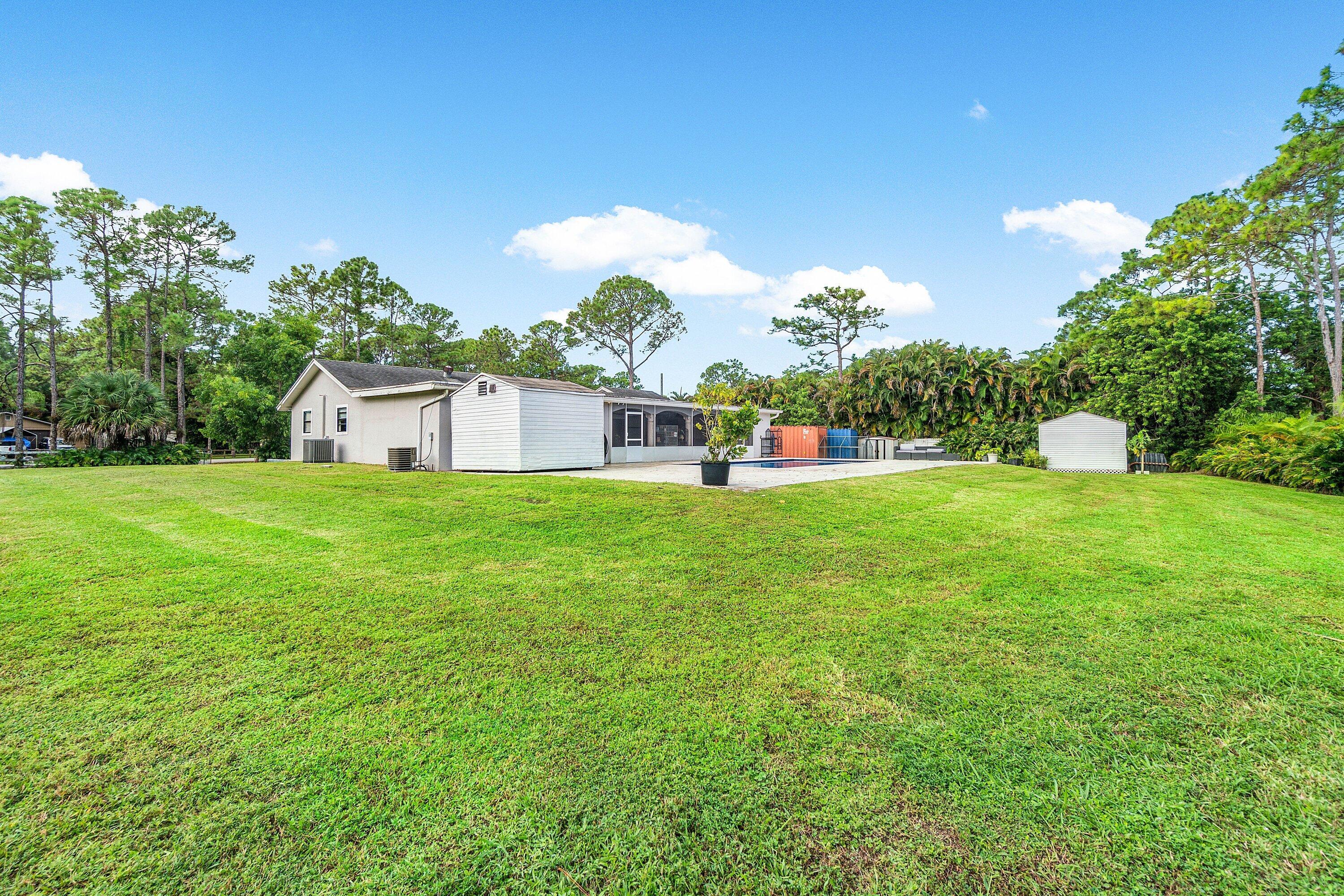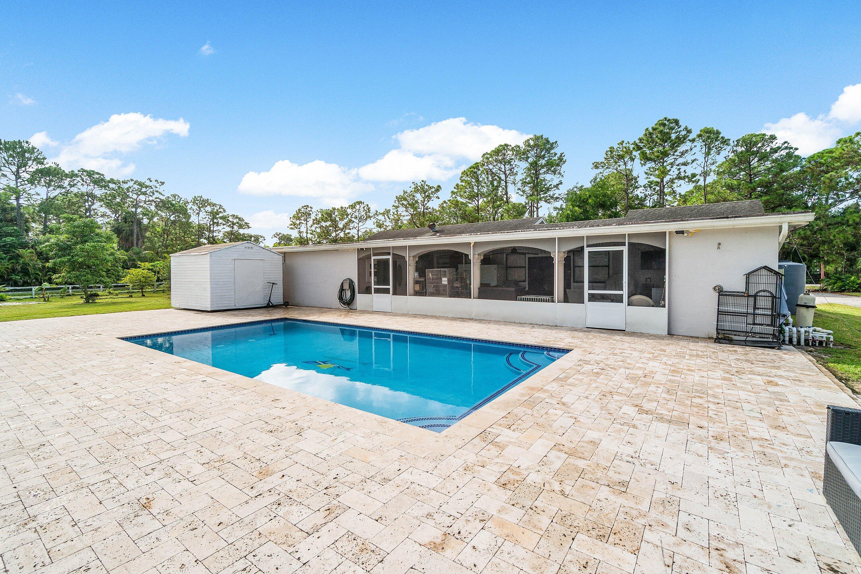 4-bedroom, 4-bath home in The Acreage with no HOA, paved roads and endless possibilities. The flexible floor plan can serve as a traditional single-family home or be divided for multi-generational living or rental income. Features include an oversized screened porch with full outdoor kitchen and bath, sparkling pool with pavered deck, and two gated entrances. The property also offers two versatile sheds (20x10 ''she shed/man cave'' + 10x10 storage), semi-barn for animals or storage, and optional storage containers. Plenty of parking for your RV, boat, or toys. Just minutes to shopping, dining, and beaches--enjoy the the perfect blend of the vibrant cultural events of West Palm Beach living while still enjoying the rural feel of living on acreage with no HOA!