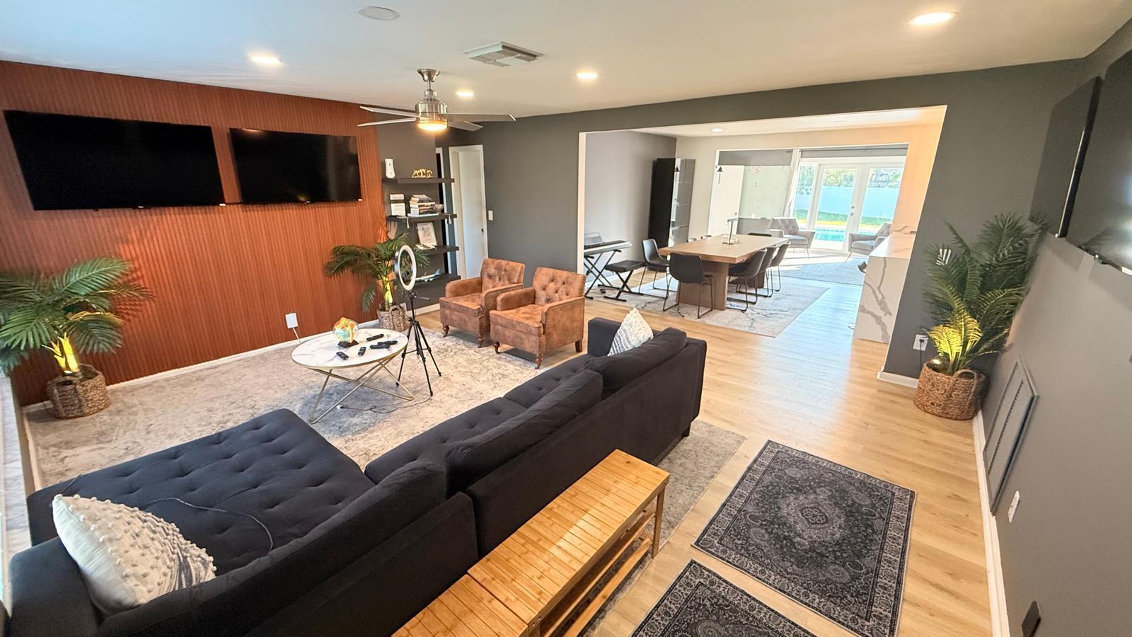 Welcome to this stunning single-family home in the heart of East Boca Raton, located just 1 mile from the beach (dog-friendly access!) and only 5 minutes from I-95. Walking distance to two synagogues. Set on a rare half-acre corner lot, this property combines modern living with unbeatable convenience. Inside, you'll find a completely remodeled and freshly painted interior with a flexible layout to fit your lifestyle. The home features 4 bedrooms and 2 full bathrooms, including: A remodeled kitchen with quartz countertops, stainless steel appliances, and custom cabinetry. A spacious living and dining area with abundant natural light. Full-size washer & dryer for your convenience. 2-car garage with plenty of storage. The owner is currently using the property as his private office: one bedro...bedroom is set up as a conference room, another as a podcast studio, while the remaining bedrooms are arranged as a private suite and guest space. This flexible floor plan is perfect for professionals working from home, families, or anyone who values extra space. No HOA, fast and easy approval. Direct negotiation with the owner. This home is move-in ready and offers the best of East Boca livingclose to the beach, shopping, dining, and top-rated schools, while also offering privacy and space rarely found in the area.