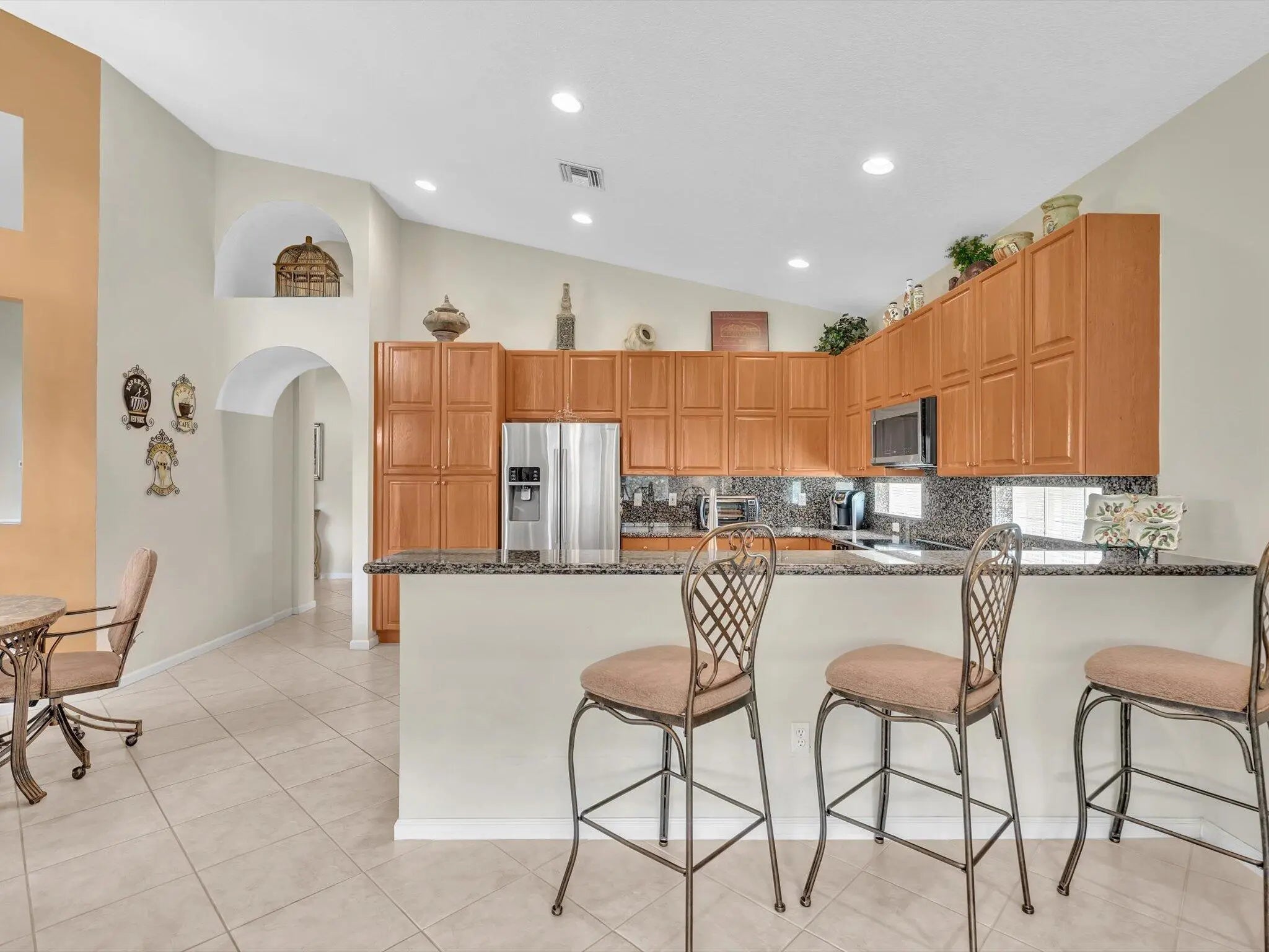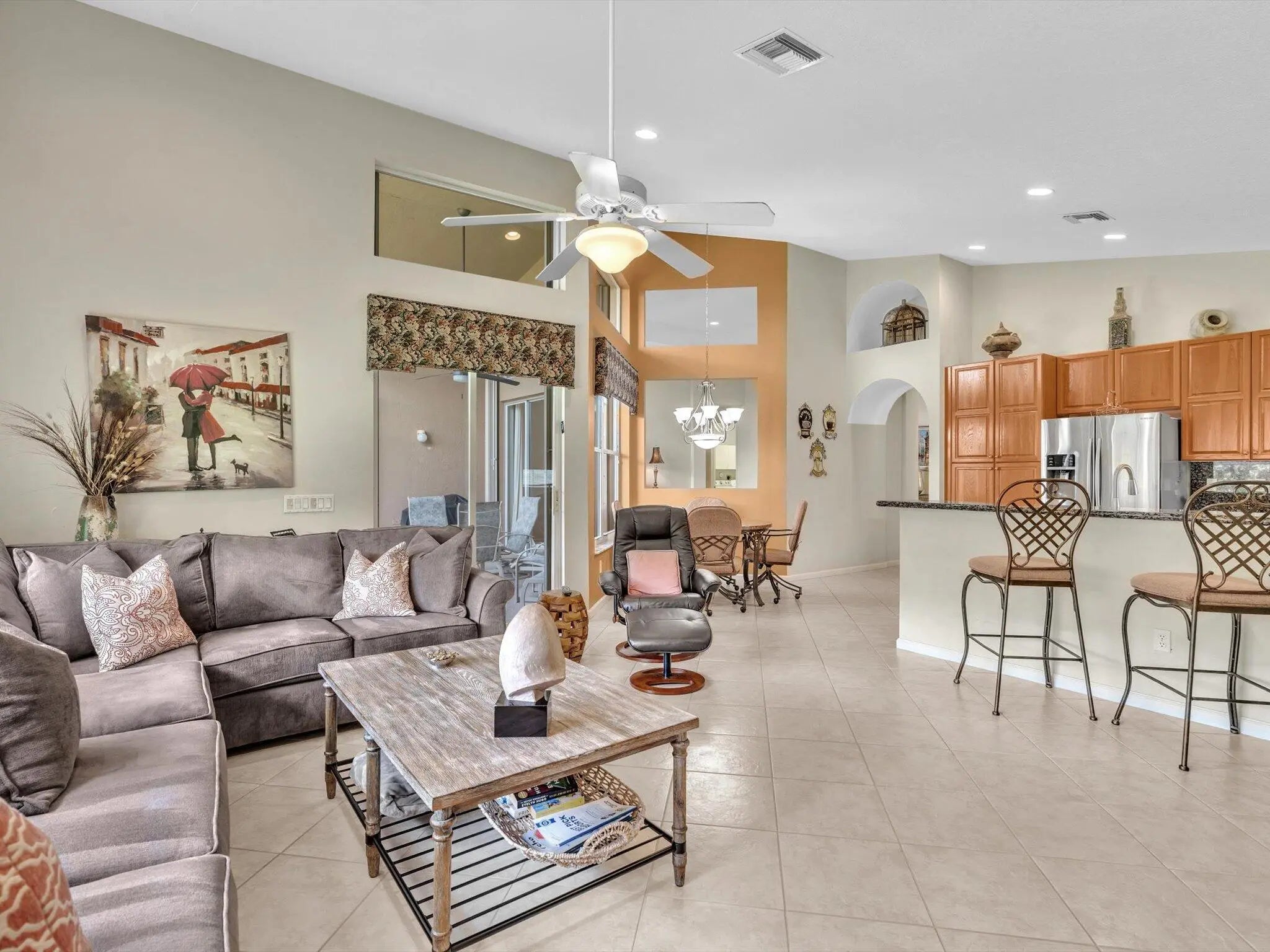 MOTIVATED SELLER! Situated on one of Valencia Lakes private, perimeter lots with no rear neighbors, the expansive ''Madrid'' model boasts a split floor plan & 2,629 sq ft of luxurious living with 4-bedrooms, 2-full baths & 1-half bath. A screened & covered Lanai facilitates outdoor living 12-months per year. The spacious primary suite features 2 walk-in closets and a bathroom with dual vanities, soaking tub and separate shower. Many features include a chefs kitchen with wood cabinetry, granite countertops/backsplashes and an updated Samsung Stainless appliance package. Neutral ceramic tile in all main living areas with beautiful laminate-wood flooring in the primary suite & Den/Office/4th Bedroom. A.C. 2020, Water Heater 2021. Complete accordion storm protection!