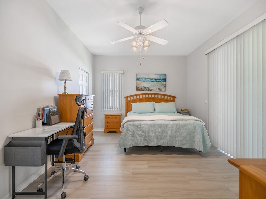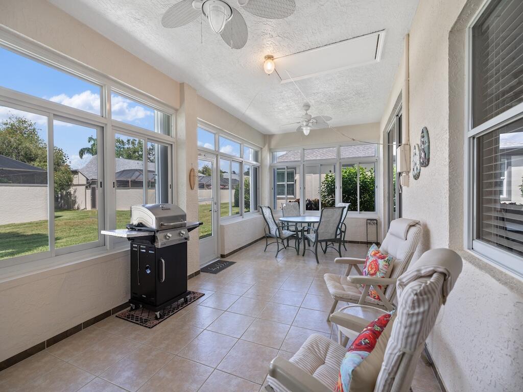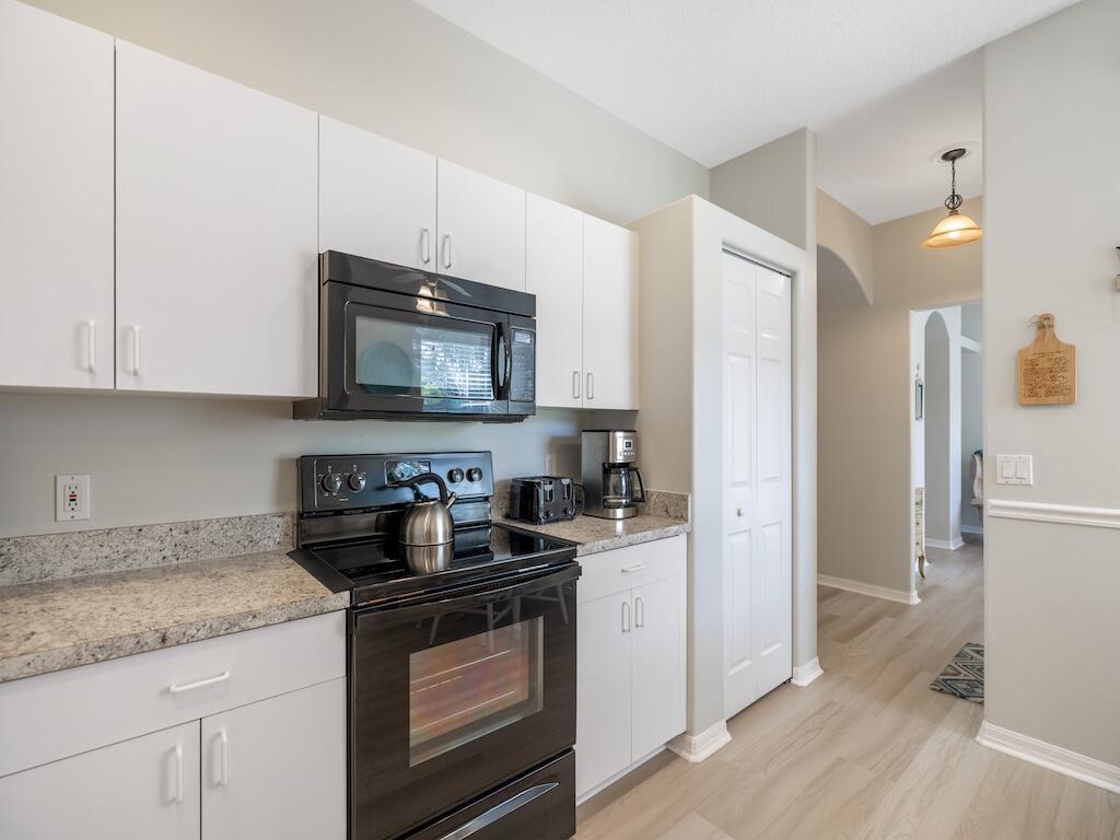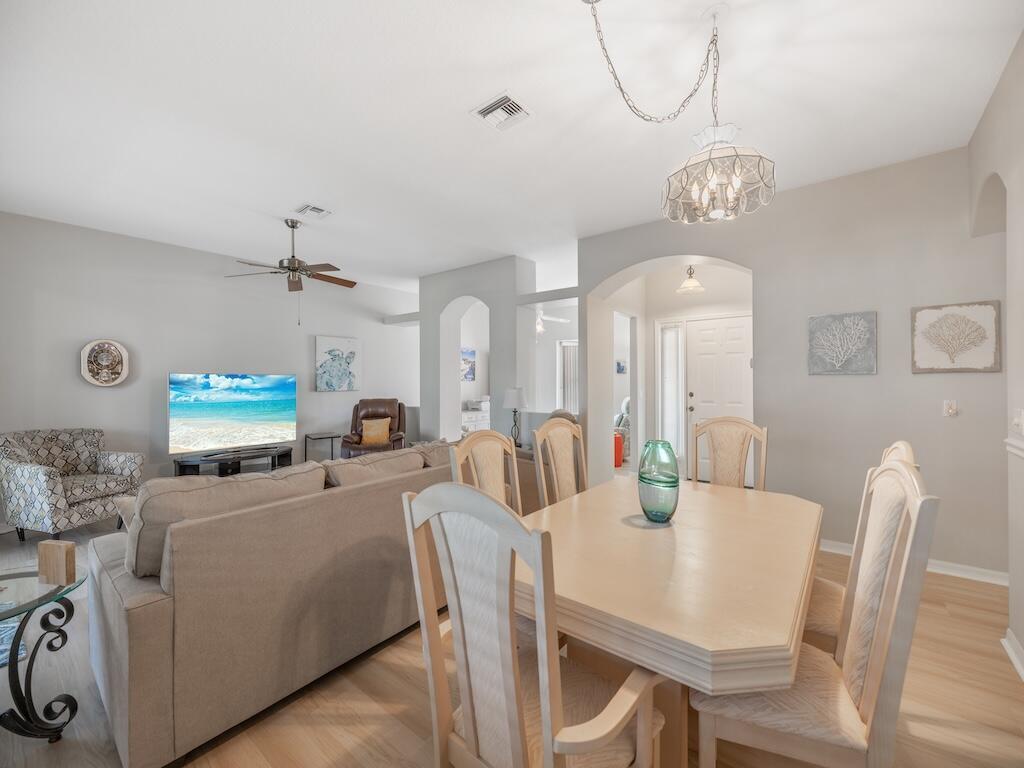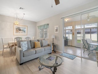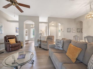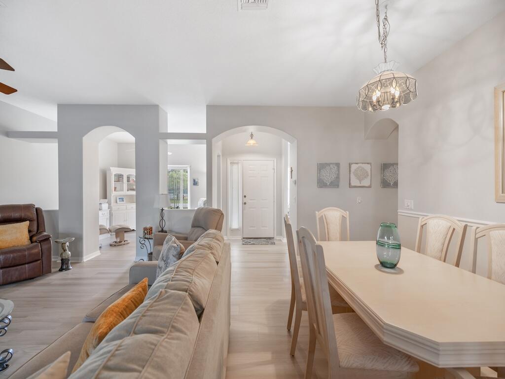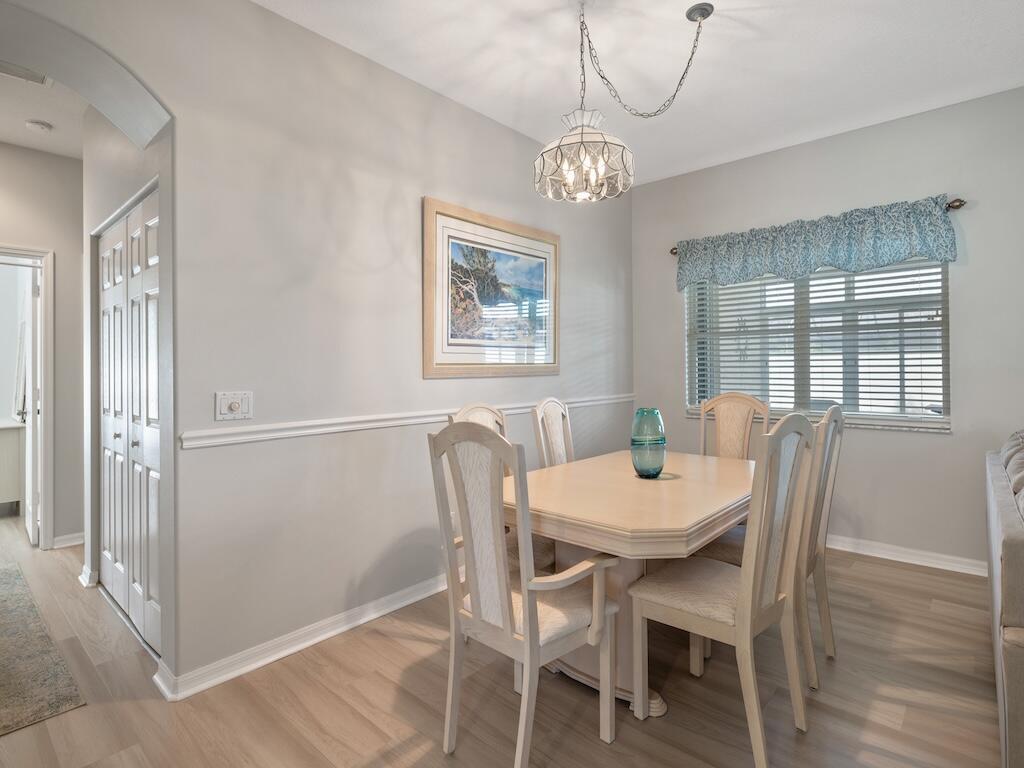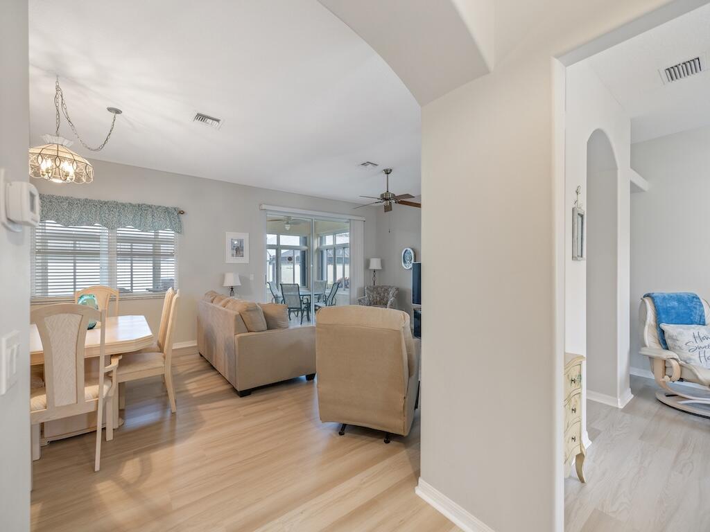 Fresh updates meet timeless charm in this detached home, making it a true standout. With a new roof (2022), A/C (2021), water heater (2019), and brand-new vinyl floors, the major upgrades are already done. Enjoy morning coffee, game nights, or extra living space in the sun-filled enclosed porch. The chef-friendly kitchen offers abundant storage, while the primary suite delights with dual sinks, a relaxing garden tub, and private porch access. Arched doorways, a bay window, and decorative plant shelves add stylish character throughout. Located in a gated, non-age-restricted community loaded with amenities--pool, tennis courts, and more--and just minutes from shopping and dining!