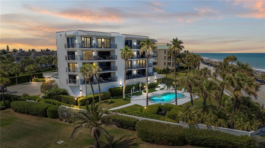 Highly Desirable Ocean Shores Penthouse with high ceilings-overlooks Vero's Beach and Boardwalk, 2/2 with an office/3rd bedroom sleeps 6, High-end appliances, Professionally decorated, Spacious Rooms, Roomy Master dressing area, Sprawling Ocean & Sunset Views from 2 private balconies. Elevator, Secure Entry, Xtra Storage, Restaurants Nearby, Pool. Walk to shops. Available December 25, 2025 to March 26, 2026 (3 month minimum)