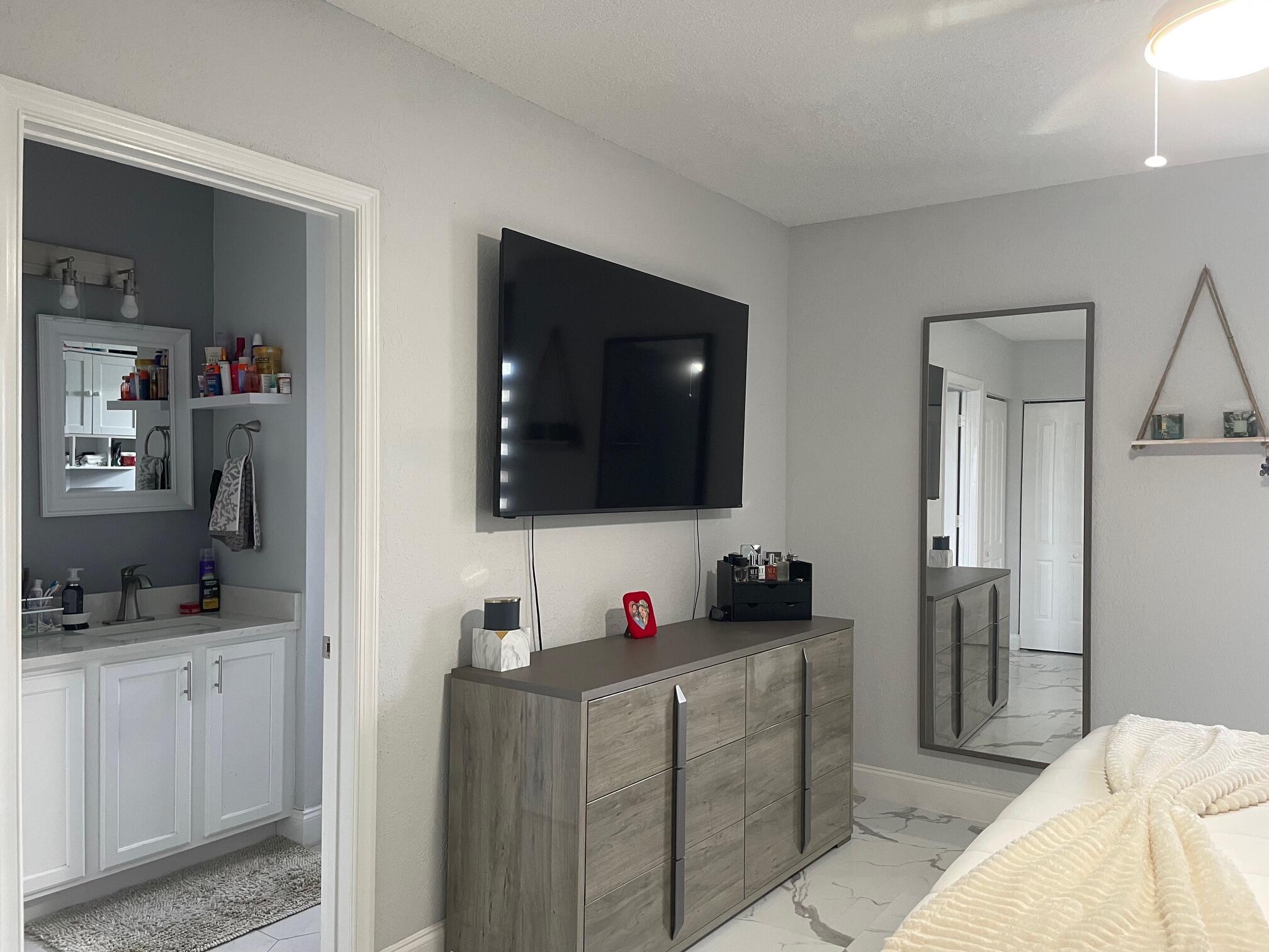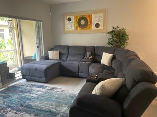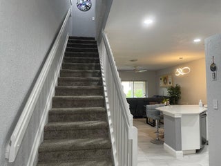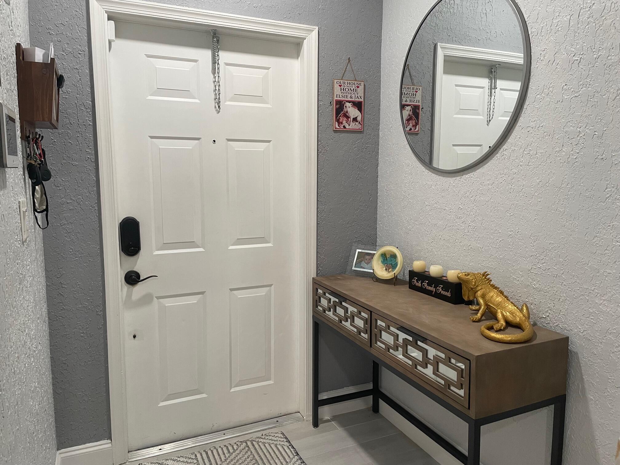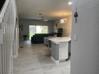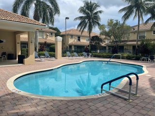 Such a beautiful, move-in ready all ages TH in Wellington. Hurricane protection. OPEN, light and bright, white kitchen with SS appliances with large countertop, great for entertaining and for bar stools. Pantry included. Coffee/liquor bar. Gorgeous tile floors on the first floor. Half bath on the first floor for guests. Newer luxury window treatments. Screened patio with storage. Second floor loft/home office/playroom/exercise room. Guest bedroom could have private bathroom. The primary suite is bright and large. White and bright bathroom, double sinks, shower with window. Short walk to pool. Easy access to all that is Wellington. Great local landlord.
