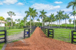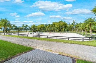 Barn with studio lounge, tack room, feed room, 4 covered wash stalls w/fans, RV hookups. Ring is 175 x 110 w/large irrigation jets, 6 irrigated paddocks. Hacking distance to 365 acre preserve at the end of the road as well as all Wellington bridle paths and WEF.