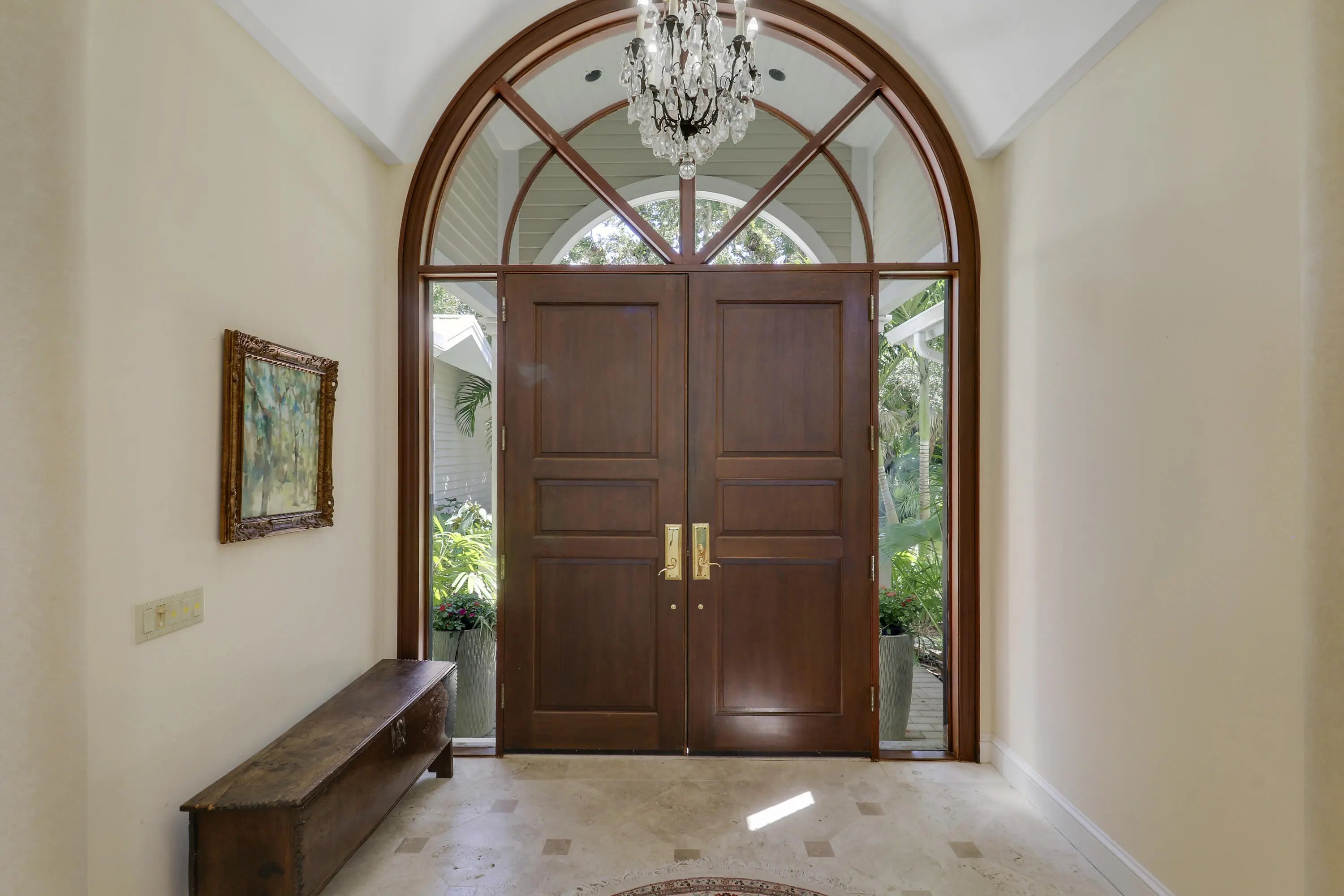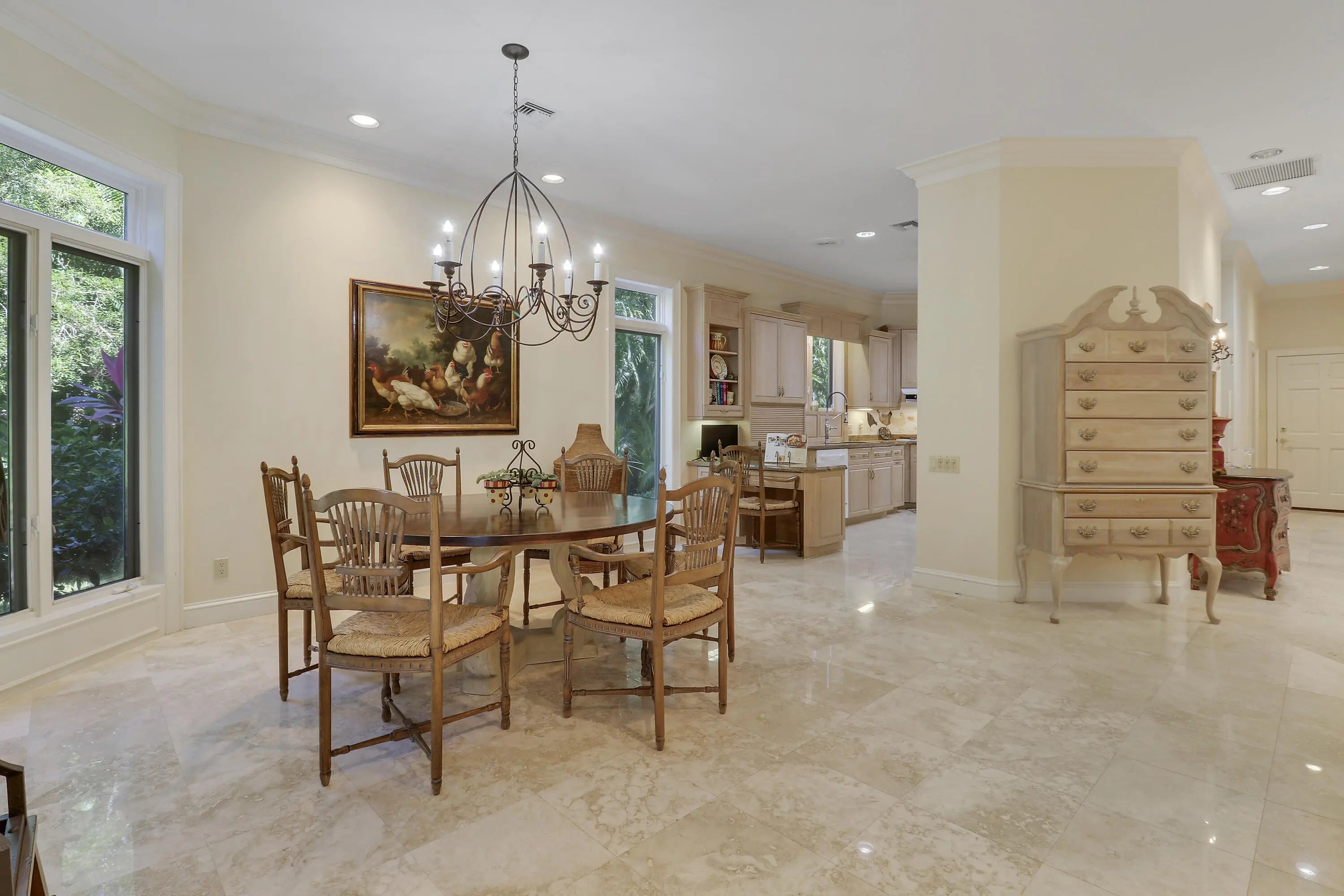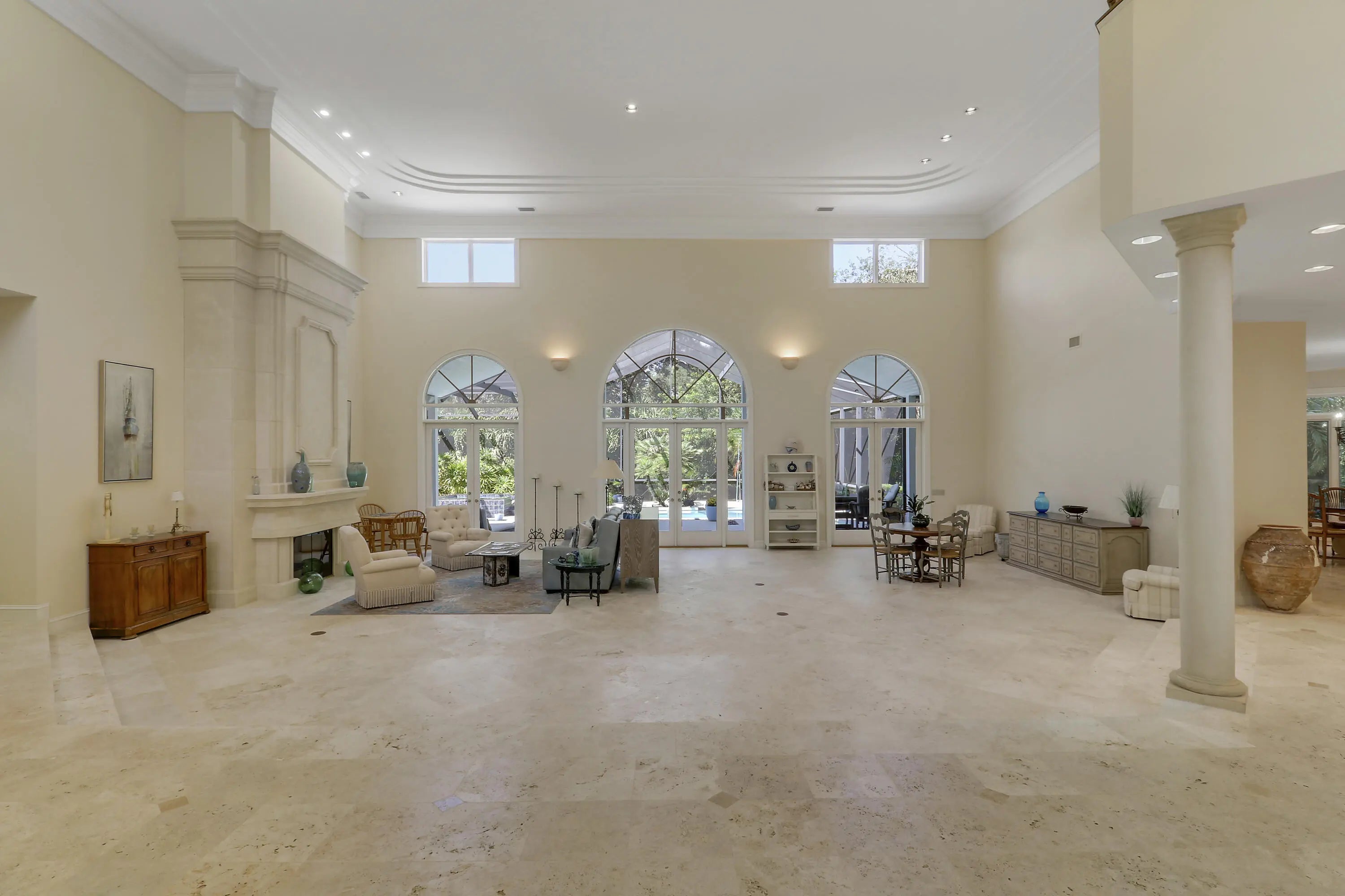Elegant 4BR/5.1BA pool home in prestigious Indian Trails, offering A+/-5,800 SF of refined indoor-outdoor living on a lushly landscaped cul-de-sac. The grand entry opens to soaring ceilings and a dramatic great room with marble fireplace, arched windows, wet bar, and library with custom bookcases. The chef's kitchen features granite countertops, custom cabinetry, 5 burner gas stove and under-cabinet lighting. The first-floor primary suite is a true retreat with garden views, tray ceiling, and spa-like marble jacuzzi tub with dual vanities, and oversized walk-in shower. A dedicated pool bath adds convenience for guests. Upstairs, the large guest loft includes two bedrooms, with 2 full baths, and a bright sitting area. Enjoy the renovated screened pool and spa deck with hot tub,