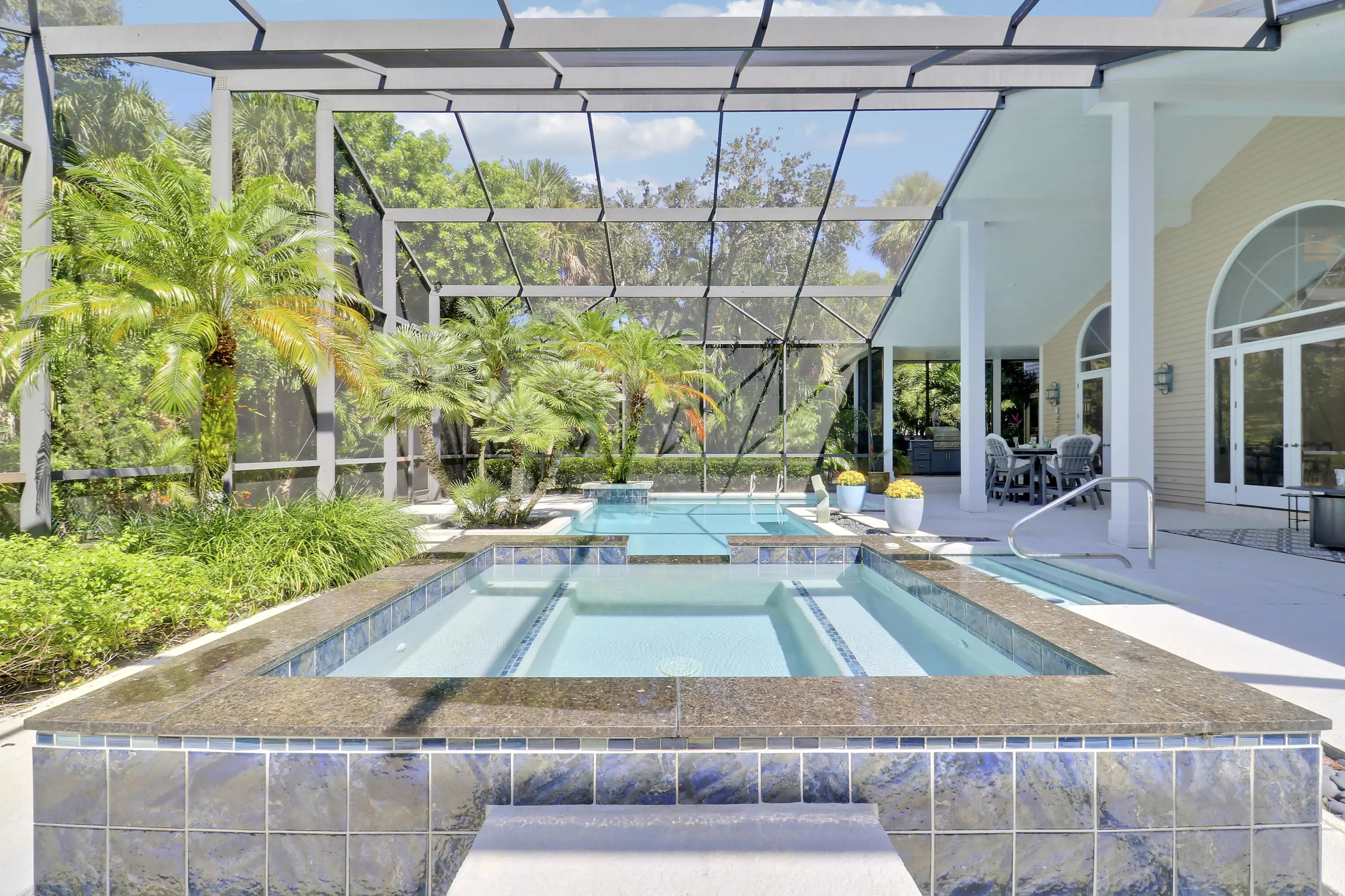 Built-in Grill, Covered Patio, Custom Lighting, Lake/Canal Sprinkler, Screened Patio, Summer Kitchen, Zoned Sprinkler