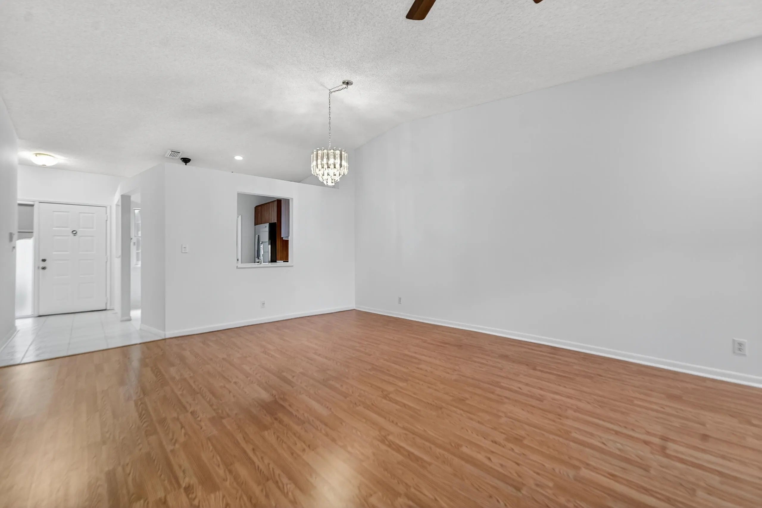 Light, bright, and re-invigorated 2/2 Capri Villa with cathedral ceiling. The kitchen cabinets and counter have been elegantly re-designed. Newer stainless appliances including washer and dryer. Laminate flooring in living room and primary bedroom. Two very large closets in primary bedroom. Primary en-suite bath has upgraded shower, new vanity, and new toilet. The enclosed, screened-in Florida room is perfect an office, den, or guest room, and looks out on a park-like garden view. Inside laundry holds full size washer and dryer. Attached one-car garage fits a full-size SUV, plus there are two parking spaces in the driveway. A/C 2 yrs old. Huntington Pointe is a an active adult community that features a 53,000 square foot clubhouse. The 600 seat theater offers live entertainment and