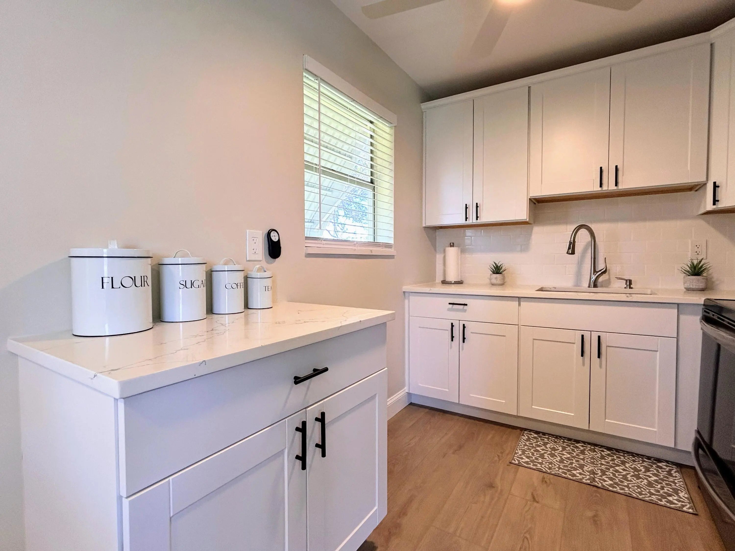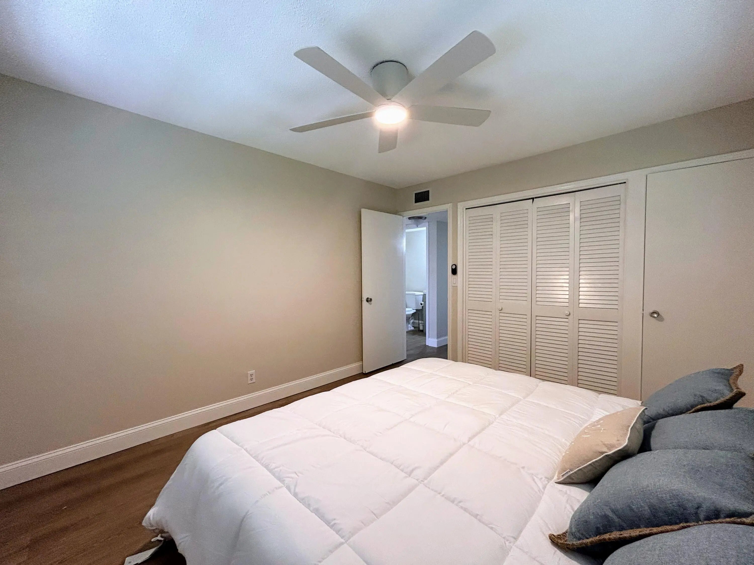 NEW PRICE!!! BEAUTIFUL REMODEL IN POPULAR 55+ STERLING VILLAGE. A RARE 2 BEDROOM/1.5 BATH END UNIT ON 2ND FLOOR. PLANK STYLE LUXURY VINYL FLOORING IN ALL ROOMS. KITCHEN HAS NEWER STAINLESS-STEEL APPLIANCES, DEEP SINK W/ PULL OUT POT FAUCET, WHITE SHAKER CABINETS, WHITE SUBWAY TILE & QUARTZ COUNTERS. BATH HAS TALL VANITY/TOILET AND SUBWAY TILE TO THE CEILING. 5 MATCHING CEILING FANS & WIDE BLINDS ARE IN ALL ROOMS. STYLISH PICTURES & FURNITURE INCLUDE A QUEEN SLEEPER SOFA. NEW AC & UPGRADED ELECTRIC BOX ADDED FOR SAFETY. NEW THIS YEAR & INCLUDED IN HOA DUES ARE INTERNET IN ALL CONDOS, CAR WASH AREA, GATED & FENCED PERIMETER, PICKEBALL & FITNESS CENTER IN RENOVATED CLUBHOUSE. VILLAGE IS WALKING DISTANCE TO BOYNTON MARINA W/ WATERFRONT RESTAURANTS, BOAT CHARTERS & TIKI TAXI FOR (Pg 2 More