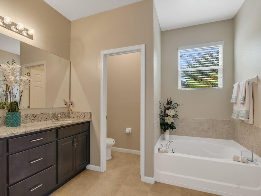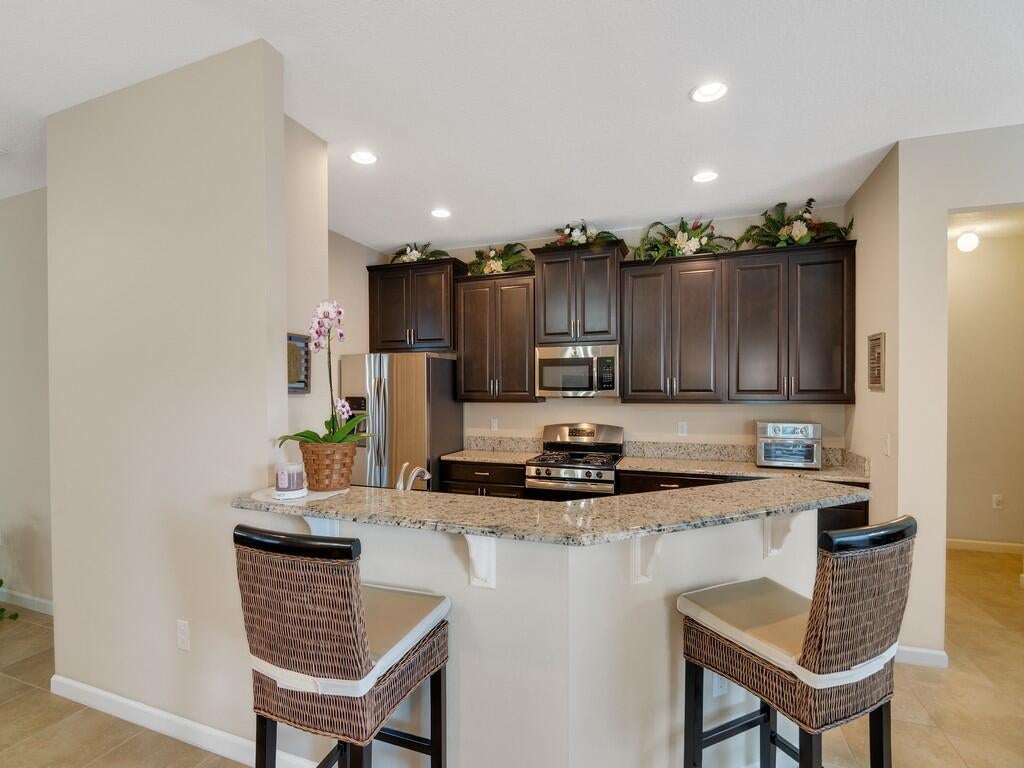 A gardener's dream! The landscaping is abundant and varied. Natural gas cooking, dryer and water heater. Popular Amalfi floor plan with 4 bedrooms, abundant storage and an oversized garage. All tile flooring throughout home with granite tops and stainless appliances in the open kitchen. Traditional neighborhood design community with county water, sewer and natural gas. Front porch living to wave to your neighbors and dog walkers stolling by. Social and golf memberships available. Low HOA fees include lawn maintenance and heated community pools. 5 minutes to shopping and restaurants and 15-20 minutes to the beach.