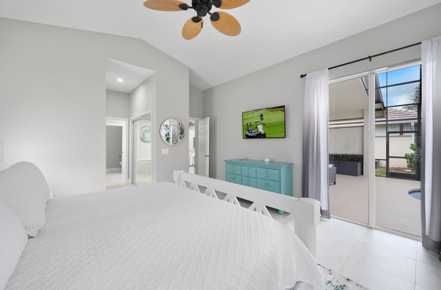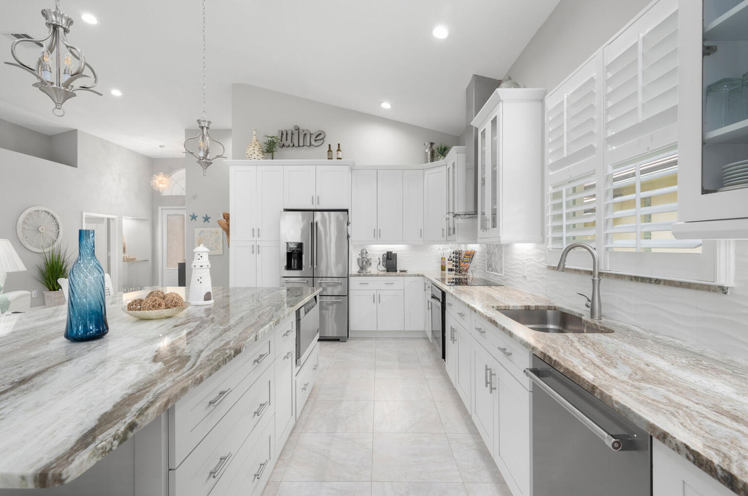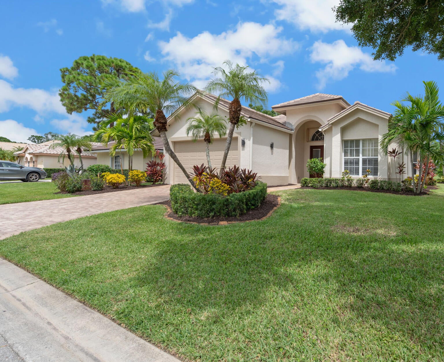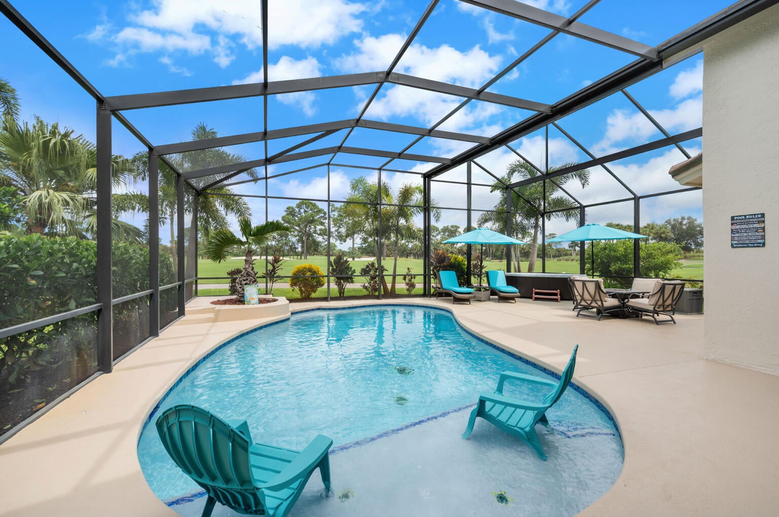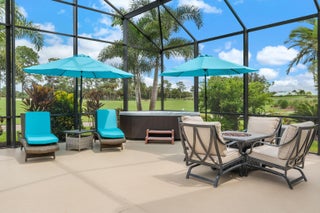 NEW TILE ROOF and NO CITY-TAX or TRADITION AREA CDDs.Welcome to this beautiful, totally-renovated, Golfer's Paradise home located just off Hole #1 of the Ryder Course at the prestigious PGA Golf Club! Boasting 3-bedrooms, 2 redesigned baths, 2-car garage pool home that delivers turnkey luxury WITHOUT Tradition area or City taxes AND absolutely no CDD fees. Walking inside this home you are greeted with an open-concept layout and beautiful views of the golf course. New custom ship-lap TV wall with a linear fireplace, gourmet kitchen, granite countertops, an extra-large island that seats 6, stainless-steel Kitchen Aid appliances with designer finishes, 18x18 tile flooring throughout the home. 2019 HVAC system, 2024 water heater, 2020 epoxy garage floor, 2020 new screen enclosure.Outdoors, enjoy your large private-screened pool, hot tub and expansive patio overlooking lush fairways. PGA Village amenitiesgolf, tennis, pickleball, fitness center and heated resort style poolright at your doorstep. The lawn is nicely landscaped, with several new gardens and palms. Cable and internet is included in your HOA fees.