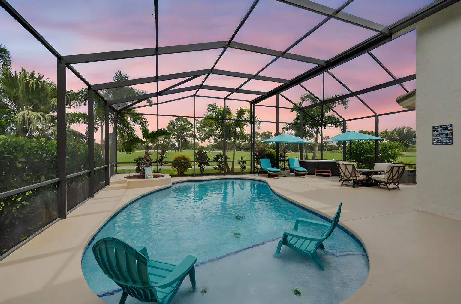 Equipment Included, Freeform, Gunite, Heated, Inground, Screened, Spa