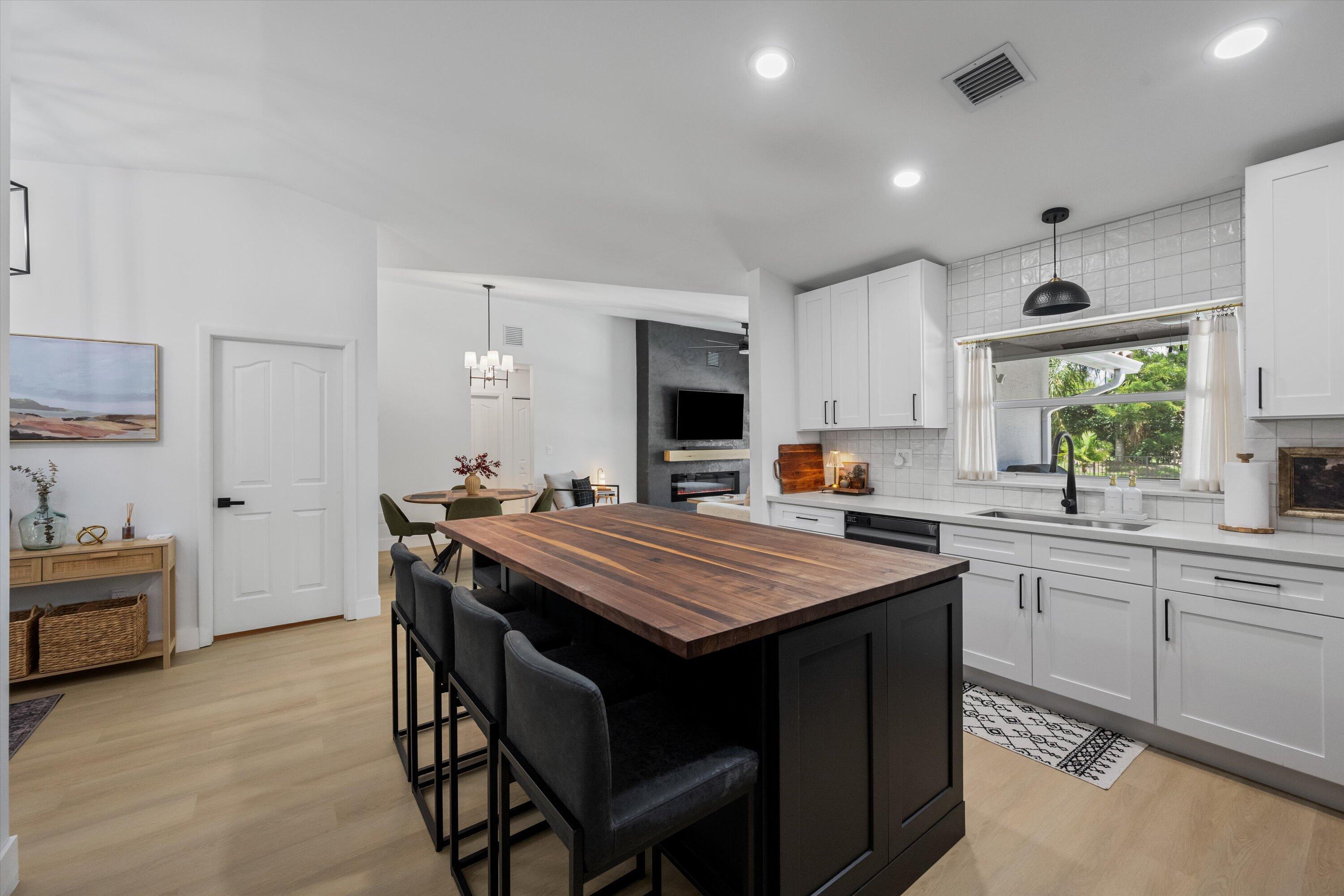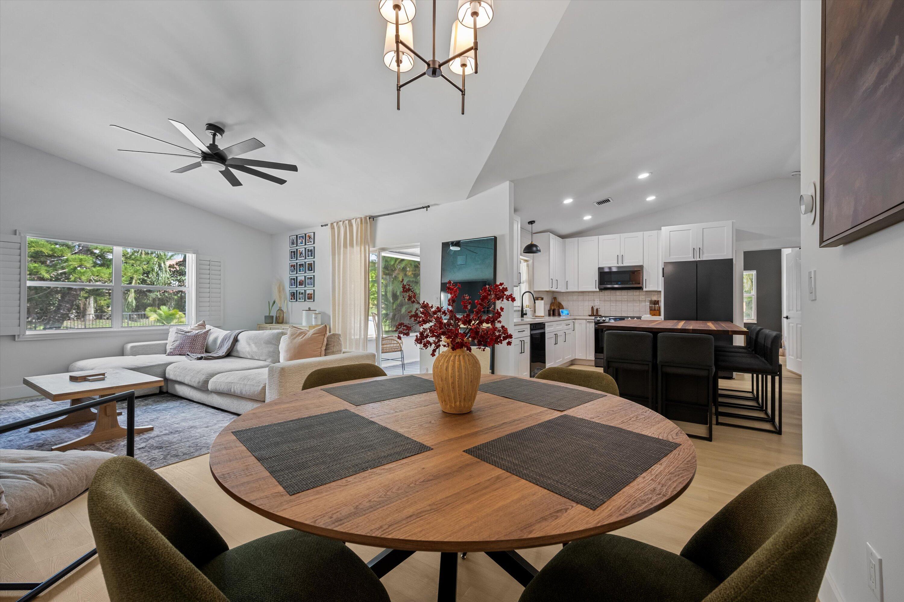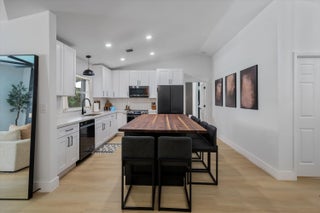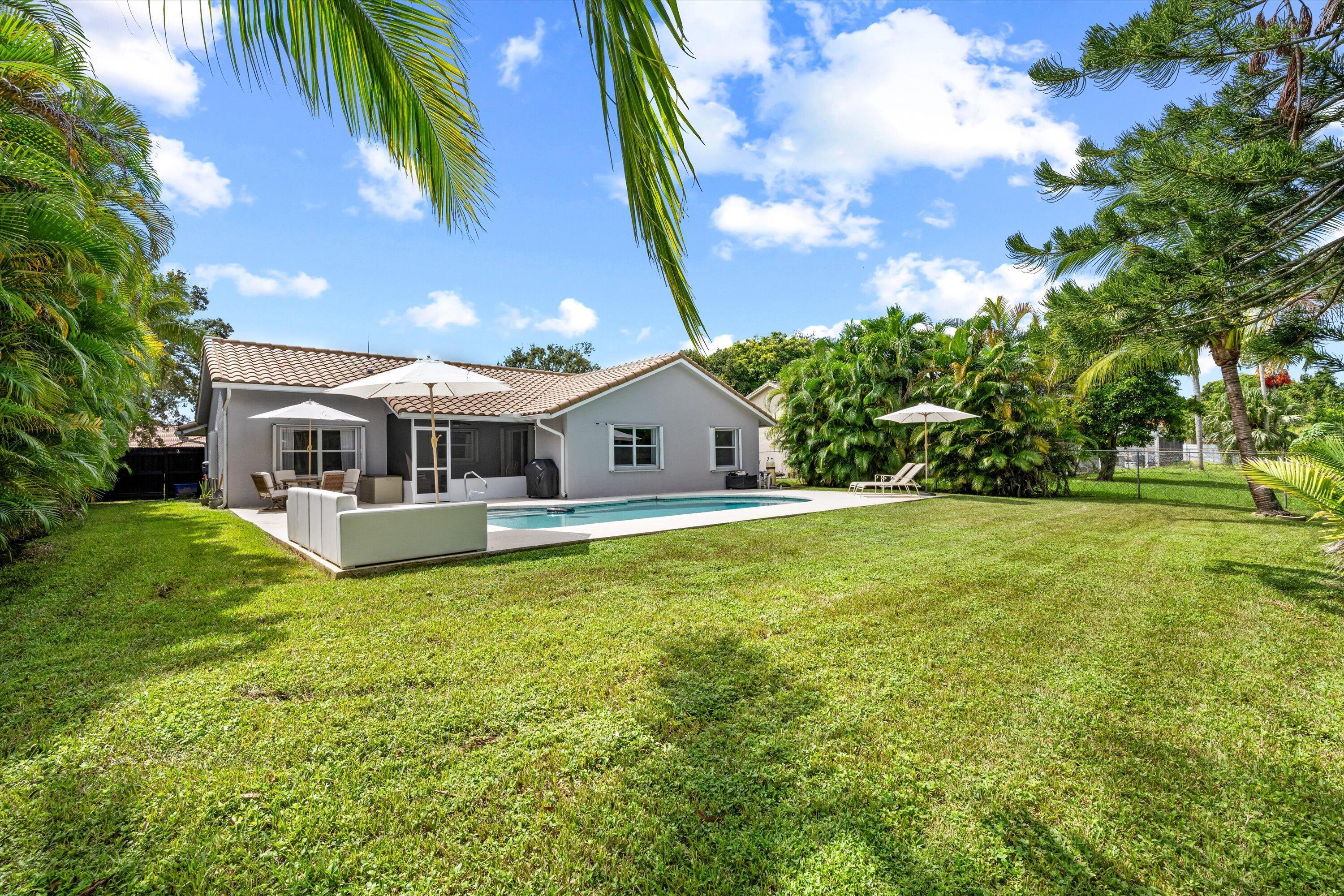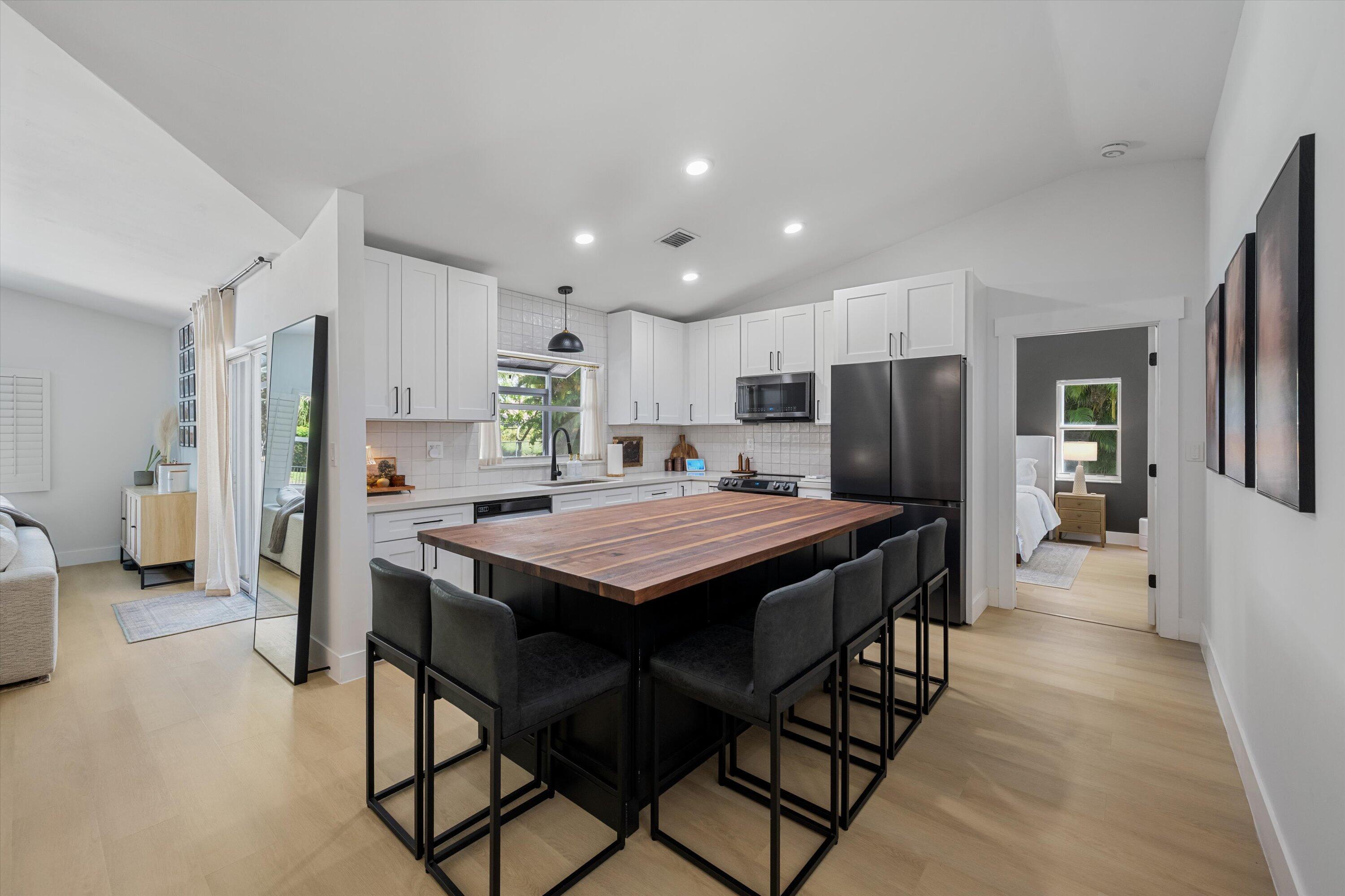 Step into your cozy, modern oasis! This lovingly renovated 4-bedroom, 2-bathroom home is filled with thoughtful details and a warm, organic vibe. Sunlight bounces off the sleek LVP flooring (2024) in the living areas, while soft rugs add a cozy touch. The primary bathroom, remodeled in 2025, feels like stepping into a spa with its stunning concrete-style tile and serene atmosphere. The secondary bathroom features a relaxing tub perfect for unwinding after a long day.The kitchen, remodeled in 2024, is a chef's dream with gleaming quartz countertops, a huge custom butcher block island, and all new Samsung appliances. Just down the hall, the recently renovated laundry/mudroom features handmade cabinets, a peaceful atmosphere, and a full-size washer and dryer, making chores a pleasure. The open-concept living area invites you to gather around the TV feature wall with its functional fireplace, perfect for cozy nights in. City water and a whole-house filtration/softener system ensure clean, fresh water throughout the home. Outside, your private paradise awaits. Dive into the oversized pool, lounge on the sectional or poolside chairs under patio umbrellas, or enjoy a meal at the poolside dining table. The backyard is fully fenced, with a large grassy area for your pet to run and play, and privacy is guaranteed thanks to tall Areca palms and county easement land behind the property. Relax on the screened-in front porch with a morning coffee, or unwind on the back lanai with its new ceiling fan, comfy couch, and chair. An outdoor propane grill makes al fresco dining a breeze, and a two-car garage completes this picture-perfect retreat. This home isn't just a place to stay, it's a sanctuary where modern design meets cozy, organic living. Imagine mornings by the pool, evenings by the fireplace, and everything in between in a home that's ready for you, your family, and even your furry friend. Conveniently located just minutes from WEF, Global Dressage, and all equestrian facilities, as well as PBI Airport, beaches, Worth Avenue, and downtown West Palm Beach. Perfect seasonal retreat offering both luxury and convenience in the heart of Wellington.