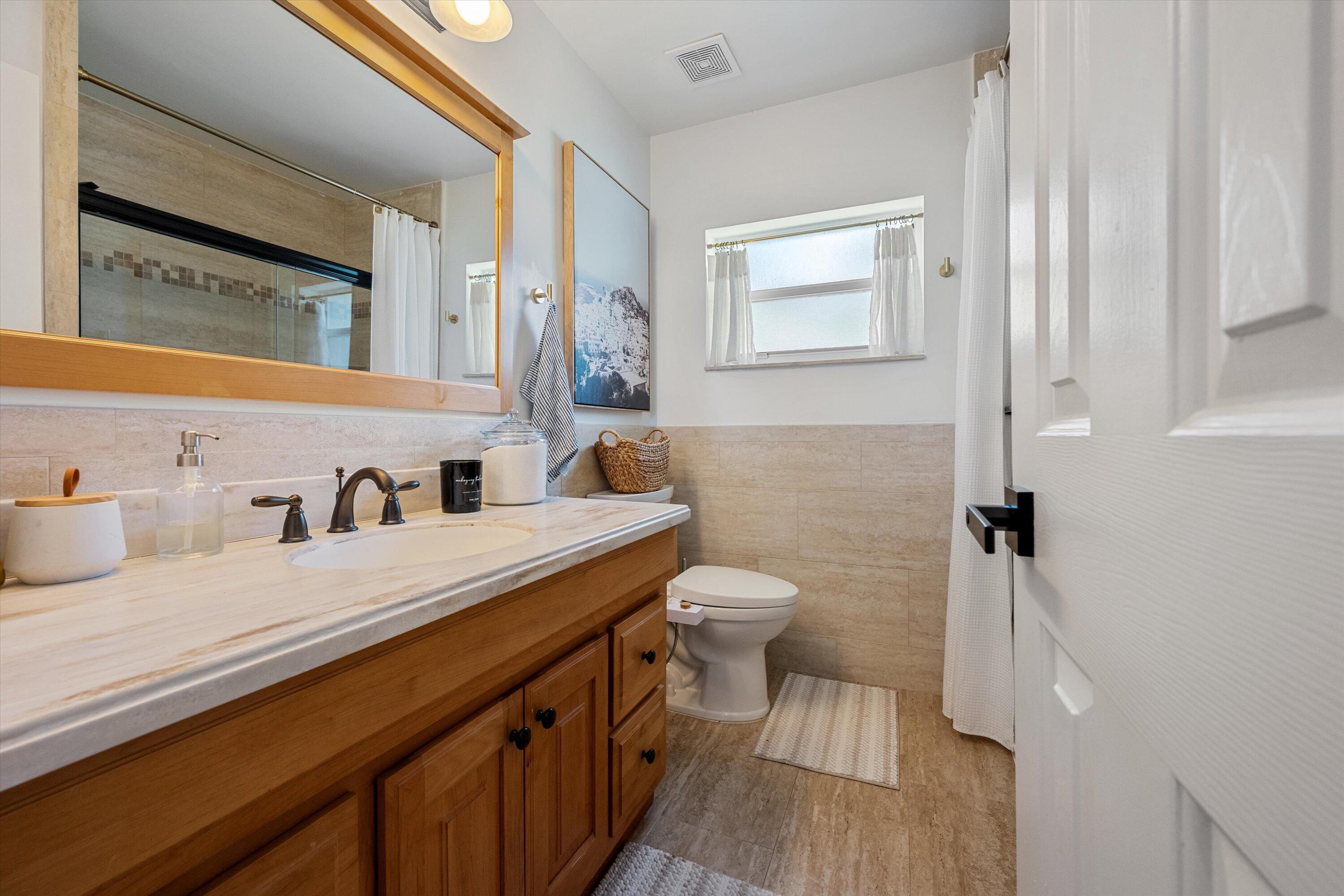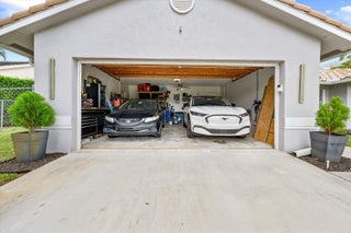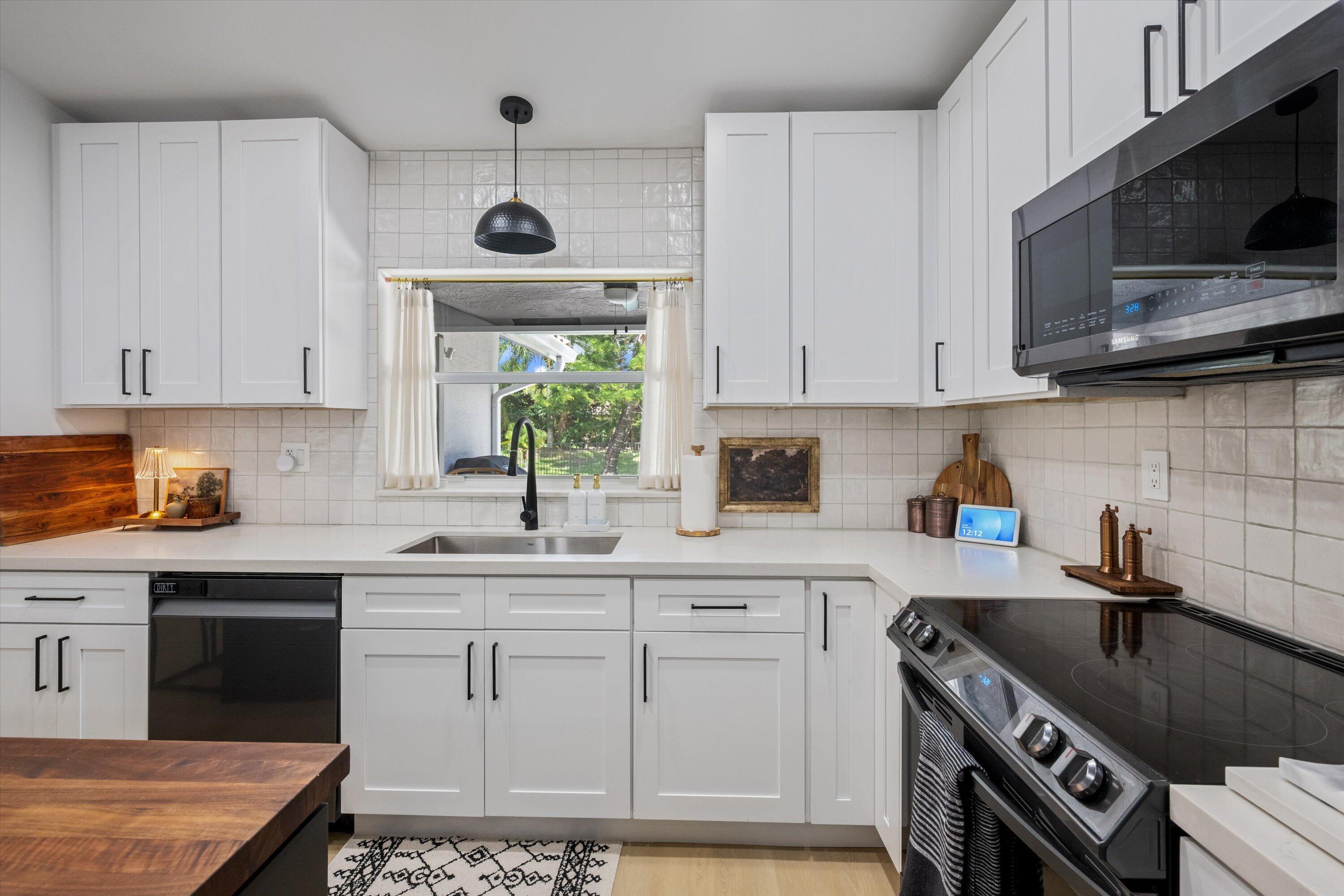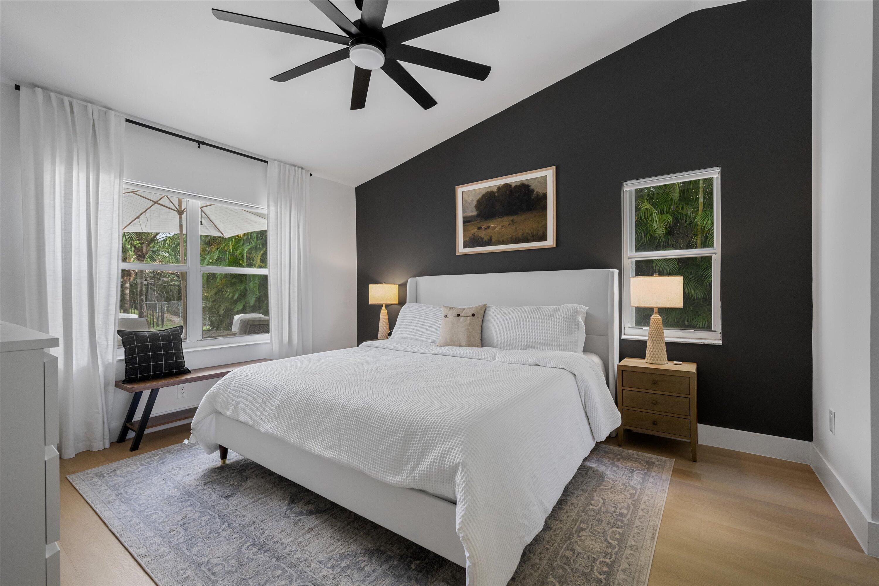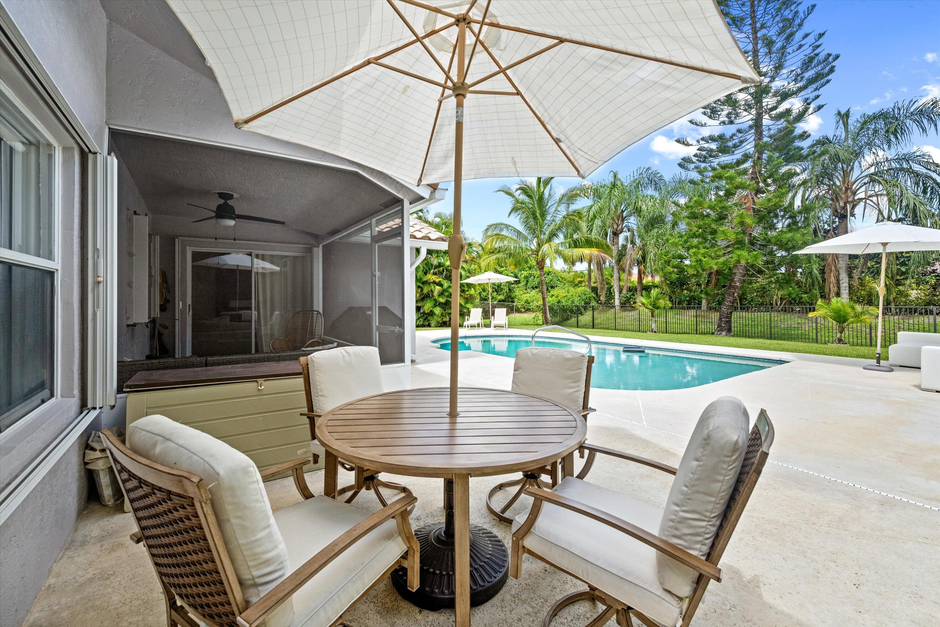 Step into your cozy, modern oasis! This lovingly renovated 4-bedroom, 2-bathroom home is filled with thoughtful details and a warm, organic vibe. Sunlight bounces off the sleek LVP flooring (2024) in the living areas, while soft rugs add a cozy touch. The primary bathroom, remodeled in 2025, feels like stepping into a spa with its stunning concrete-style tile and serene atmosphere. The secondary bathroom features a relaxing tub perfect for unwinding after a long day.The kitchen, remodeled in 2024, is a chef's dream with gleaming quartz countertops, a huge custom butcher block island, and all new Samsung appliances. Just down the hall, the recently renovated laundry/mudroom features handmade cabinets, a peaceful atmosphere, and a full-size washer and dryer, making chores a pleasure. The open-concept living area invites you to gather around the TV feature wall with its functional fireplace, perfect for cozy nights in. City water and a whole-house filtration/softener system ensure clean, fresh water throughout the home. Outside, your private paradise awaits. Dive into the oversized pool, lounge on the sectional or poolside chairs under patio umbrellas, or enjoy a meal at the poolside dining table. The backyard is fully fenced, with a large grassy area for your pet to run and play, and privacy is guaranteed thanks to tall Areca palms and county easement land behind the property. Relax on the screened-in front porch with a morning coffee, or unwind on the back lanai with its new ceiling fan, comfy couch, and chair. An outdoor propane grill makes al fresco dining a breeze, and a two-car garage completes this picture-perfect retreat. This home isn't just a place to stay, it's a sanctuary where modern design meets cozy, organic living. Imagine mornings by the pool, evenings by the fireplace, and everything in between in a home that's ready for you, your family, and even your furry friend. Conveniently located just minutes from WEF, Global Dressage, and all equestrian facilities, as well as PBI Airport, beaches, Worth Avenue, and downtown West Palm Beach. Perfect seasonal retreat offering both luxury and convenience in the heart of Wellington.