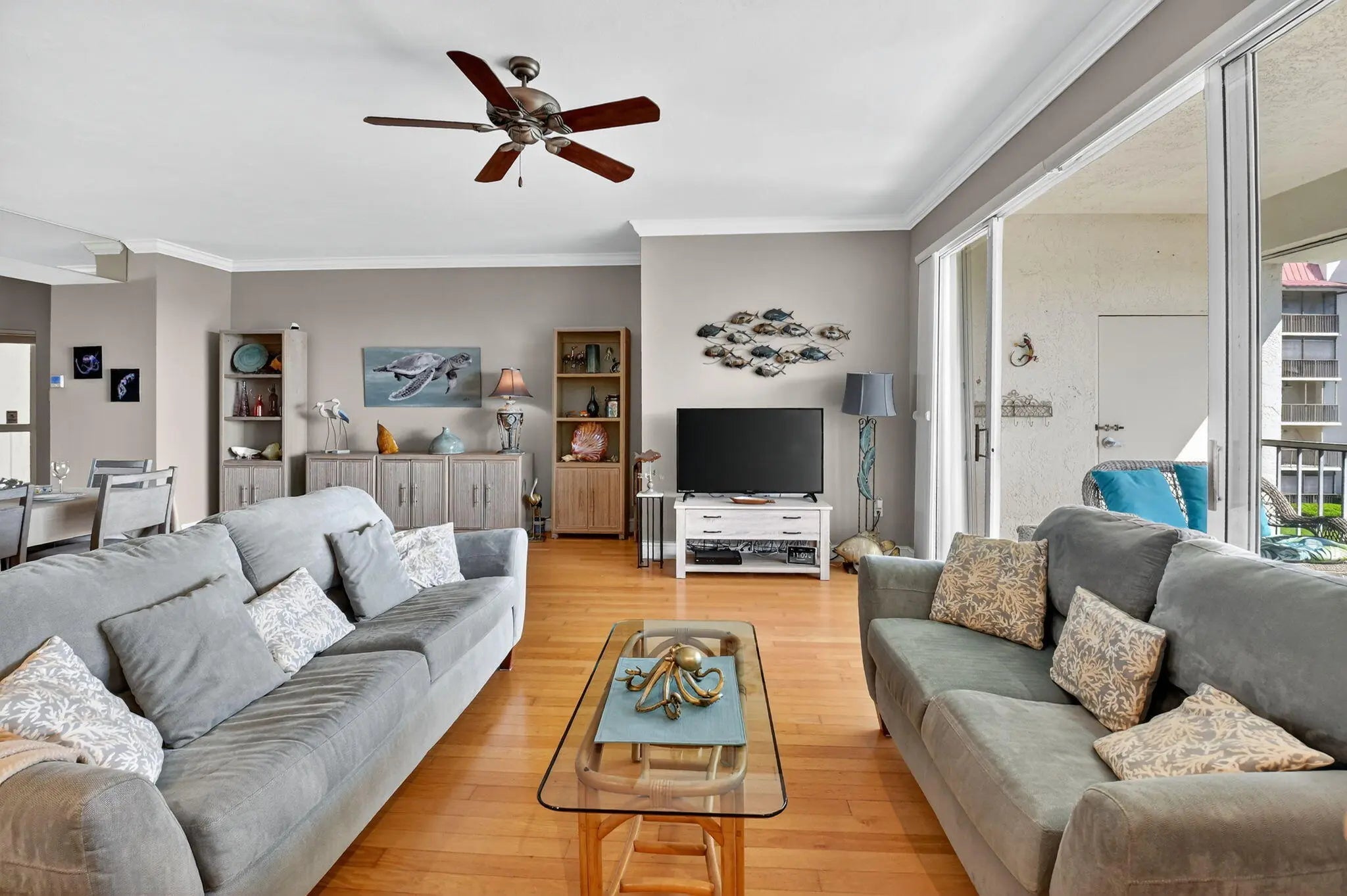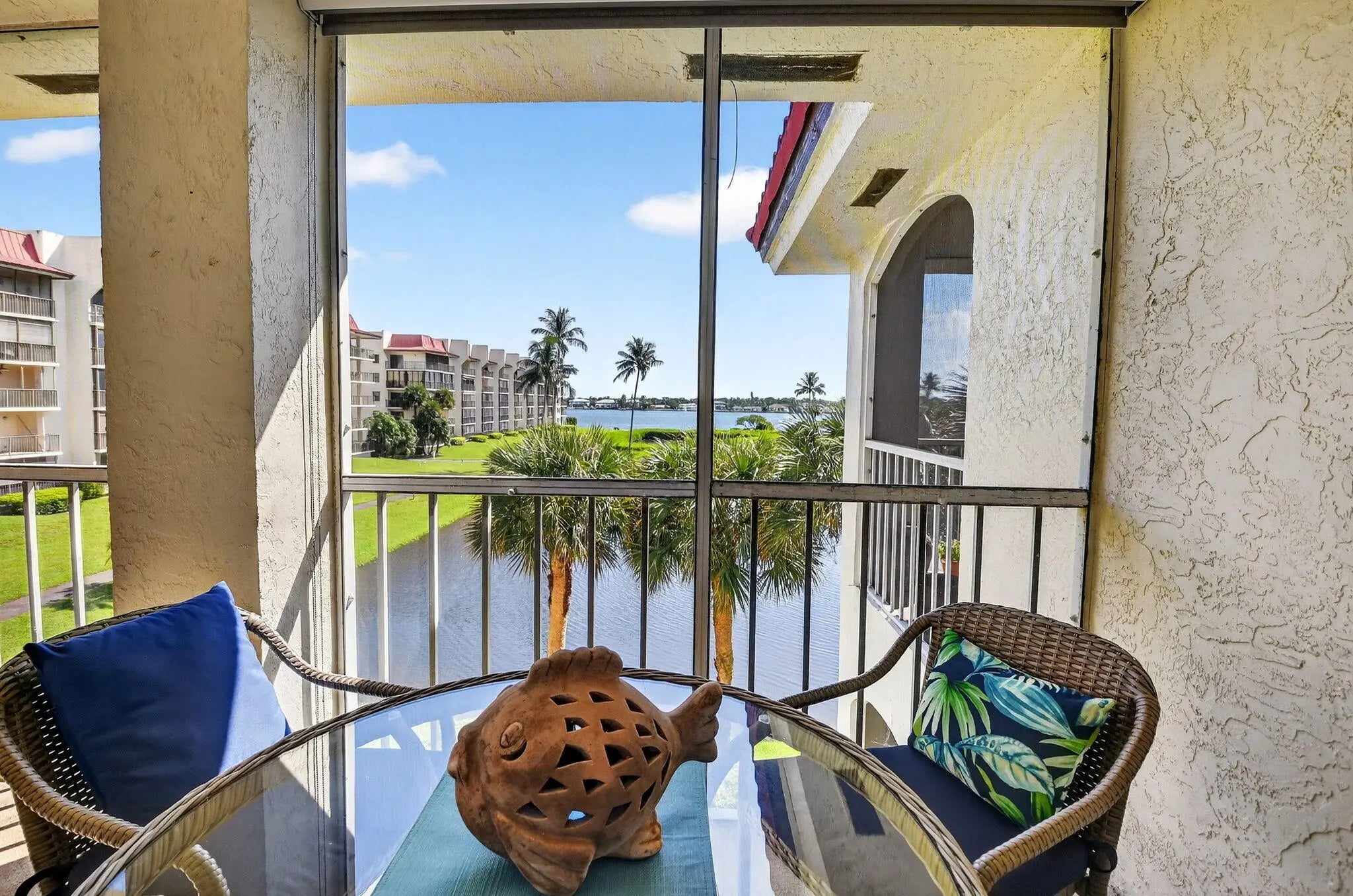 Escape to your dream vacation every day in this beautifully updated and turn key, 2 bed, 2 bath condo in the waterfront community of Half Moon Bay. With hardwood floors, granite countertops, and an open layout that flows to a spacious screened patio, you'll love relaxing with breezy Intracoastal views or entertaining in style. This gated community offers endless resort-style amenities--2 heated pools, 3 tennis courts, sauna, bocce, a scenic promenade, and a clubhouse filled with social events. Just minutes from the beach, fine dining, and shopping, it's the perfect blend of leisure and convenience. With completed milestone inspections, strong reserves, and no assessments, you can move right in and start enjoying the South Florida lifestyle you've always imagined! NO ELEVATOR
