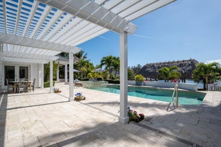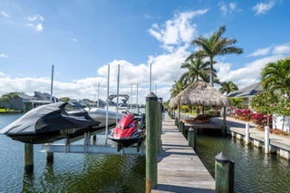This IS a boater's dream! Over 184 feet of PROTECTED DEEP-WATER frontage, a 98' Ipe wood dock, 24,000 LB lift, & quick access to the intracoastal! Recent renovations transformed this 5,500+ SF home into a modern, luxurious retreat that seamlessly blends indoor & outdoor living. Privacy is enhanced by lush landscaping & authentic Chickee Tiki huts, creating multiple areas for entertaining or enjoying the Florida lifestyle. Spacious updated floor plan with a gourmet kitchen, spacious room sizes & private en-suite bedrooms. All impact glass sliders & windows! Nothing has been missed here!