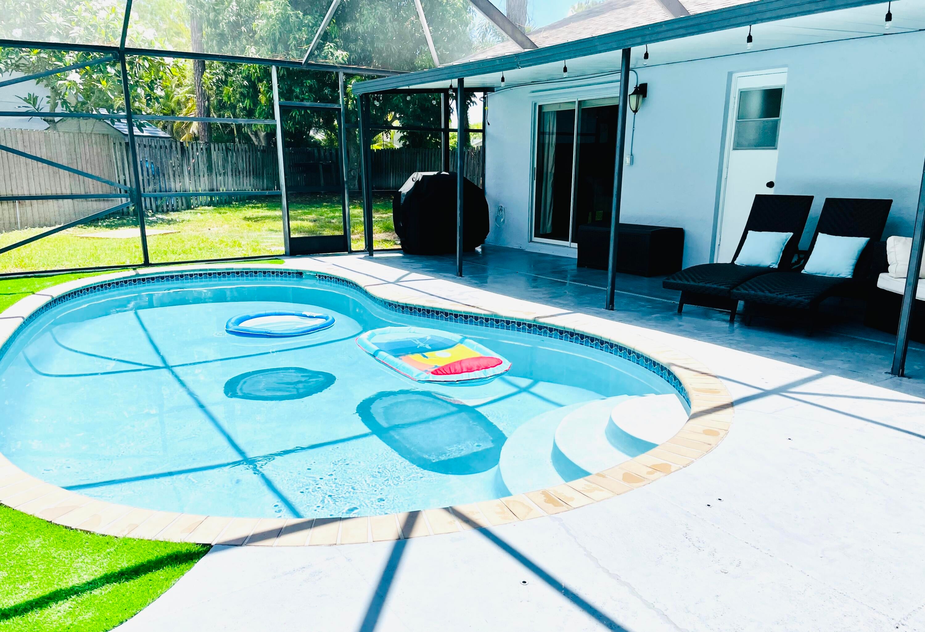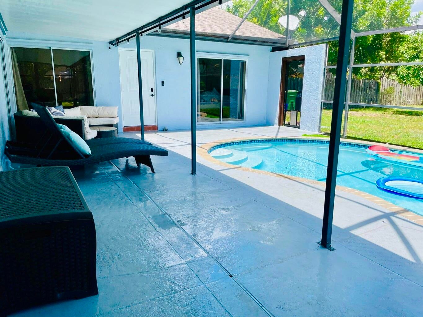 Available for seasonal & annual rental! No HOA approval! This beautifully furnished 3-bedroom, 2-bathroom villa is located minutes from the equestrian showgrounds and the Polo fields. Upon entering you're greeted by so much natural light and a view of screened-in pool & a private fenced backyard. This features an open floor plan with vaulted ceiling, beautiful flooring, and two master suites. This home has it all with an updated kitchen with granite countertops, stainless steel appliances, and shaker-style cabinets. With a one-car garage with ample parking, oversized backyard, and close proximity to A-rated schools, equestrian venues, shopping, and dining, this home is a rare Wellington find and it is the perfect place to call home for your seasonal stay