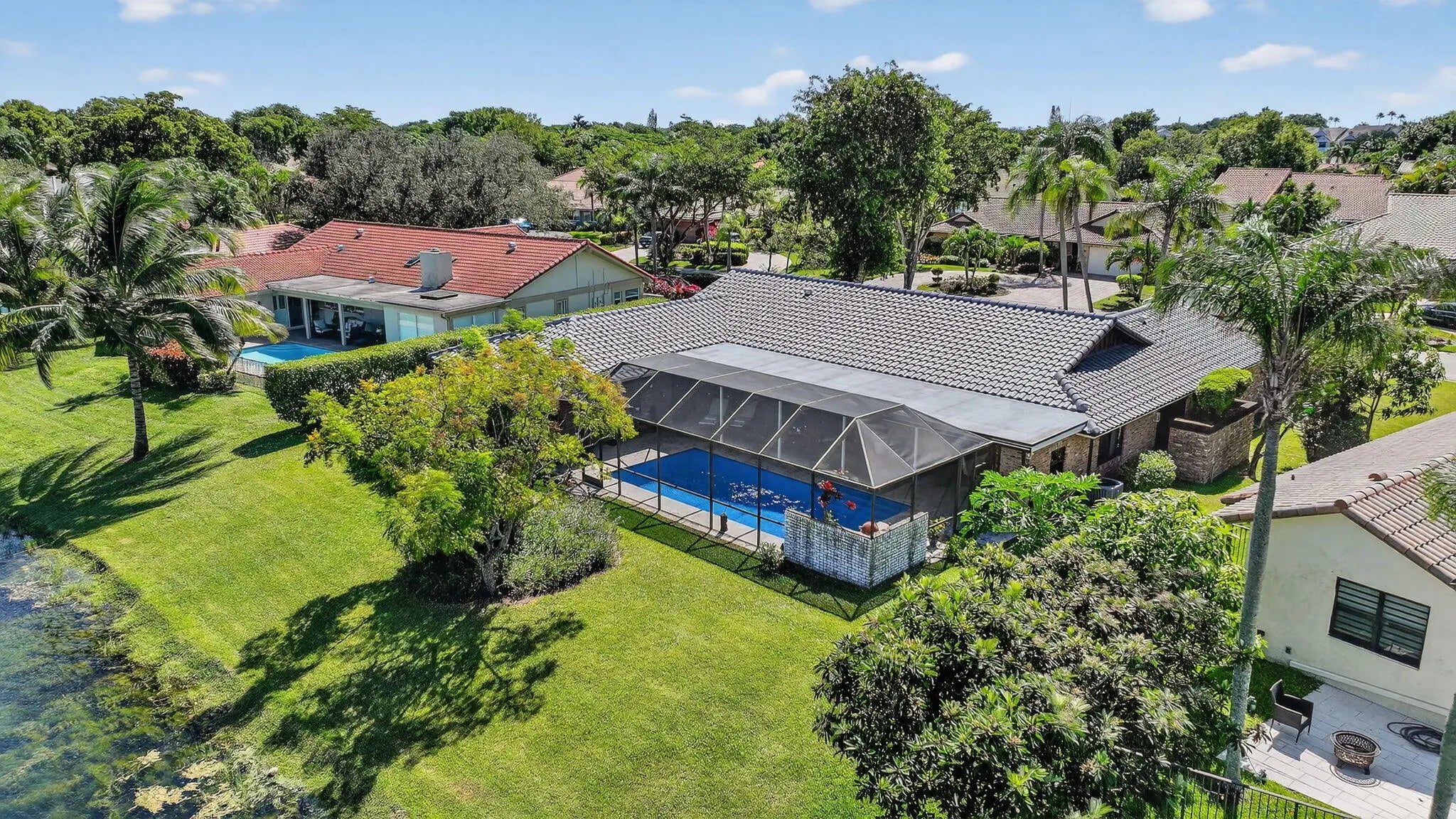 WOW!! This Gorgeous, Single Story, 4 Bed 2.5 Bath Pool Home Is Ready For It's New Owners!! Almost 3000 sq. feet under air! Upgrades galore! Brand New Roof 2025!! Flat Roof 2022! Impact Windows Throughout 2020! New Pool & Pool Deck & Pool Pump 2022! Remodeled Guest Bath & 1/2 Bath! A/C & Ducts Replaced in 2023 With Top Of The Line 2.5 Ton Daikin A/C Unit On The Bedroom Side!! 10 Year Warranty Remaining! Main Side Unit Replaced In 2019 With A 3 Ton Rheem. Never Run Out Of Hot Water With 2 Water Heaters! This Home Sits On A Very Large Lake Lot With North/South Exposure! Enjoy Your Outside Time Relaxing By The Pool On The Very Large Covered Patio With Summer Kitchen! Come Make This Amazing Home Yours!