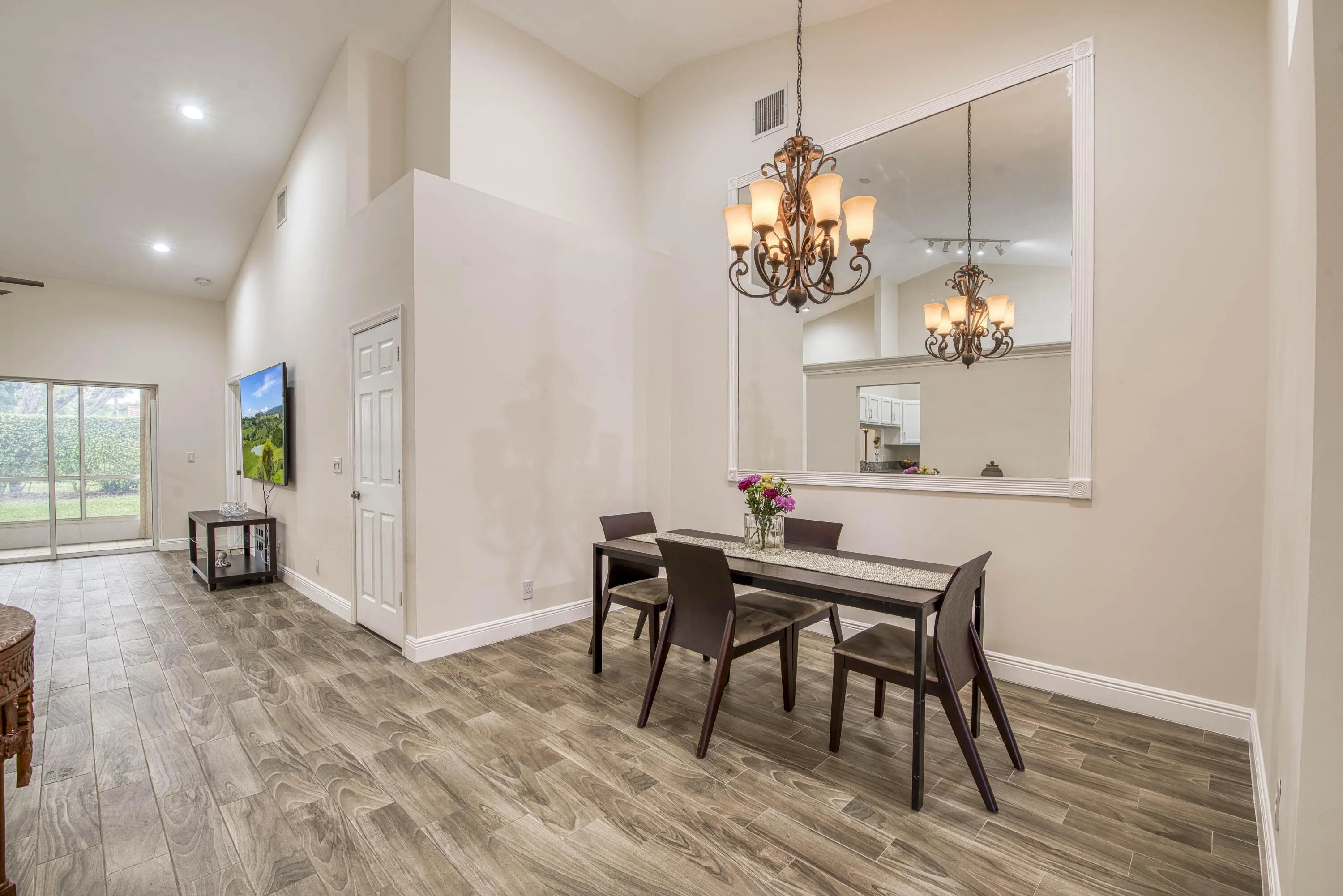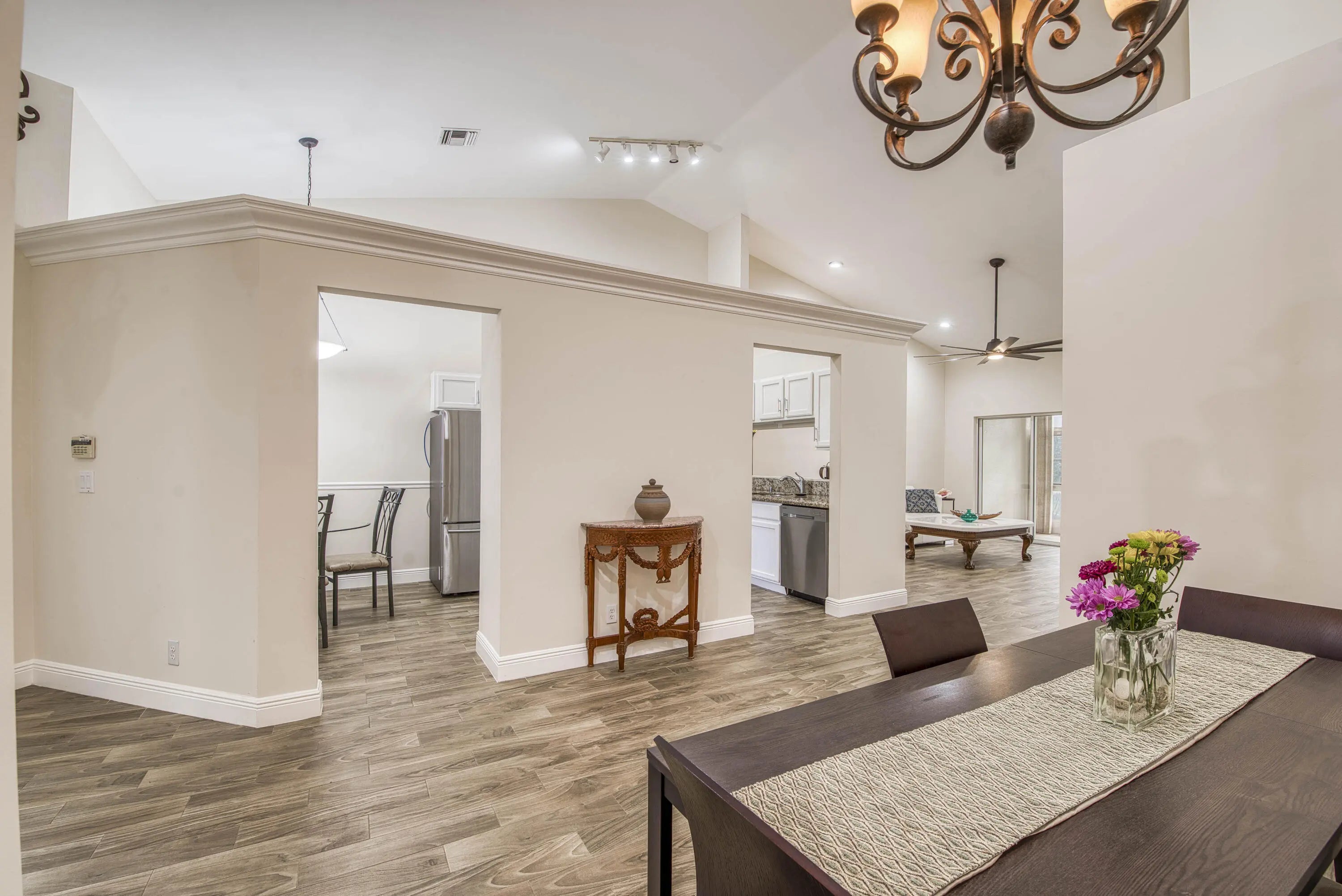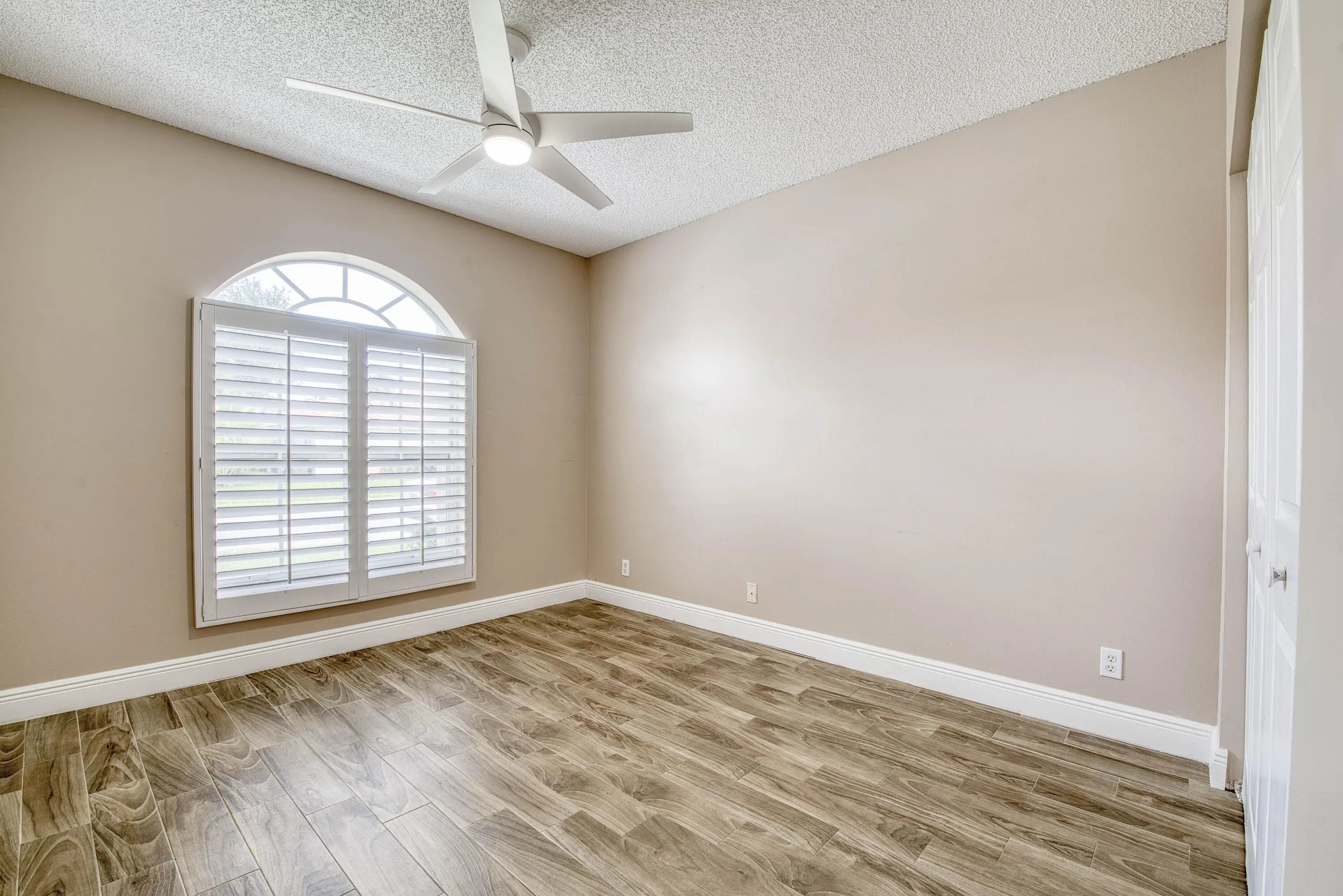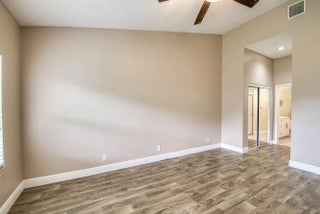 Welcome to this beautifully updated, move-in ready 2BR/2BA villa located in the serene and highly sought-after community of Isles of Aberdeen, the only gated enclave in Aberdeen East with no mandatory membership fees! Step inside to discover a bright and inviting interior featuring stylish wood-look tile flooring throughout the main living areas, modern ceiling fans, and an updated kitchen complete with granite countertops and stainless steel appliances. Plantation shutters on the front windows add a touch of elegance and privacy. Enjoy peace of mind with a newer A/C (2021) and roof (2017). The soaring vaulted ceilings enhance the spacious feel, and the enclosed lanai, under air, offers the perfect spot for relaxing or entertaining year-round. Select furniture and an impressive 85''