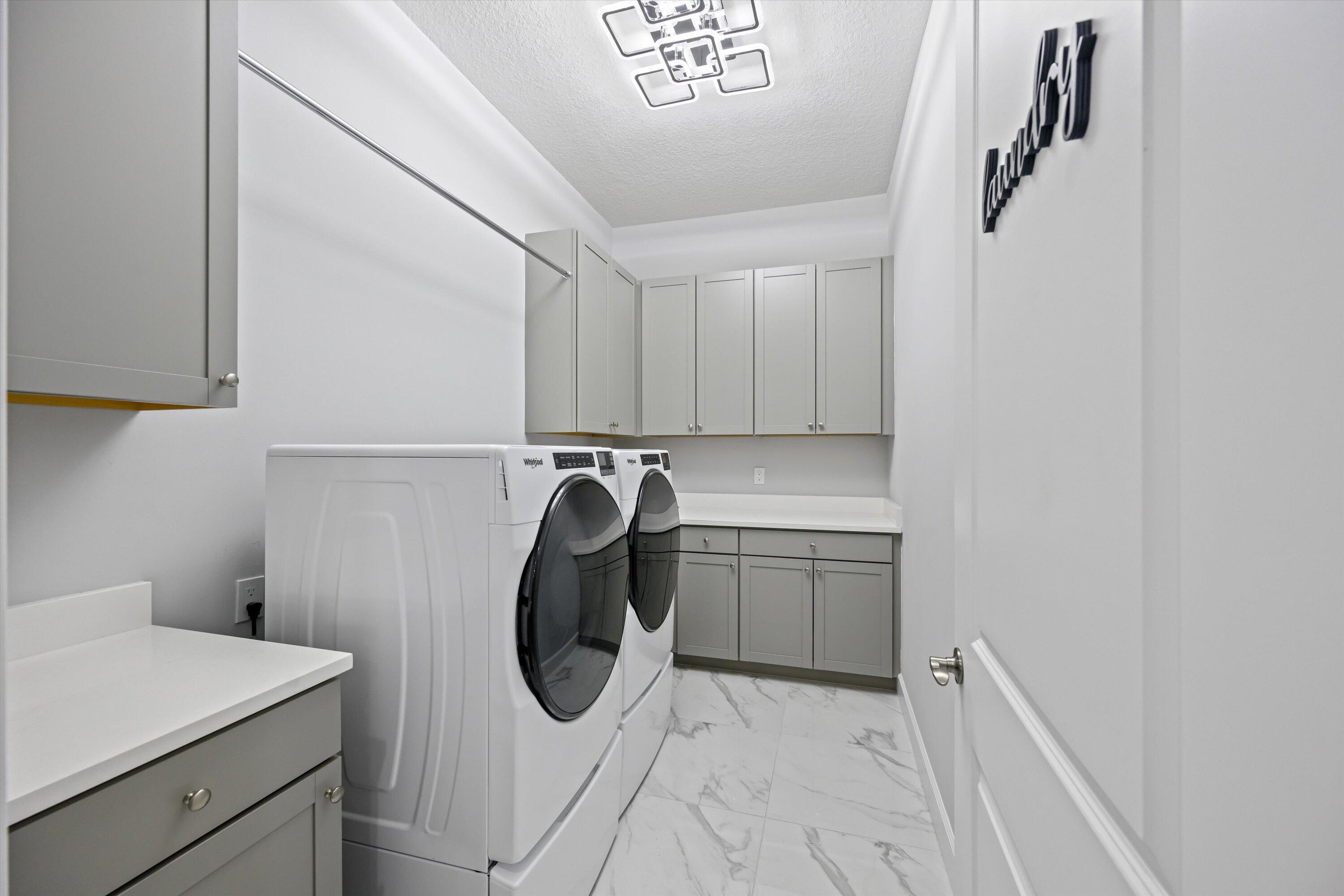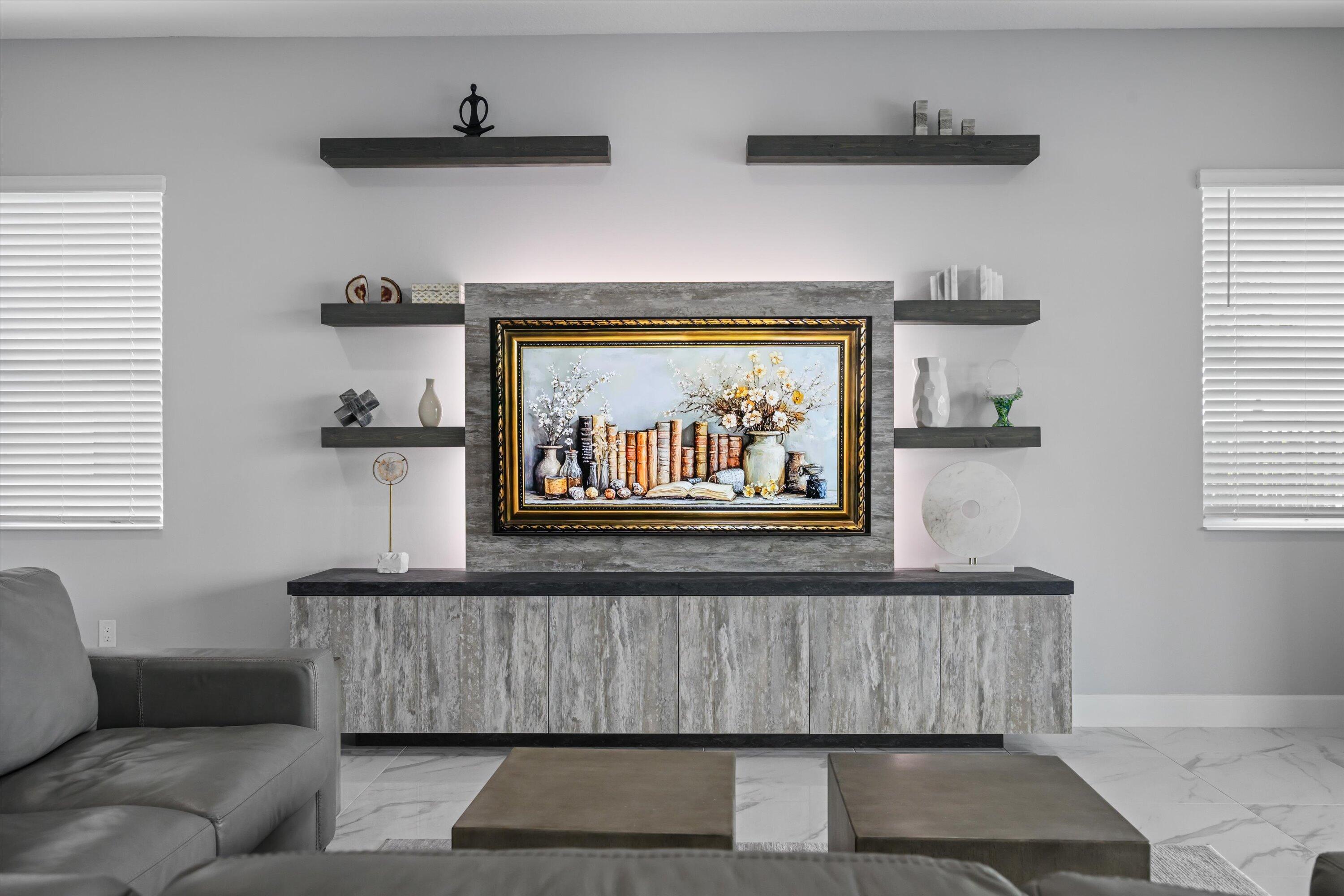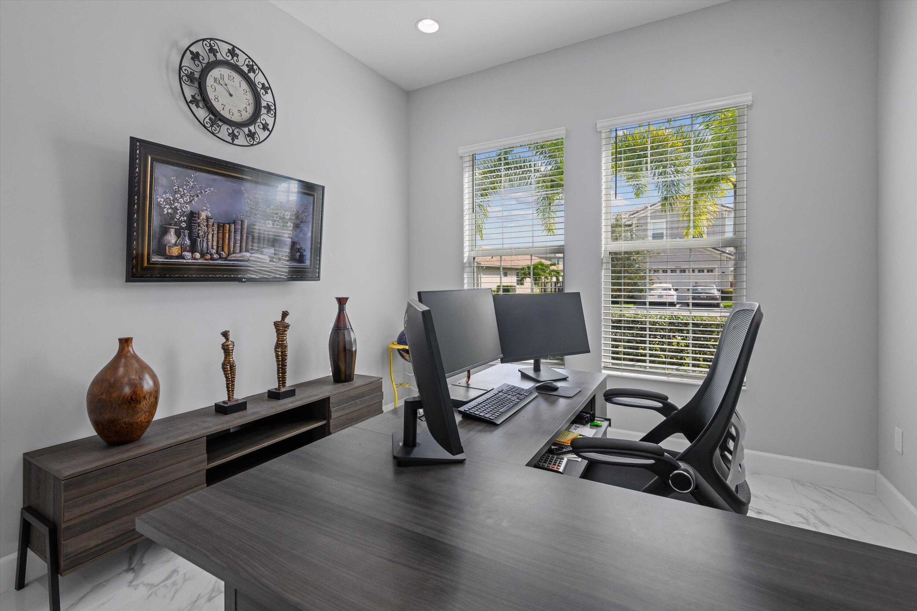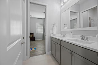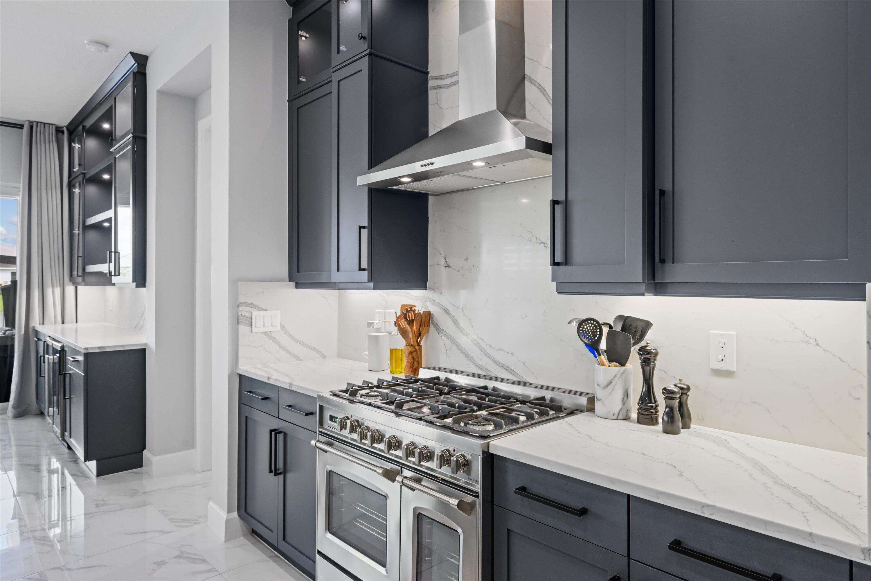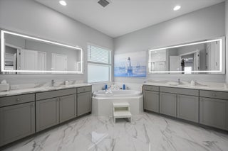 MAJOR PRICE REDUCTION! Experience luxury living in this rare, fully furnished Tanager model located in the highly sought-after Orchards of Westlake. This expansive 6-bedroom, 4.5-bath, 4-car garage waterfront residence offers over 5,300 total sq. ft. and shows like a designer model--move-in ready and complete with curated furnishings, artwork, and decor.The gourmet kitchen impresses with a massive island, quartz backsplash, stacked cabinetry, under-cabinet lighting, and premium stainless-steel appliances, including a gas range with hood and three ovens. Spacious living areas include a formal dining room with raindrop chandelier, two dedicated offices, a custom bar with double wine fridge, a coffee station, an upstairs loft, game room, and fitness room.The luxurious primary suite features a marble 4-poster canopy bed, custom closets, a sitting area with water views, an electric fireplace, and a spa-inspired bathroom with soaking tub and dual vanities. Enjoy Florida living at its finest in the private backyard oasis featuring a resort-style saltwater pool, covered spa with faux living wall, summer kitchen with grill, pizza oven, and refrigerator, putting green, and two gas fire pits perfect for entertaining. Additional features include whole-house impact windows and sliders, water filtration system, porcelain and plank tile flooring throughout, custom stair railing with feature wall, epoxy garage flooring, and elegant window treatments. Residents of Westlake enjoy access to the renowned Adventure Park with lagoon-style pool, splash pad, lap pool, ice cream shop, basketball courts, dog park, concert pavilion, and playgrounds. This exceptional home offers the ultimate combination of luxury, comfort, and resort-style living.