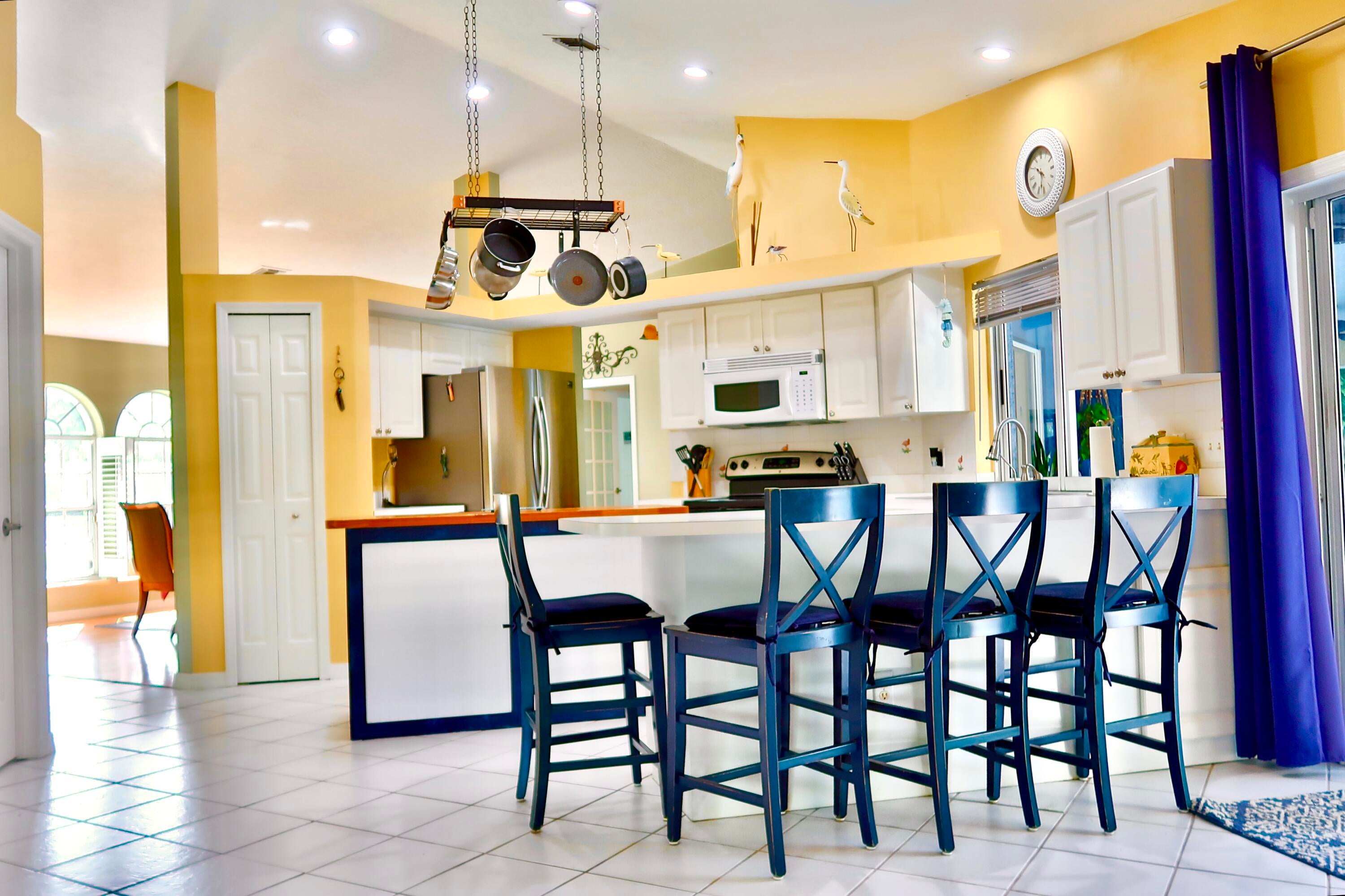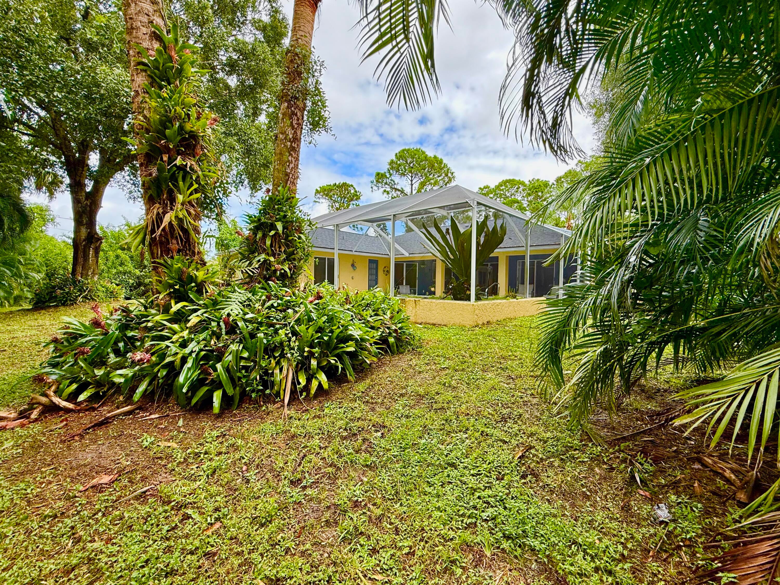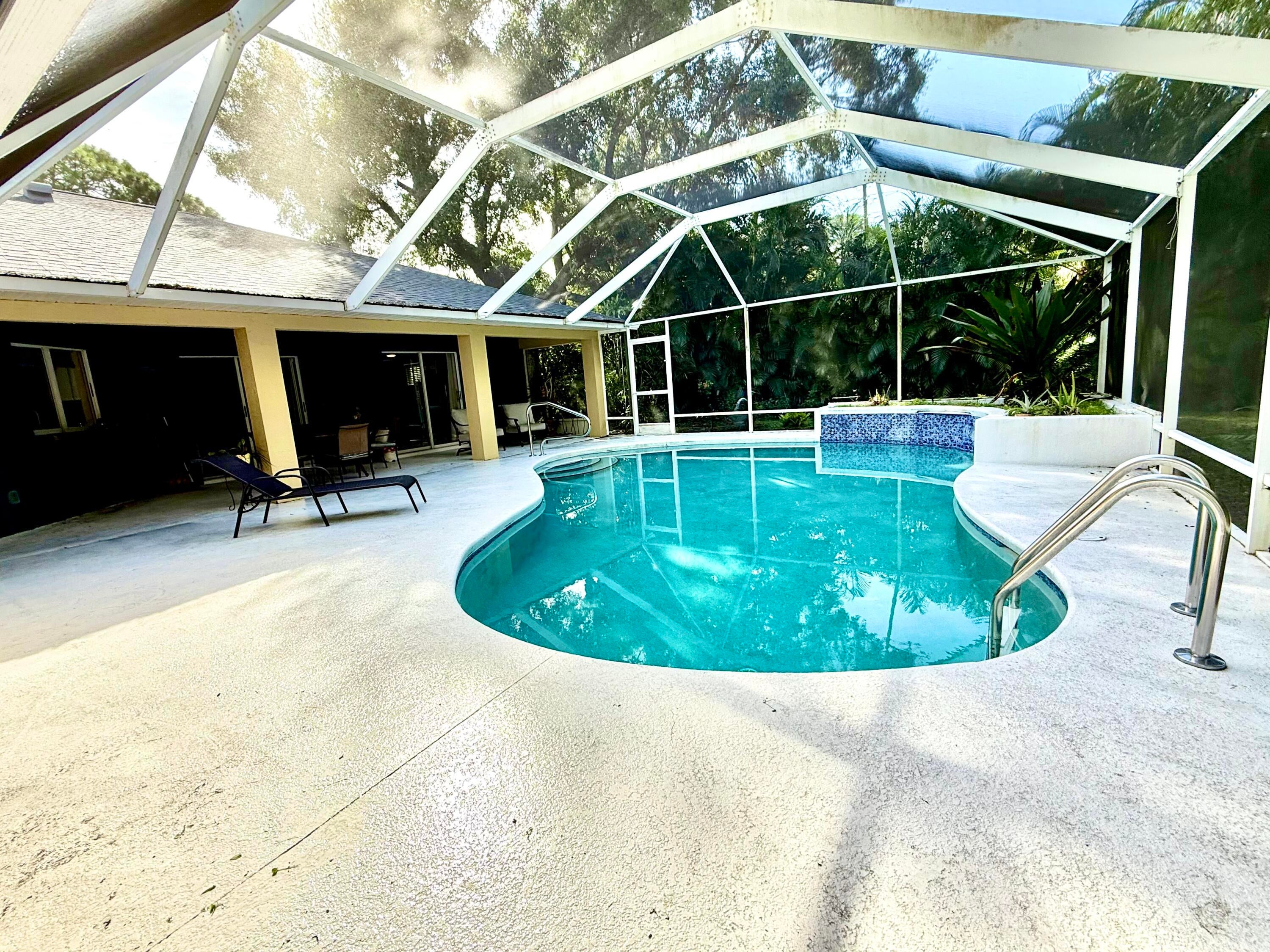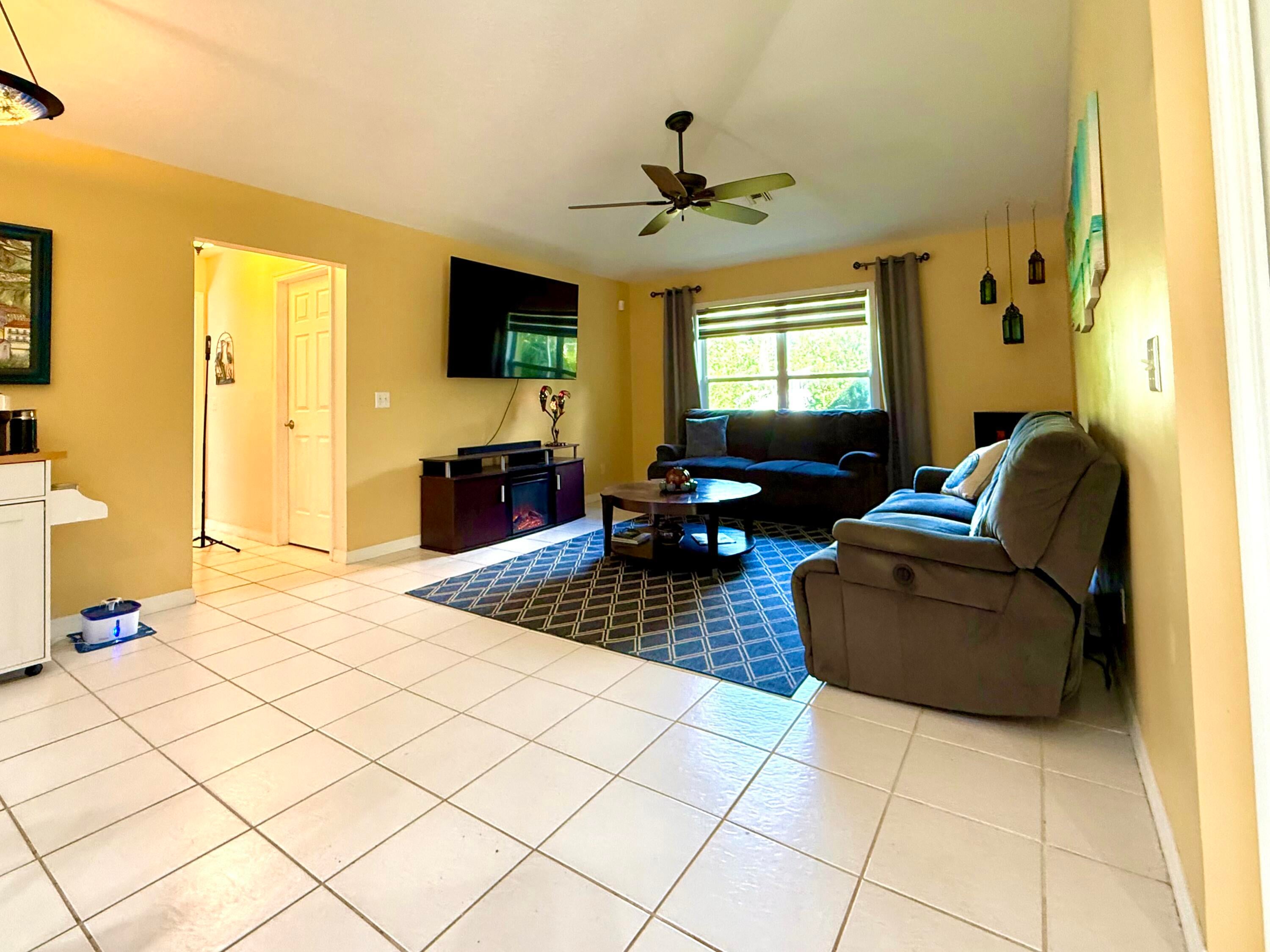 Discover this charming 3-bedroom, 2-bathroom pool home offering 1,900 square feet of comfortable living in a serene, tropical setting. The warm yellow stucco exterior features elegant arched windows, mature palm trees, and a spacious two-car garage, The backyard showstopper is a stunning screened-in pool with mosaic tile accents and an expansive deck--perfect for lounging and entertaining in your own resort-style retreat. Inside, enjoy bright, open living spaces with tile flooring throughout. This move-in-ready home perfectly blends indoor comfort with outdoor living