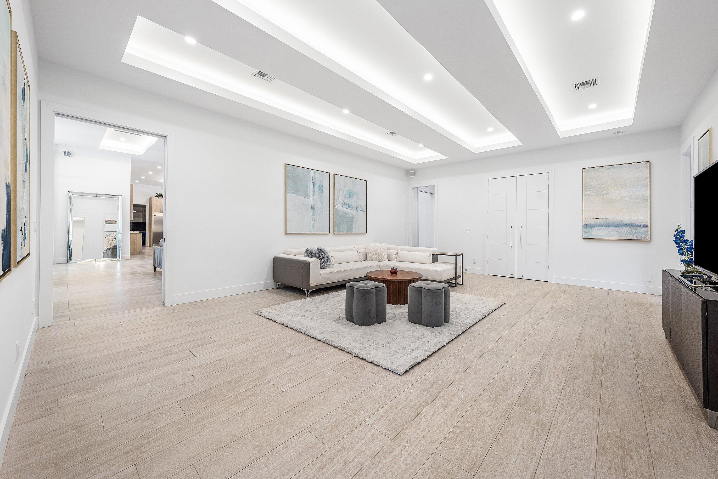Tucked behind the gates of Fieldbrook Estates, one of Boca Raton's most exclusive communities of just 54 custom homes, this modern masterpiece sits quietly on a private one-acre lot. Completely reimagined and rebuilt in 2019, this single story residence offers 8,130 square feet under air of exceptional design and craftsmanship.The home features 7 bedrooms, 6 full and 2 half baths, along with thoughtfully curated lifestyle spaces including an office, game room with a custom bar, private theater, and a gym with a sauna. One guest suite enjoys its own living area and private entrance -- ideal for extended family or long-term guests.The interiors are bright, open, and effortlessly sophisticated -- a seamless blend of clean lines, warm textures, and natural light. The chef's kitchen is bothfunctional and beautiful, anchored by an oversized island, double oversized Frigidaire refrigerator and freezer alongside an integrated wine and beverage refrigerator, and a spacious walk-in pantry. The kitchen flows naturally into expansive living and dining areas designed for gathering and entertaining. Outdoors, every day feels like a retreat. A resort-style pool takes center stage, framed by a vast lawn and an oversized screened patio with a summer kitchen perfect for alfresco dining. Additional highlights include an expansive laundry and mudroom that perfectly complement modern family living, a three-car garage, separate storage room, whole-house generator, and full hurricane protection. (This is Fieldbrook living at its finest where space, style, and serenity meet just minutes from Boca Raton's best schools, shopping, and dining.