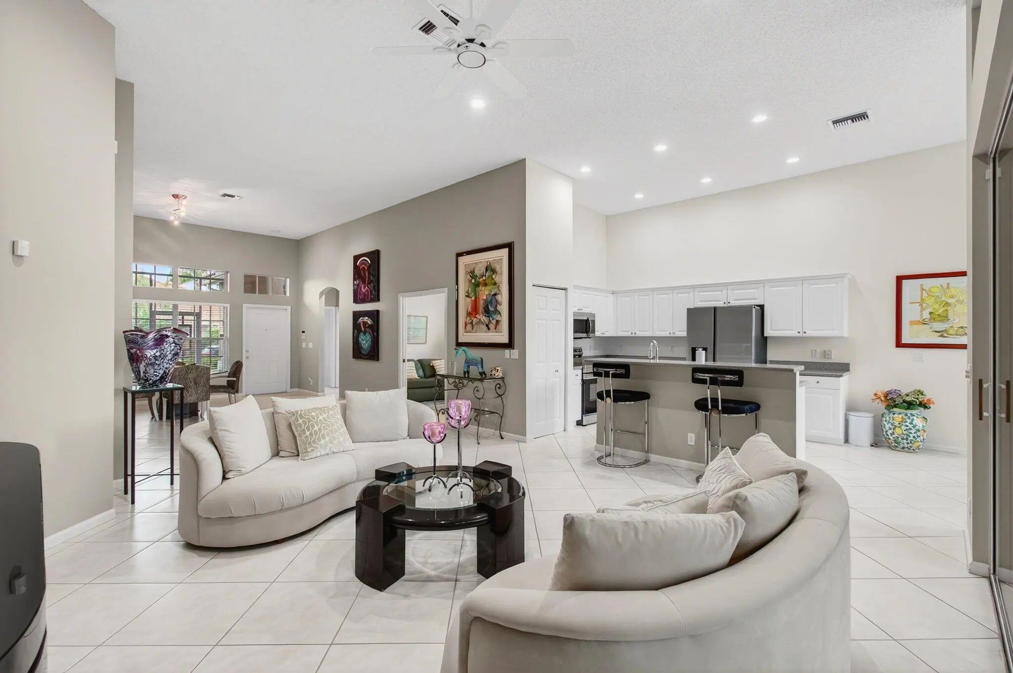 Embrace the tranquility as well as the full array of conveniences offered by this exceptionally maintained property, located at 6886 Swan Sea Lane, Boynton Beach, FL. This villa, offering stunning golf course views, is fully equipped to uphold comfort and security all year round.The integrity of this property is ensured by its well-preserved infrastructure, framed by an enduring roof installed in 2012. Fear not the height of Floridian summer: an efficient air conditioning system, installed in 2016, is on hand. This advanced unit is even equipped with UV lights designed to improve indoor air quality by reducing pollutants and providing refreshing airflow throughout the dwelling.