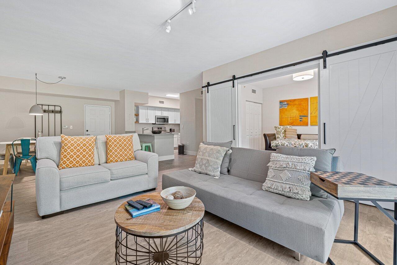 Available for season for $6,000 per month for minimum of 6 months. This renovated, 3-bedroom, ground floor apartment is located close to grocery stores, restaurants and other amenities. This recently updated and decorated unit has everything you need to make you feel ''Home Away from Home''. Open Kitchen area with new Stainless-Steel appliances and Silestone counter top, bright spacious dining/living area with a beautiful sliding barn door and a private screened patio where you can relax and enjoy our beautiful Florida weather. Bedrooms and bathrooms are also renovated and feature trendy tile, cabinets and fixtures. Garage with extra parking space in front of garage.