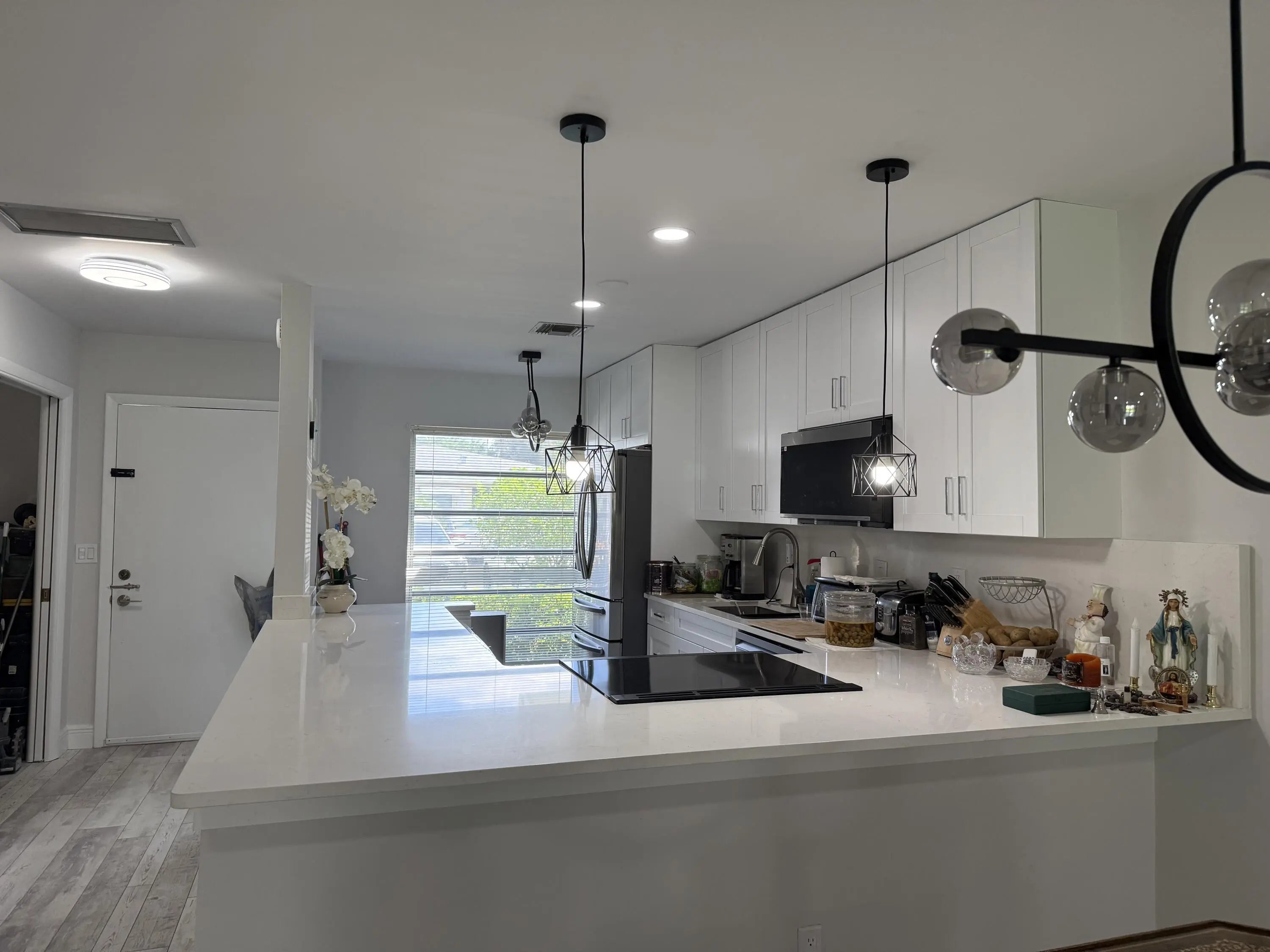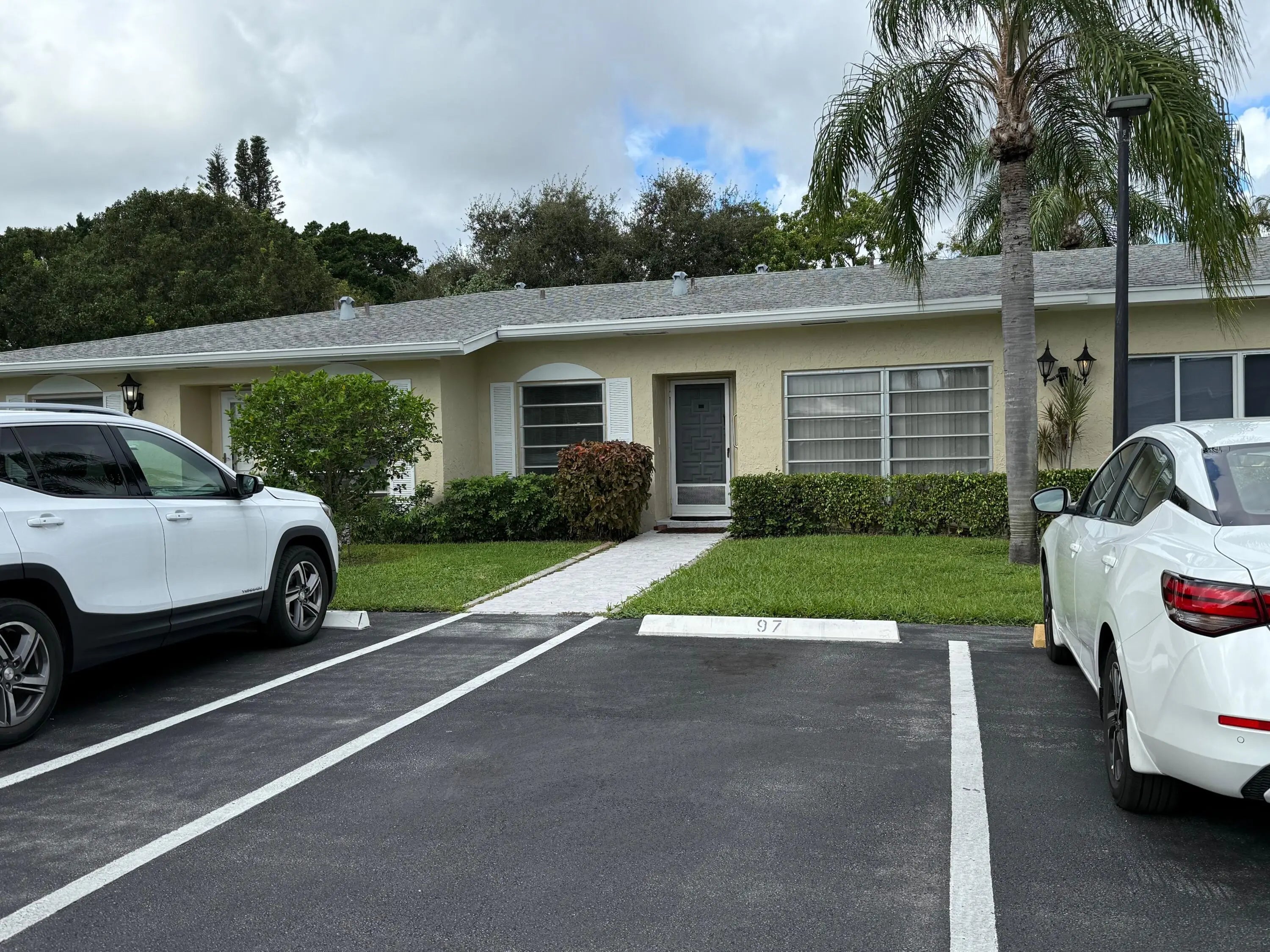 This newly renovated villa is a must see. New bathrooms, kitchen redone completely with 42 inch cabinets and stainless appliances, quartz countertops .New flooring as well as a new impact sliding door in the rear. Palm Greens new over 20,000 square foot club house to open soon. This is a must see unit. Roof was done by association in 2014.