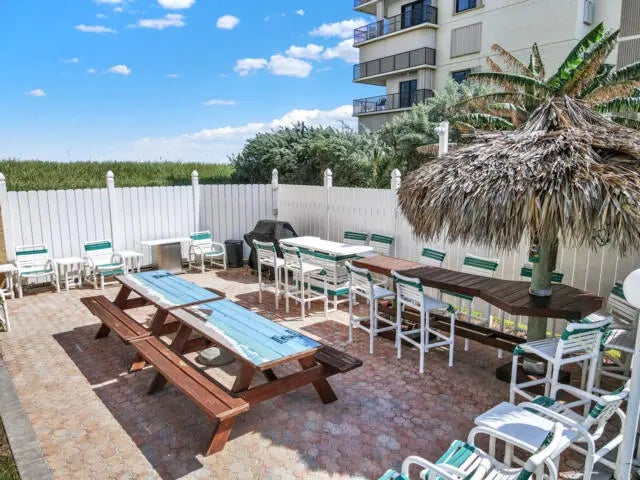 ATLANTIS III BY THE SEA ON HUTCHINSON ISLAND - ground level condo with direct access to backyard, making a perfect beach getaway. Features include: replaced A/C system (2024), replaced wash/dryer, tile throughout, textured ceilings, walk-in closet, frameless glass shower enclosure and screened patio. Community amenities include: gated, two pools, tennis, pickleball, shuffleboard, tiki hut beach access with fish cleaning station, car wash, tiki hut picnic and grilling area. Concrete work, MIRS and SIRS have all been completed. All sizes, taxes, descriptions, and HOA are approximate; there may be inaccuracies, independent verification is suggested.