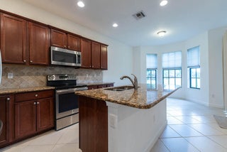 Fabulous waterfront 4 bed/3 ba townhouse with a 2 car garages. GATED COMMUNITY & built in 2015. 1 bedroom downstairs, great for guest or in-laws. And 3 bedrooms upstairs including the master bedroom. Great location, close to the community pool. Nice corner lot with a fabulous lakeview and beautiful upgrades. Stainless steel appliances, cherry wood cabinets, granite countertops and full tumbled marble backsplash. Tiles throughout the living area and neutral color carpet in bedrooms. Large laundry room. Enjoy sitting out on your covered patio overlooking the beautiful water view! Electronic gated community and has its very own community pool * Close to Wellingtons ''A'' rated schools, Trader Joe's, polo, etc.. NO PETS ALLOWED