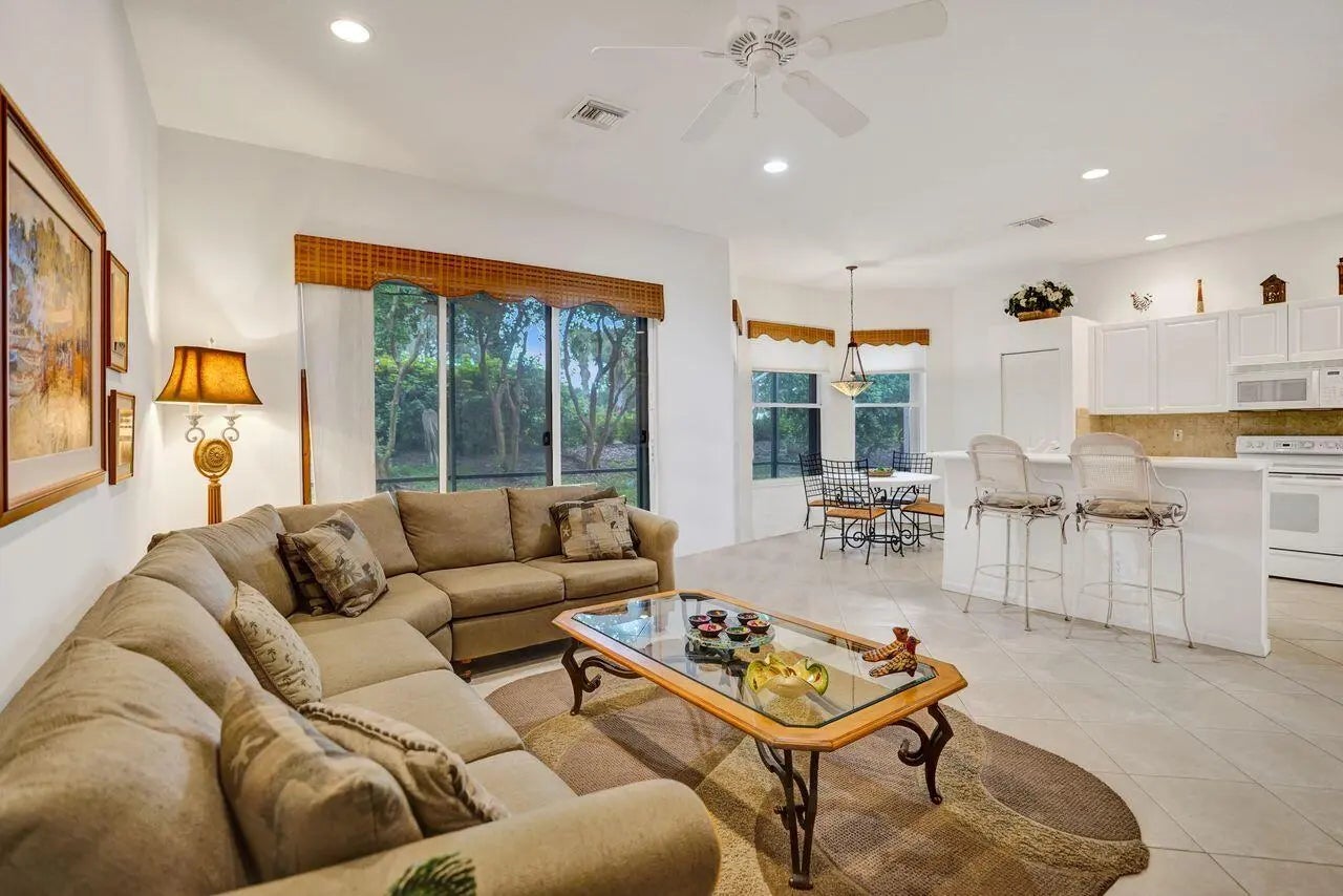 Located in the sought-after 55+ community of Valencia Isles, this 3-bedroom, 2-bath single-family home by GL Homes offers relaxed South Florida living. The open layout features spacious living and dining areas, high ceilings, and a screened patio overlooking lush greenery. Lovingly maintained, it's ready for your updates and personal touch. The split-bedroom plan offers privacy, and the primary suite includes dual sinks, soaking tub, and separate shower. Residents enjoy a renovated clubhouse, fitness and wellness center, pools, tennis and pickleball, on-site cafe, and year-round activities--all minutes from shops, dining, golf, and beaches.