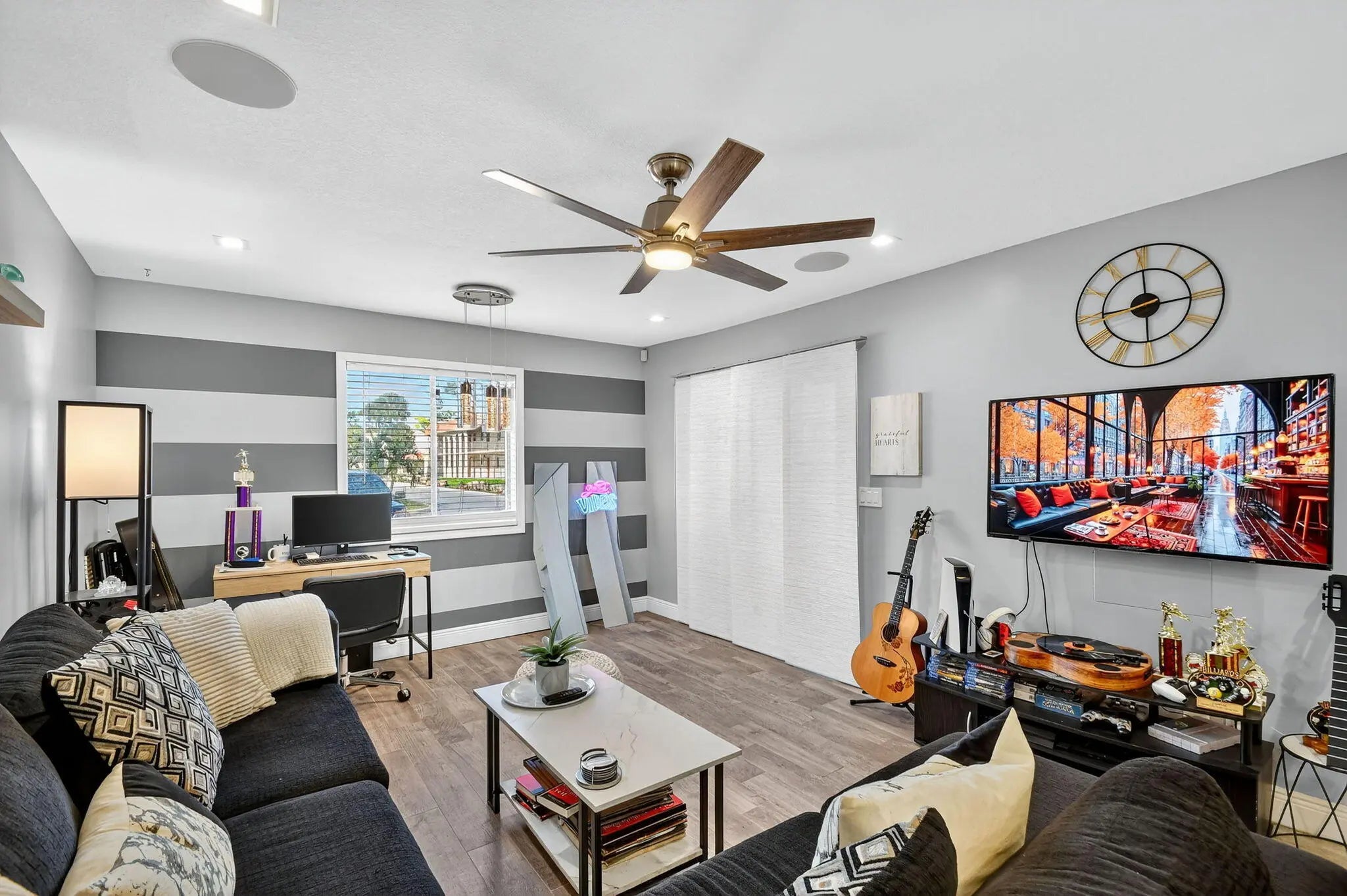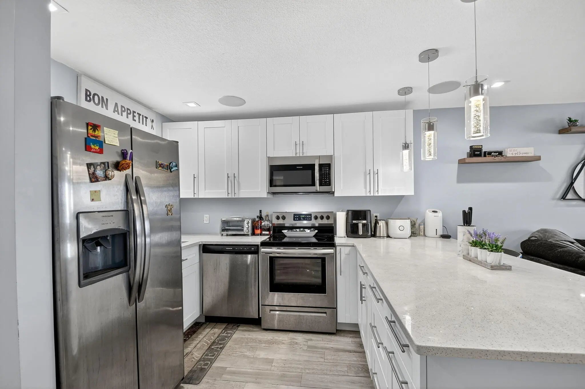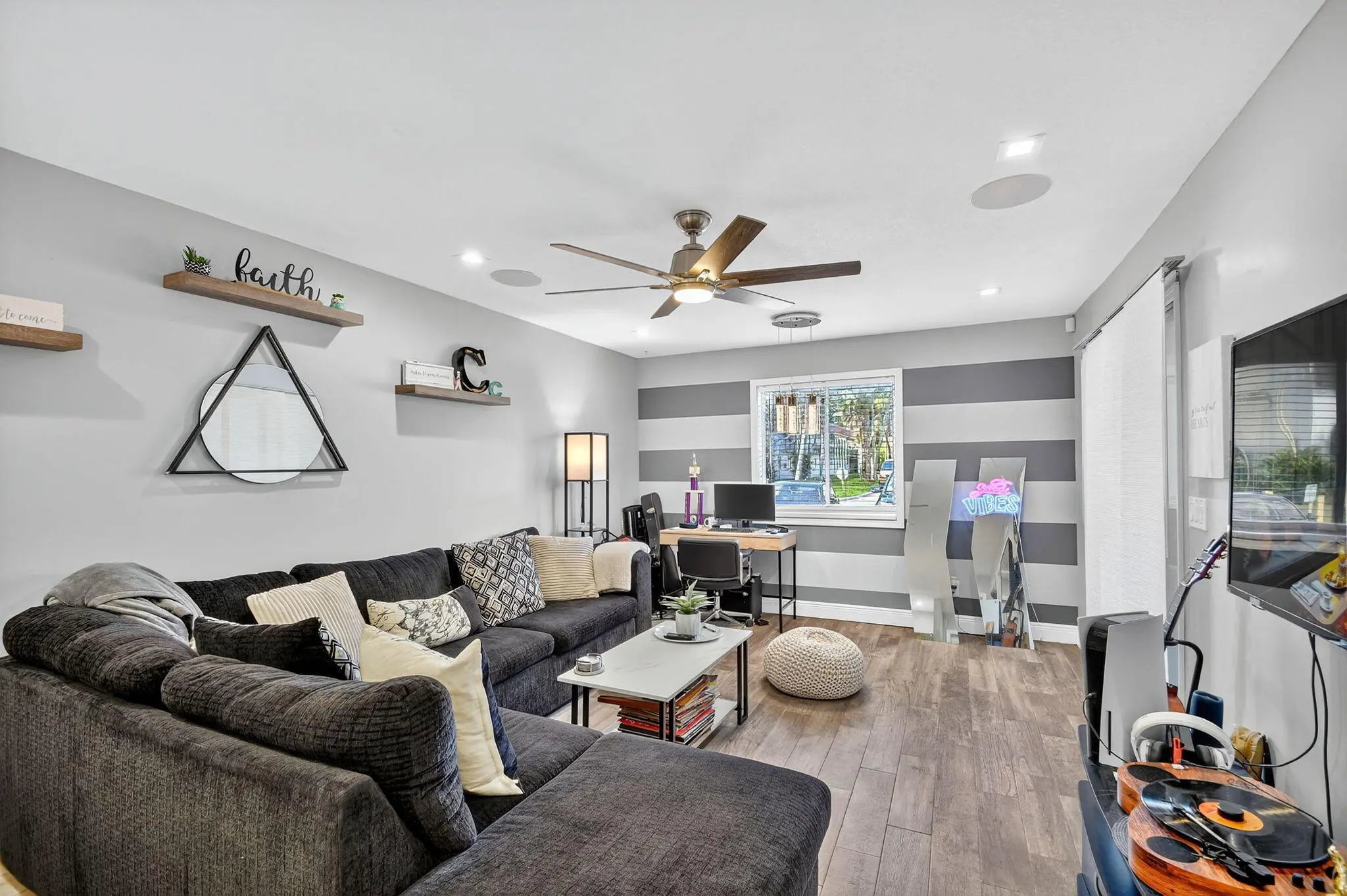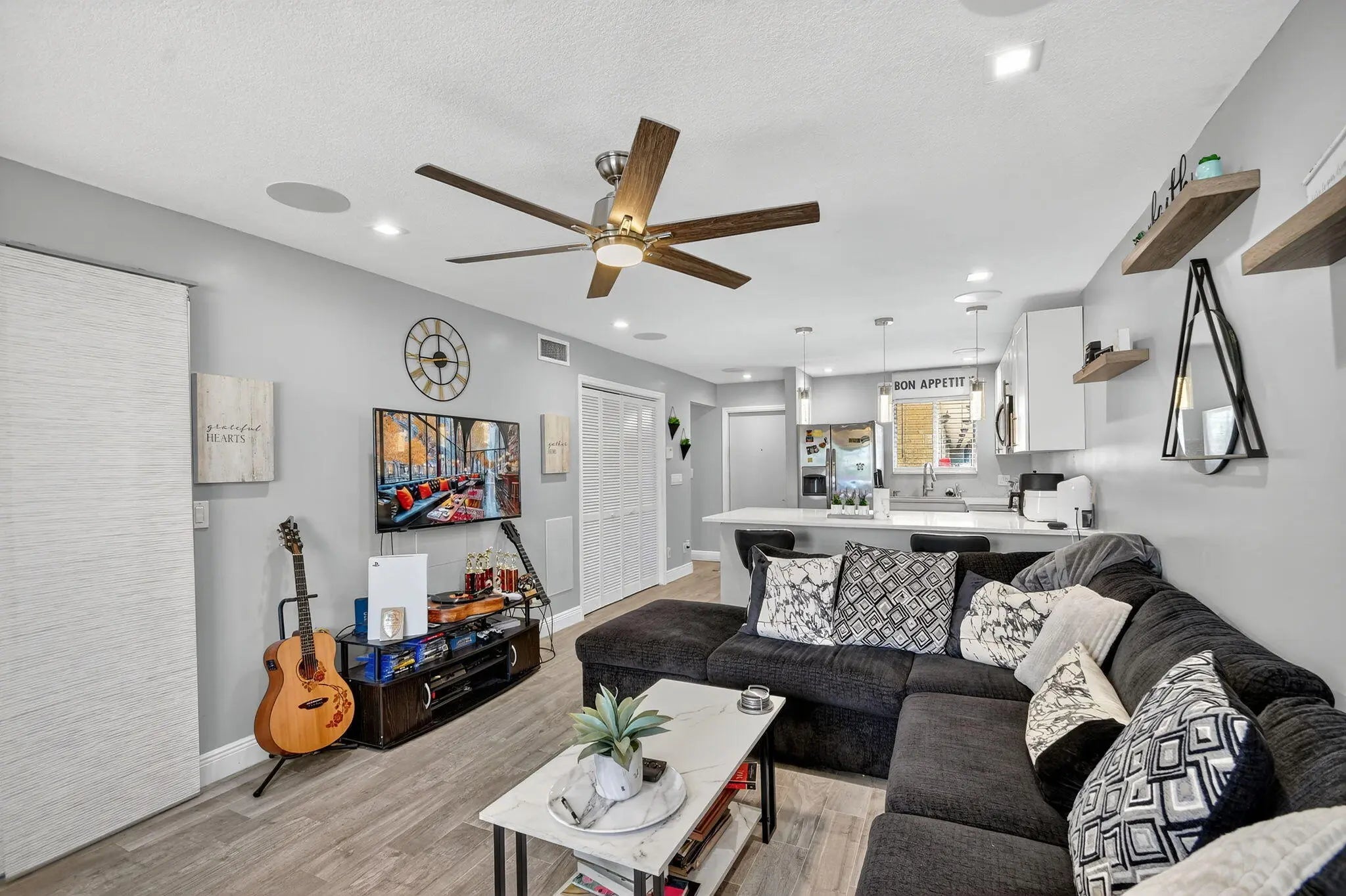 This bright and spacious 1-bedroom, 1-bath corner unit offers modern upgrades throughout and the convenience of first-floor living. The home features elegant wood-look tile flooring, LED high-hat lighting, and an updated kitchen and bathroom with contemporary finishes. The tankless water heater provides efficiency and peace of mind. Enjoy plenty of natural light from additional corner windows and a comfortable layout perfect for everyday living. Conveniently located near shopping, dining, and major highways, this move-in-ready condo is the perfect place to call home!