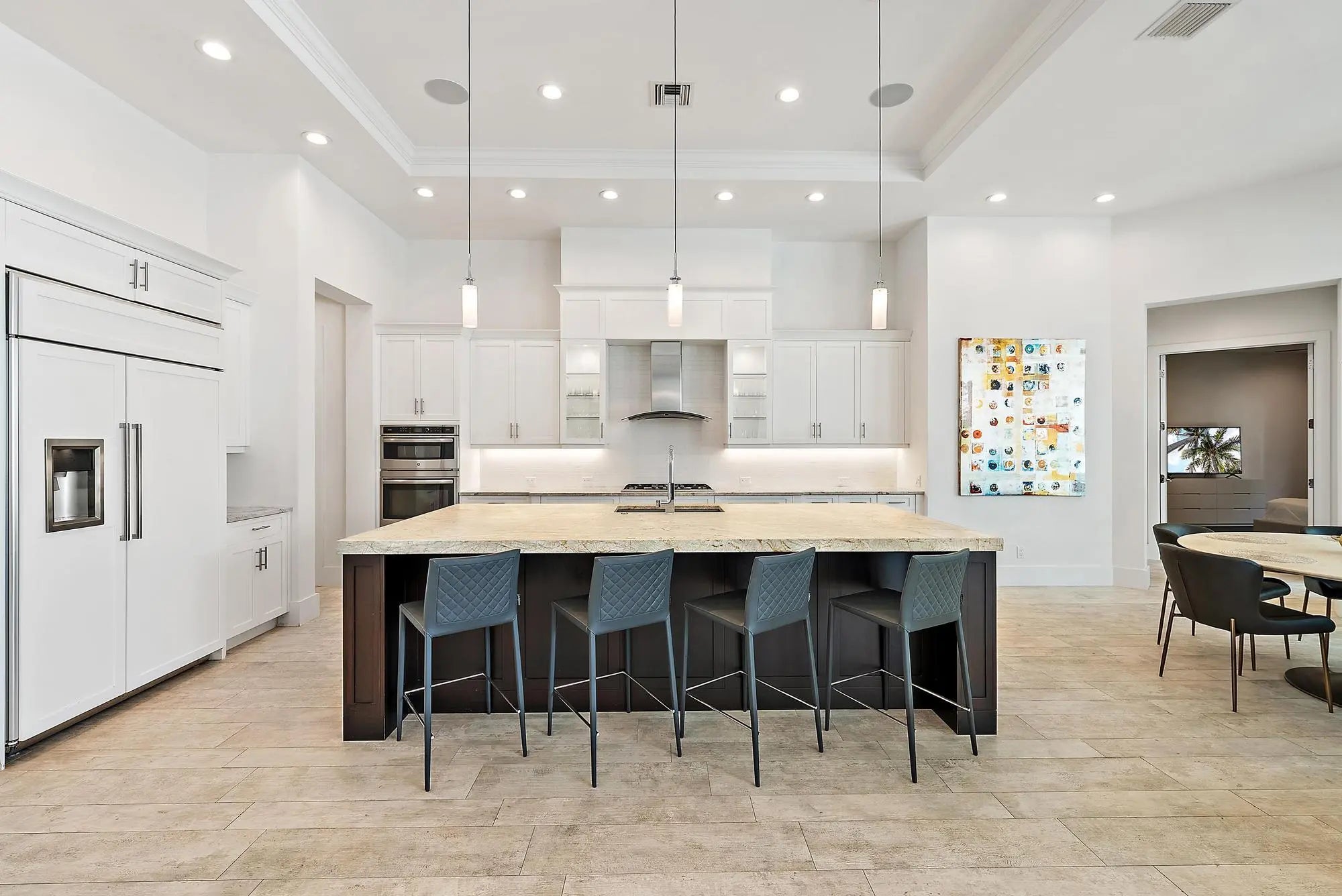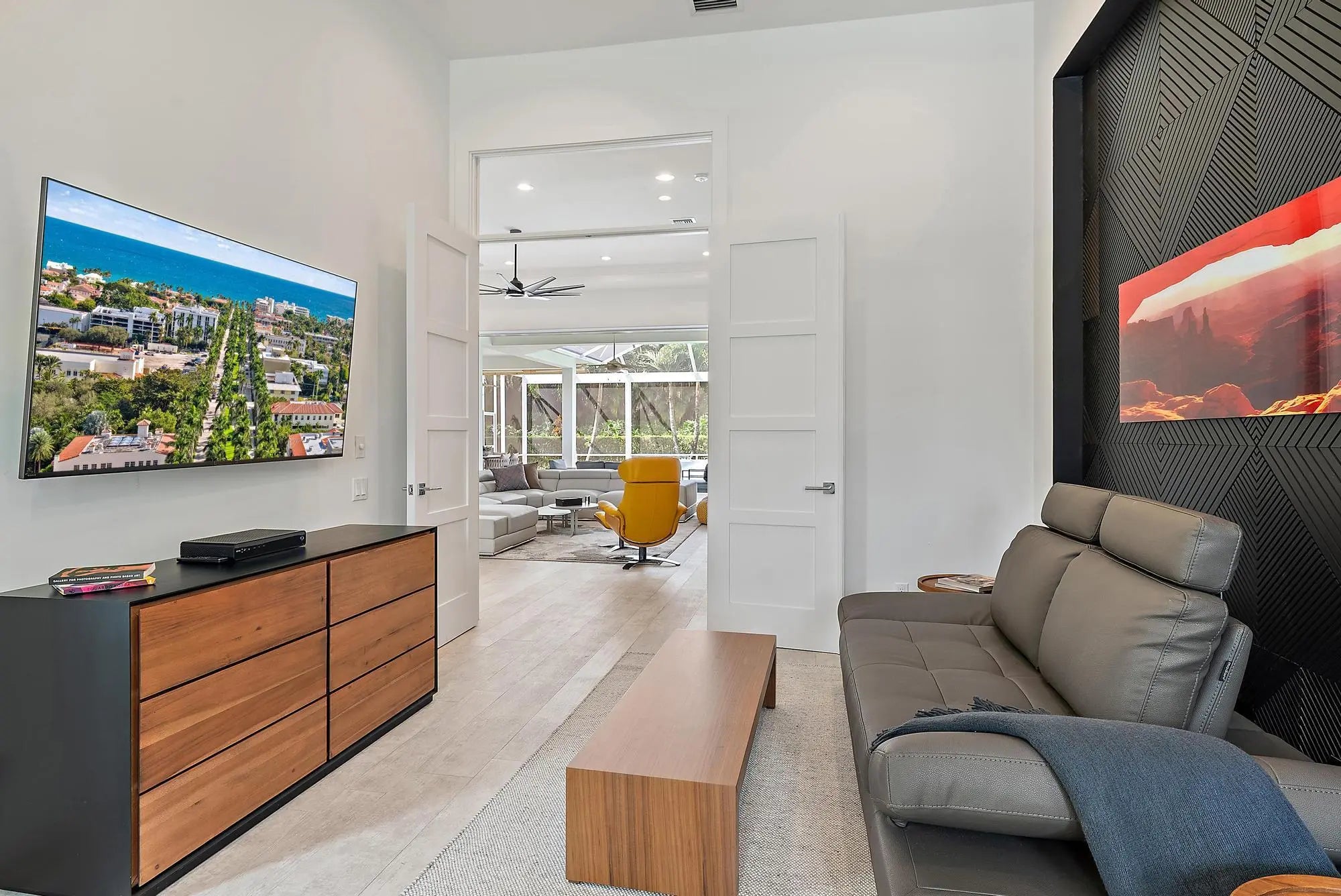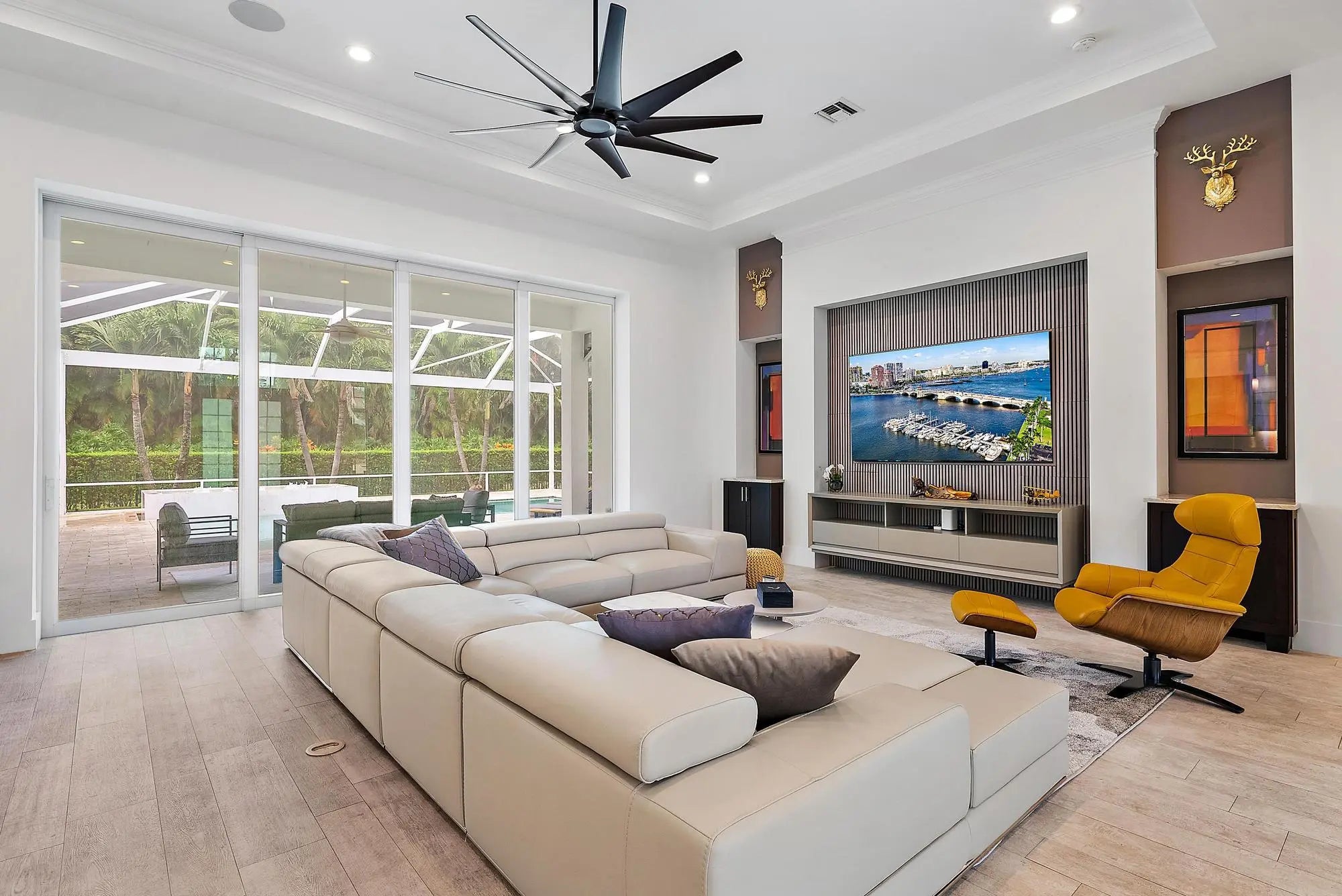 Built in 2015 and offering one of the newest constructions in Ibis, this custom Puzzitiello Estate blends modern sophistication with effortless Florida living. Completely elevated by Nevaeh Interiors, this showplace has been enhanced with new upscale finishes, flooring, and features. Also available completely furnished, all the modern and comfortable designer pieces can convey to the new owner--a brilliant mix of Modani Italian Modern and Arhaus Classic Flare Furniture. Designed around a dramatic great-room floor plan, this 4BR/4.5BA plus large office/den home delivers privacy, style, and a true turnkey experience within the award-winning Club at Ibis.