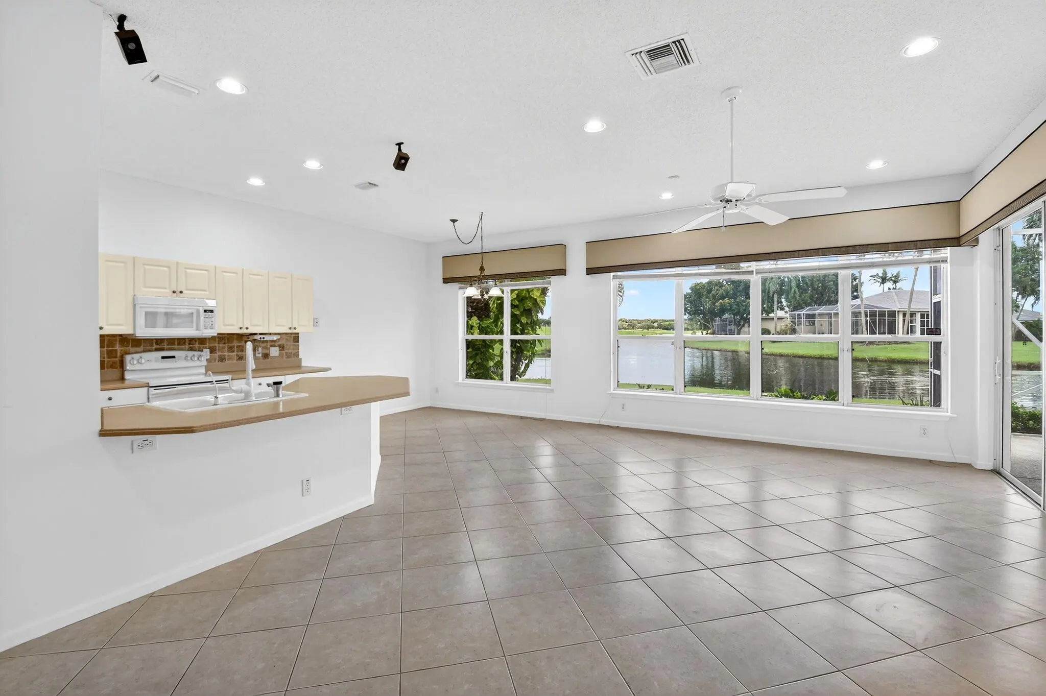 Experience luxurious Aberdeen country club living in this beautifully updated 2-bedroom + den, 2-bath villa with a 2-car garage. Enjoy breathtaking lake views and the view of the 14th tee of the golf course from your screened-in patio, perfect for relaxing or entertaining. Tastefully updated bathrooms. Spacious living areas, an abundance of natural light and pet friendly policy makes it an ideal home. Tile roof was done in 2014, newer a/c and water heater. Located on a serene lake within a premier country club offering ( mandatory membership) world-class amenities--golf, tennis, fitness, dining, and more. This is Florida living at its finest!