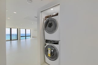 Welcome to this dream home with breathtaking ocean and city views! This luxurious property boasts floor-to-ceiling windows and sliding doors that flood the space with natural sunlight throughout the day, creating a bright and inviting ambiance. The glass railing on the ocean balcony allows for unobstructed views, while the rolling shutters expand from the sides of the balcony, offering protection from wind or 100% privacy, ensuring you can fully enjoy your slice of paradise.This exquisite home also features an underground parking spot with drive-up access to a semi-private elevator, providing convenience and security. The attention to detail and luxury continues throughout the home. The fully integrated Italian kitchen is a chef's delight, featuring top-of-the-line Thermador appliances,including a 36" built-in refrigerator & 18" column freezer with auto open feature, a built-in wine cooler, 30" built-in convection oven, 30" microwave oven, 36" induction cooktop, Miele 24" dishwasher with auto open feature, 29" Kohler undermount sink and Insinkerator disposal. Large pantries and a spacious island provide ample storage and seating options, making it perfect for entertaining guests. The home also features LG Ultra Large Capacity Front Load Washer & Dryer. The Lutron flush mount ceiling lighting in all rooms, controlled by Lutron dimmers adds a touch of elegance and ambiance to every corner of the home. The floating vanities with integrated countertops and sinks, Grohe fixtures, infinity drain, Duravit toilets and flush mount rain shower add a touch of luxury to the bathrooms. Custom His and Her master closets and built in 2nd bedroom provide ample storage space. Some photos have been virtually staged and are not actual.