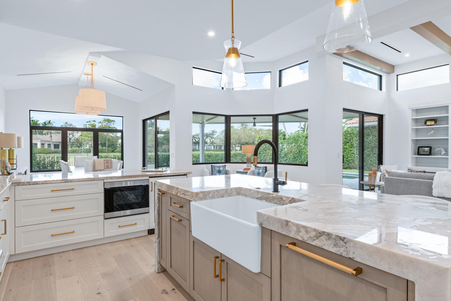 Located behind the manned security gate of the exclusive Palm Beach Polo Country Club. This stunningly renovated 3-bedroom, 3-bathroom home offers a blend of modern elegance and functional design, all while overlooking the picturesque Cypress Golf Course and featuring a serene lake view. With its open floor plan, high ceilings, and wood floors throughout, this home exudes both style and comfort. The kitchen is a chef's dream, showcasing custom cabinetry, marble countertops, and a farmhouse sink. It comes fully equipped with all new appliances, including a gas range and a Fhiaba refrigerator. The attention to detail extends to the sleek plumbing fixtures and new HVAC unit with stylish lineal AC vents installed in the ceiling.